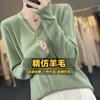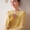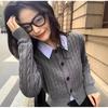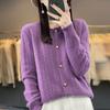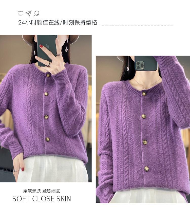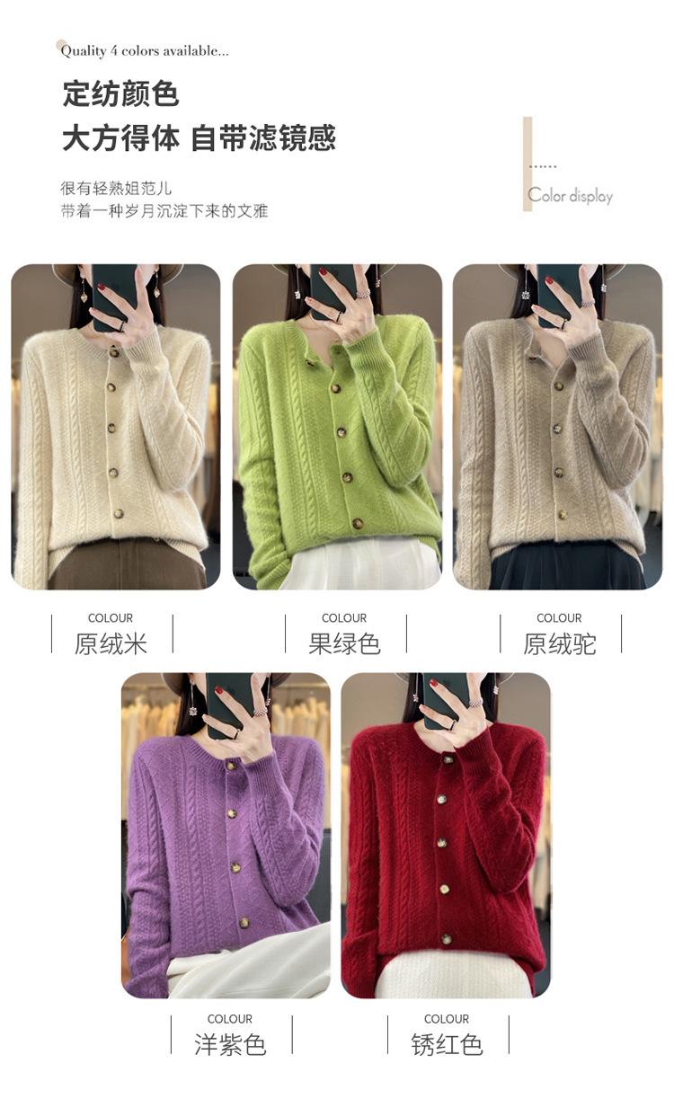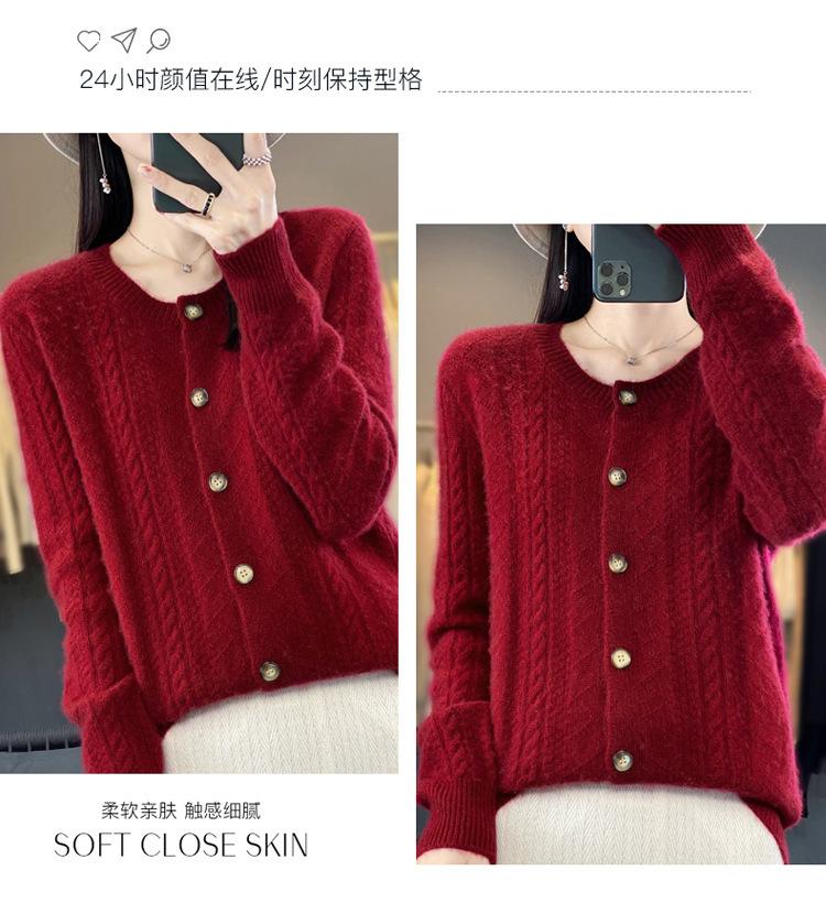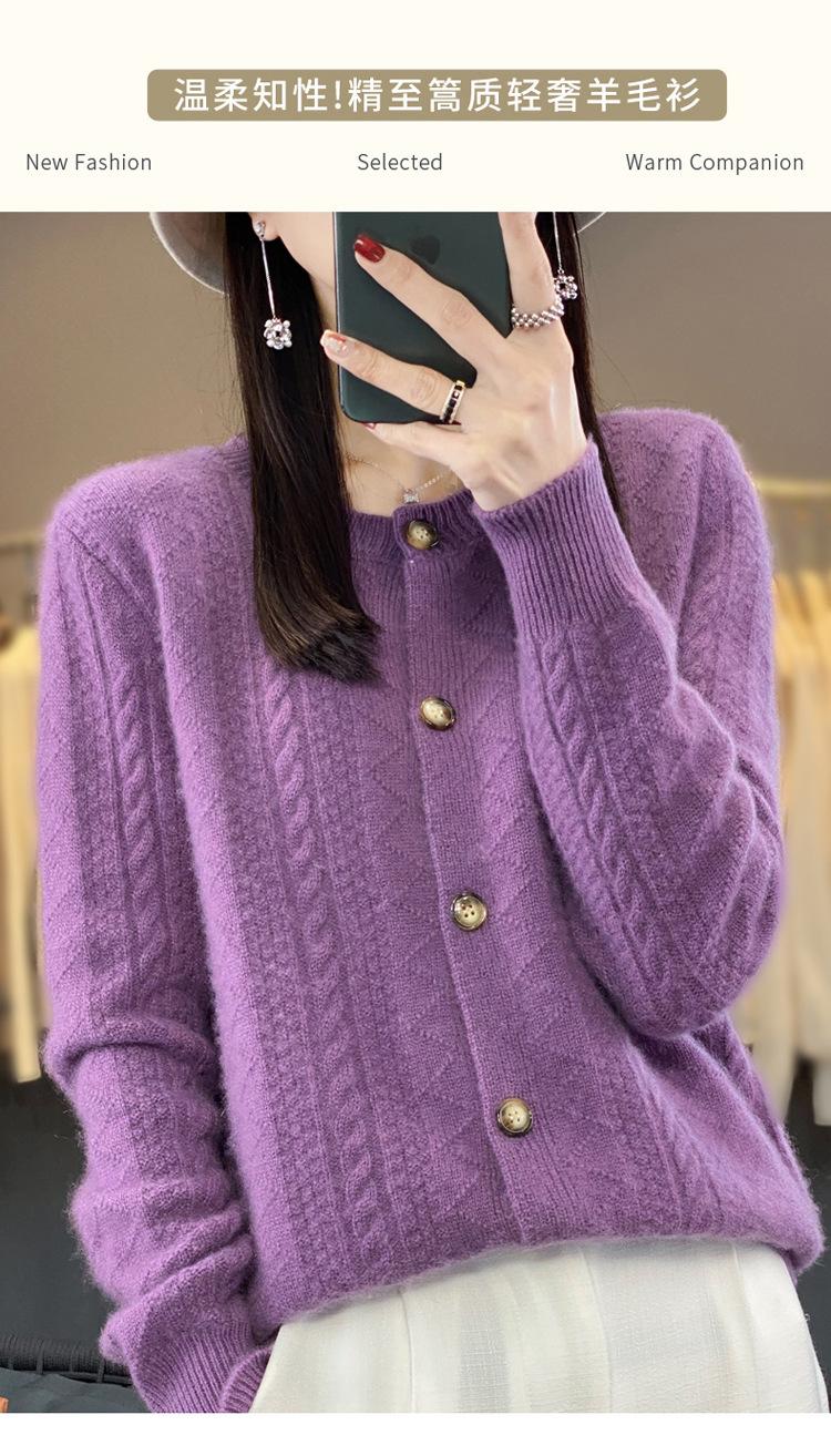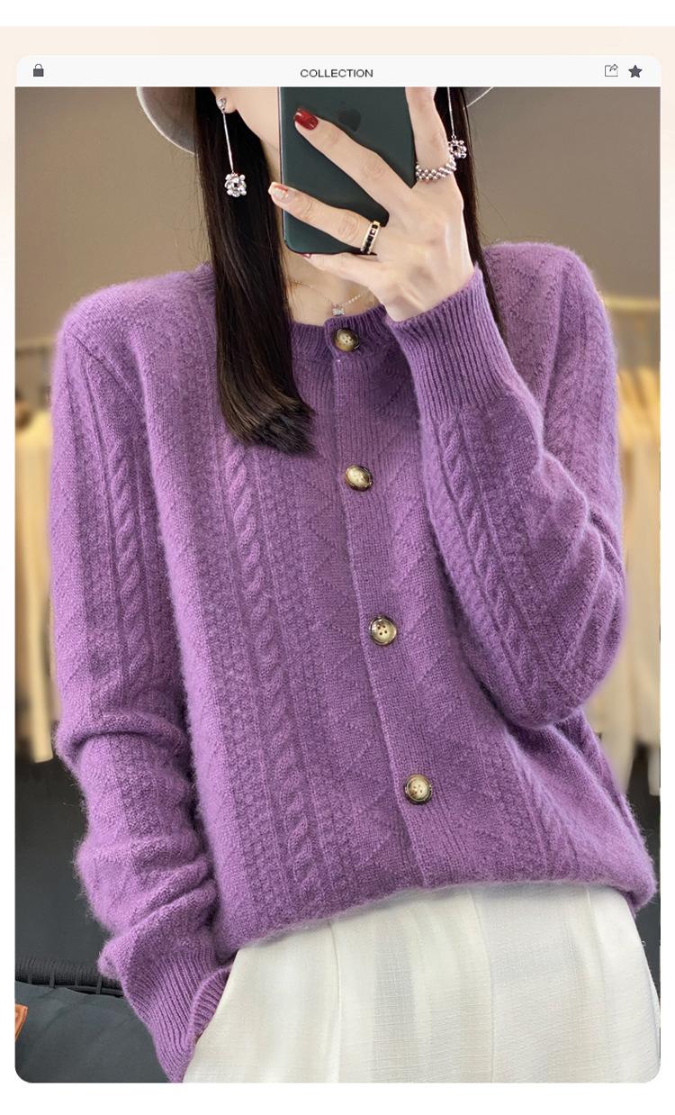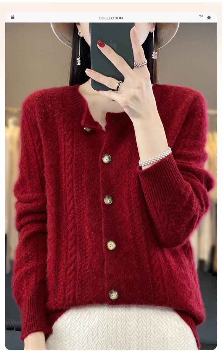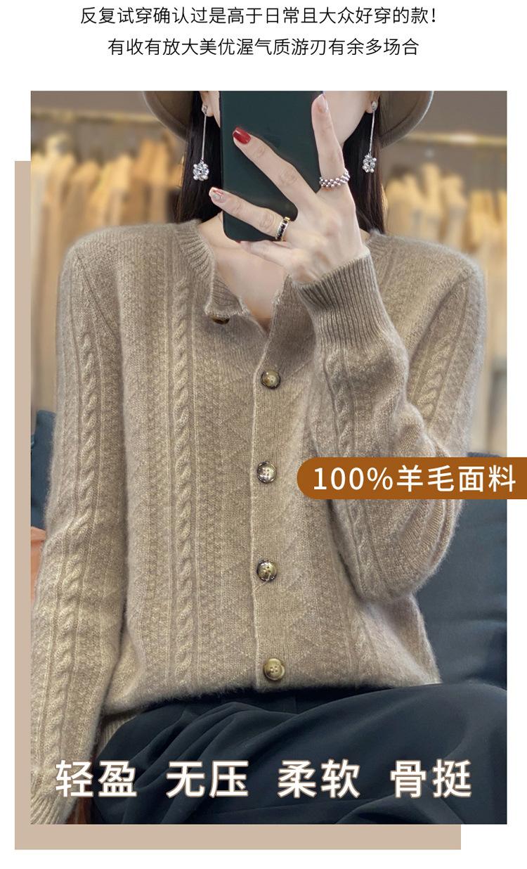Suéter Cárdigan de Cachemira para Mujer Otoño Invierno Flor Trenzada Cuello Redondo Top Suéter Abrigo Principios de Otoño