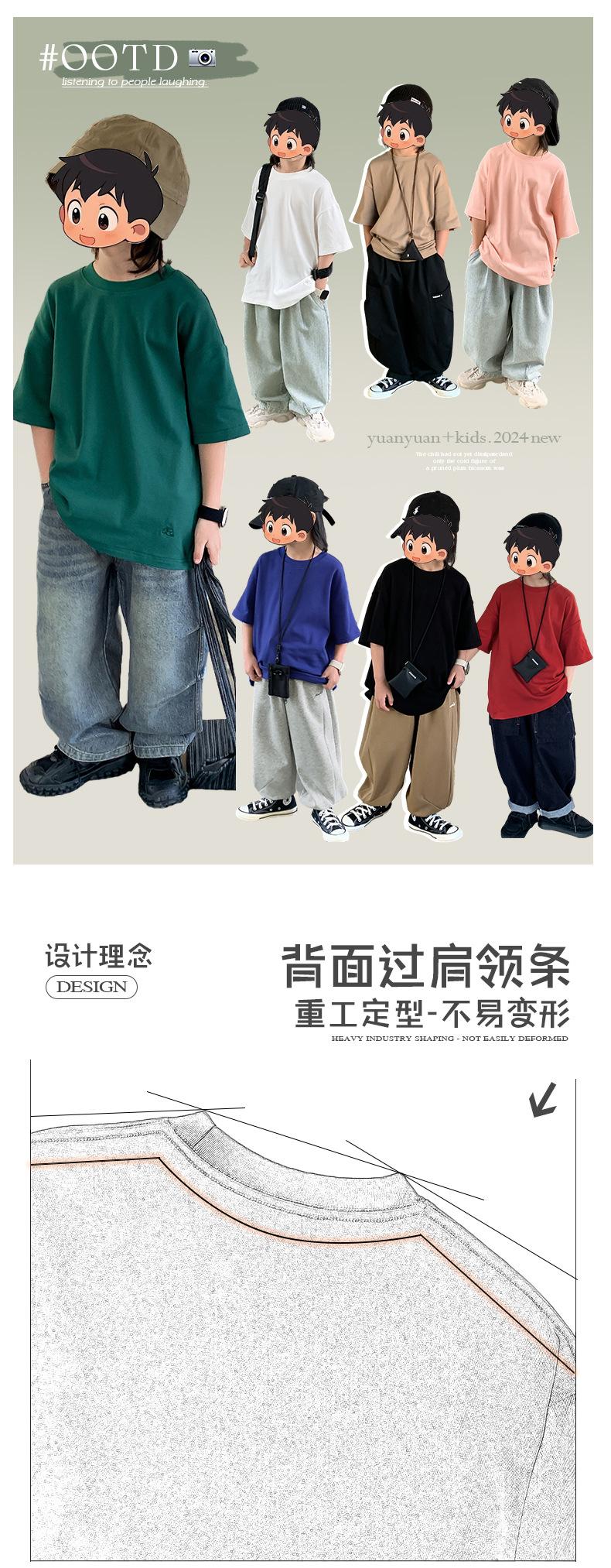 Vestido de verano 2024, camiseta de manga corta para niños grandes, de moda, de media manga, estilo coreano, para bebés