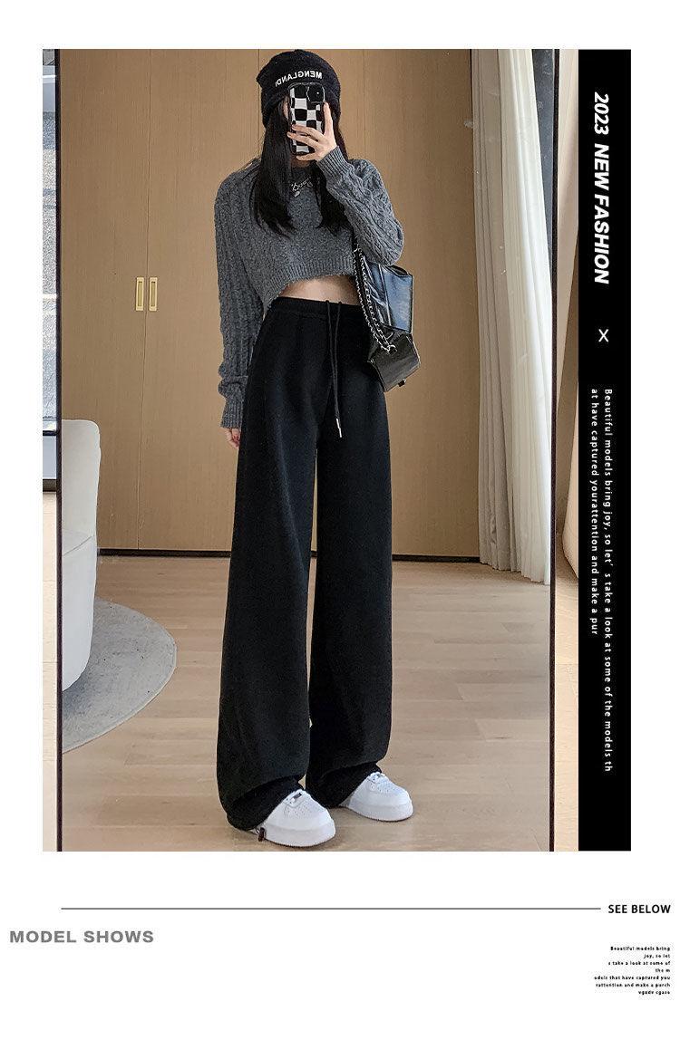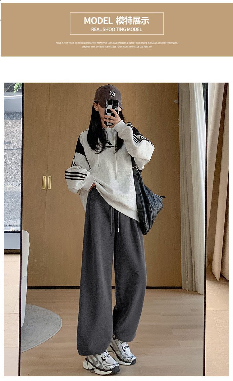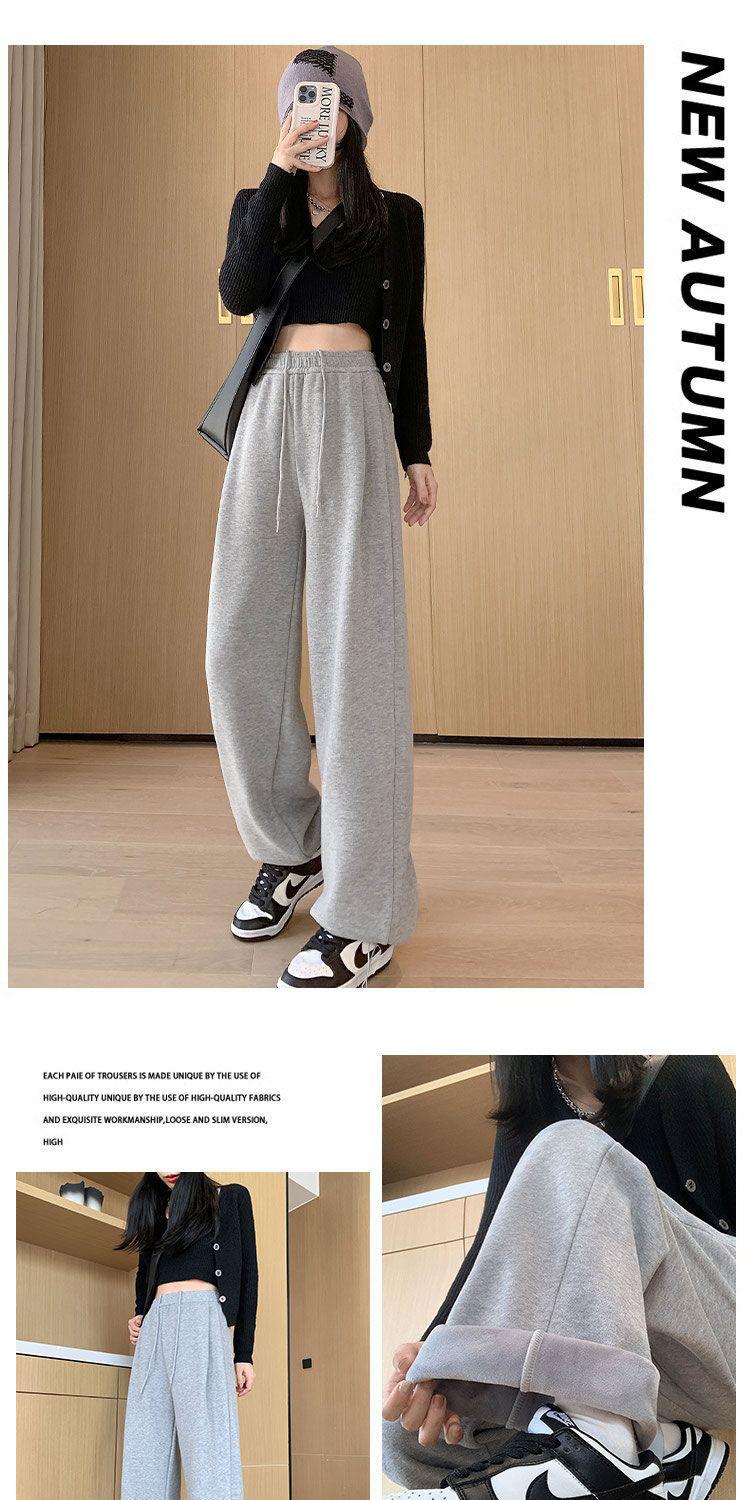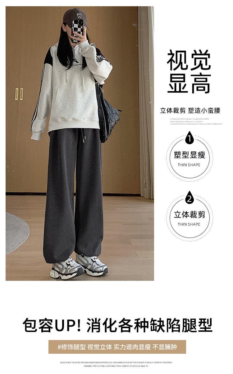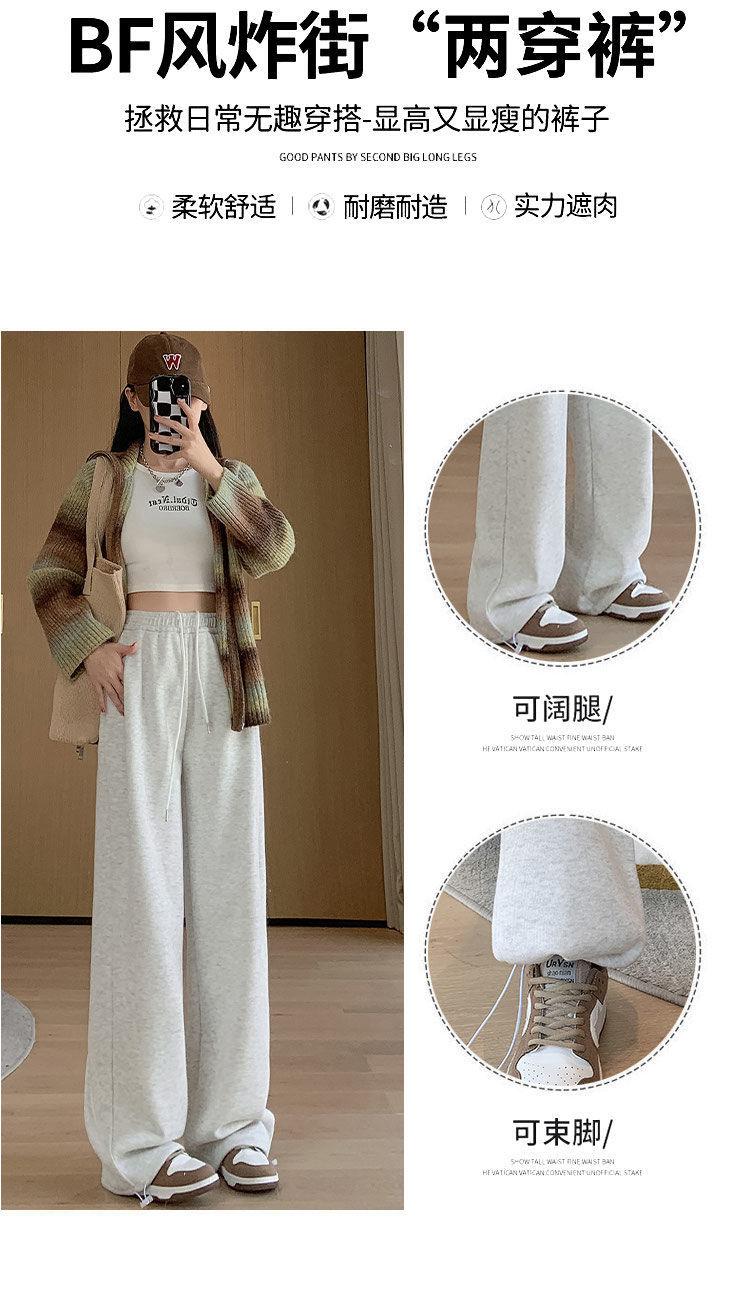 Pantalones deportivos blancos y grises para mujer, primavera y otoño verano 2024, nuevos pantalones deportivos de cintura alta, rectos, holgados, de pierna ancha, estilo americano, informales, adelgazantes.