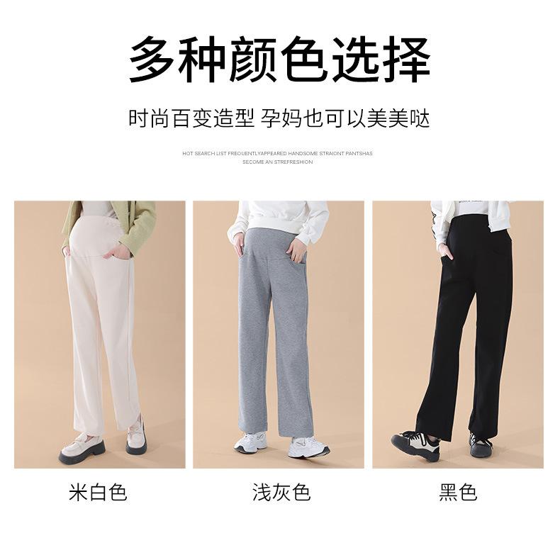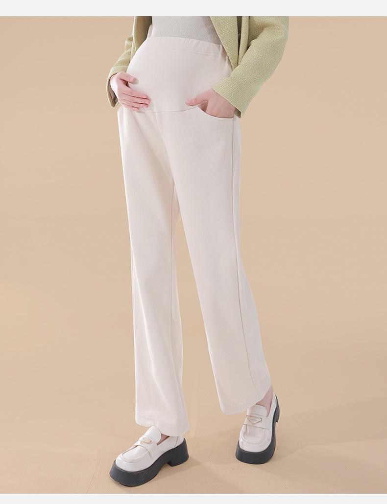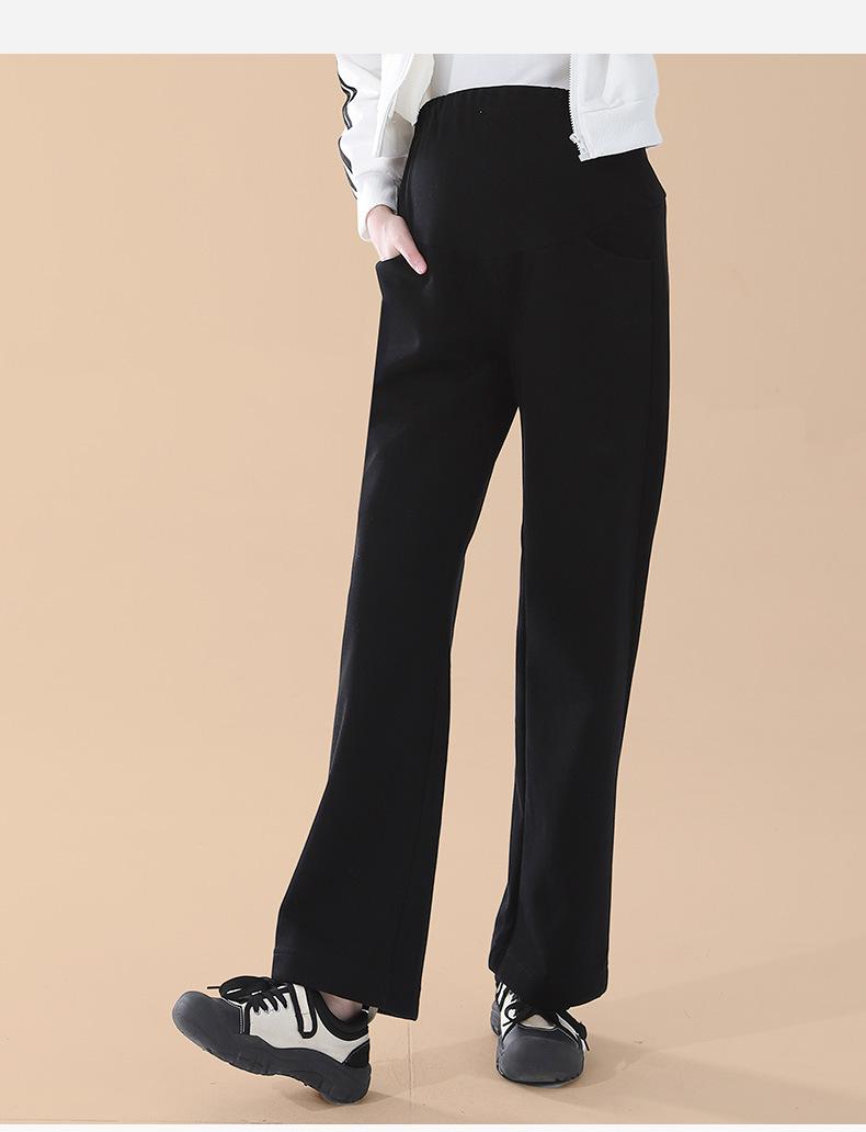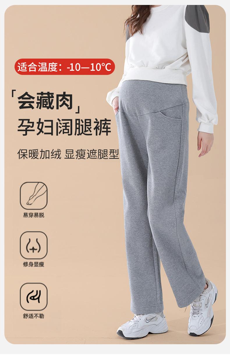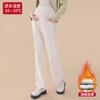 Pantalones de Maternidad de Lana de Cordero para Otoño e Invierno, Pantalones Deportivos Rectos de Pierna Ancha, Cintura Alta, Soporte Abdominal Ajustable, Forrados de Felpa, Pantalones de Pierna Ancha Adelgazantes
