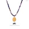 Colgante de ágata de piedra natural de lujo, estilo retro francés, con cuentas irregulares, hecho a mano, de acero de titanio chapado en oro.