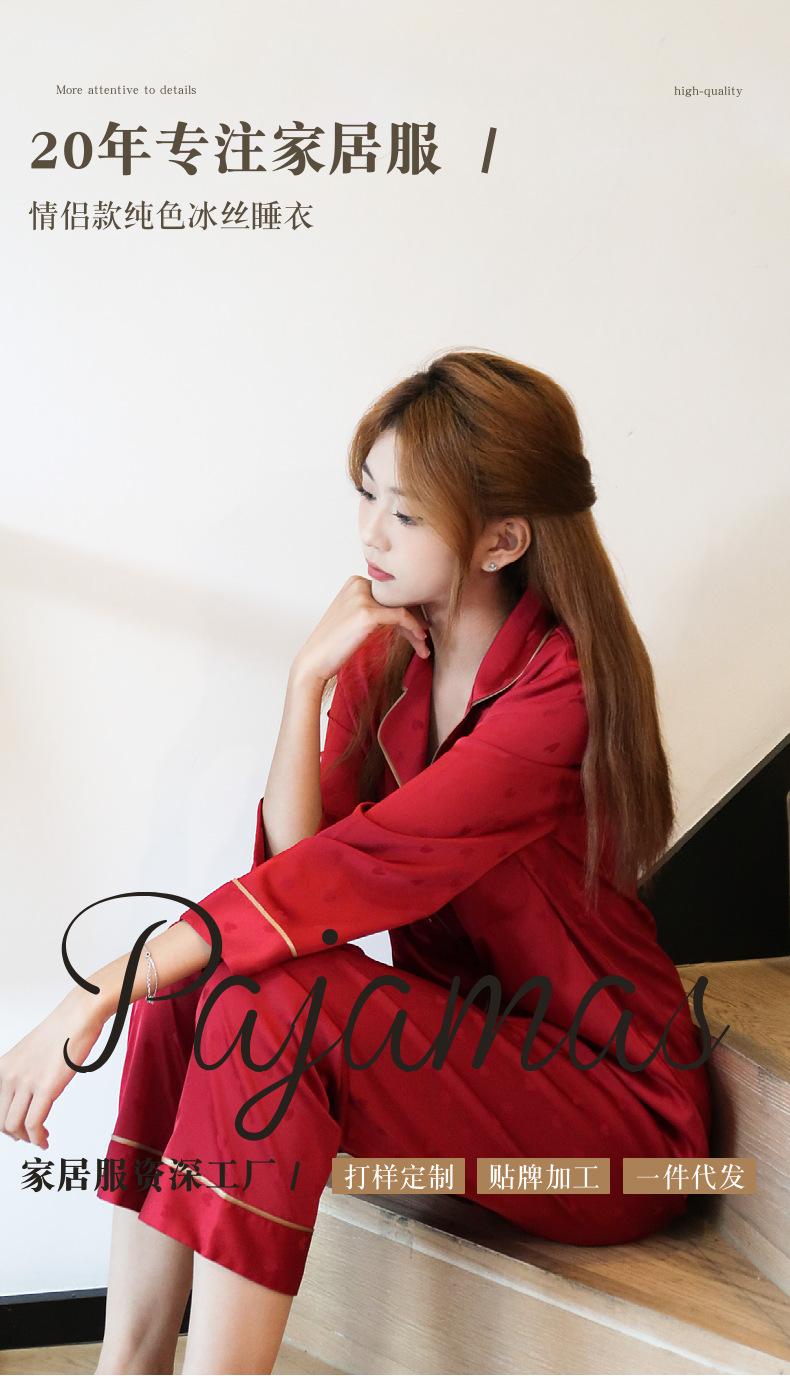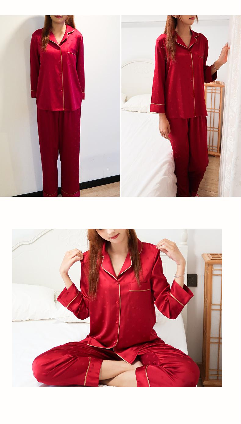 Pijama nuevo de manga larga para mujer boda simple casual rojo ropa para el hogar solapa cárdigan traje blanco ropa para exterior