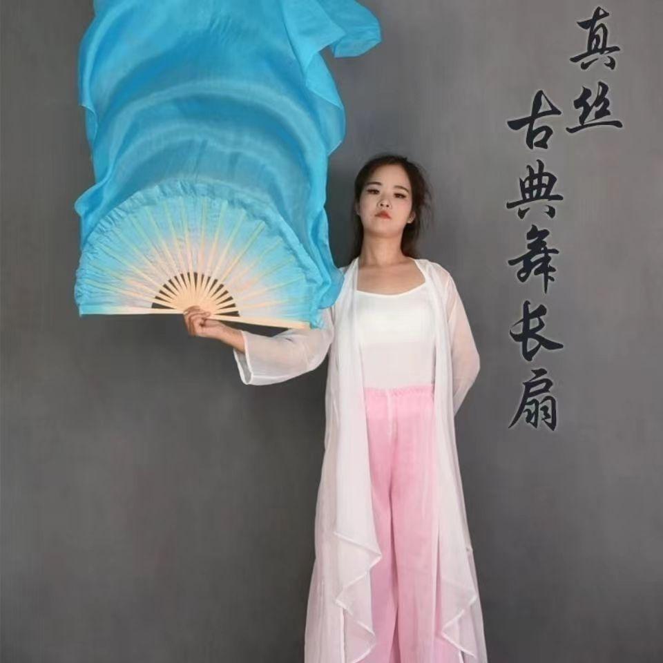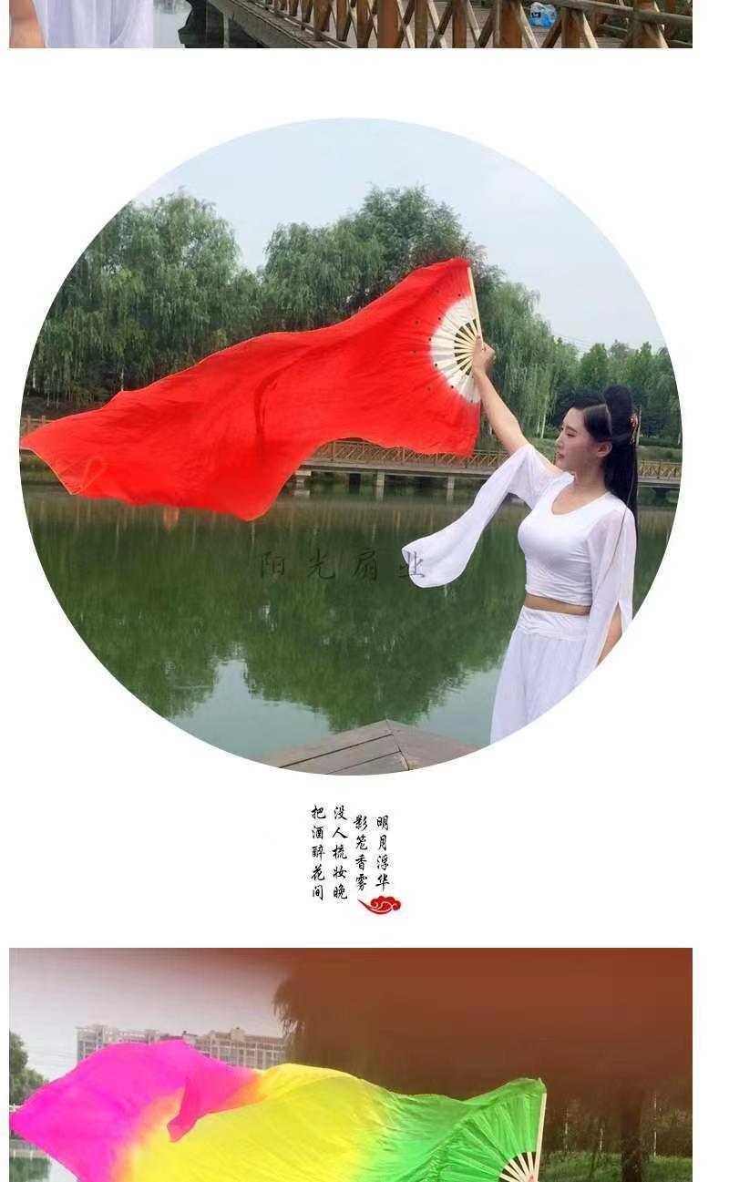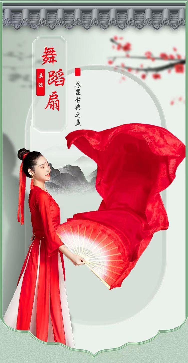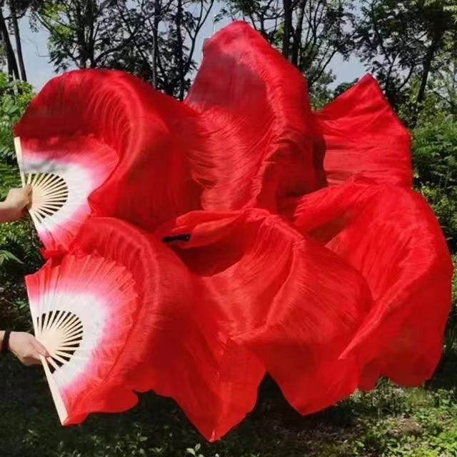 Abanico de Danza Extendido Rojo Grande Boca Blanca Danza Yangko Torcida del Noreste Abanico de Danza de Baile en Cuadrilla Abanico de Seda Larga Monocromático