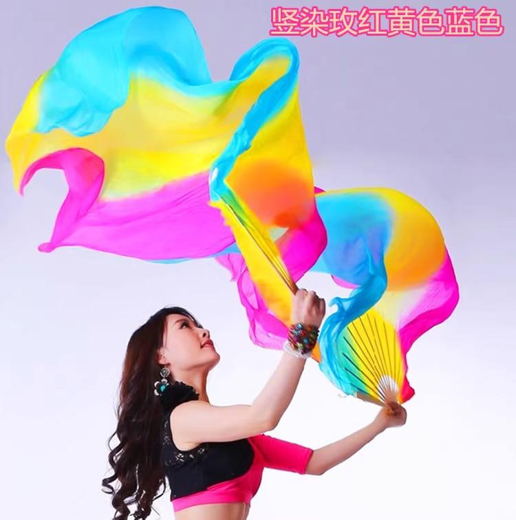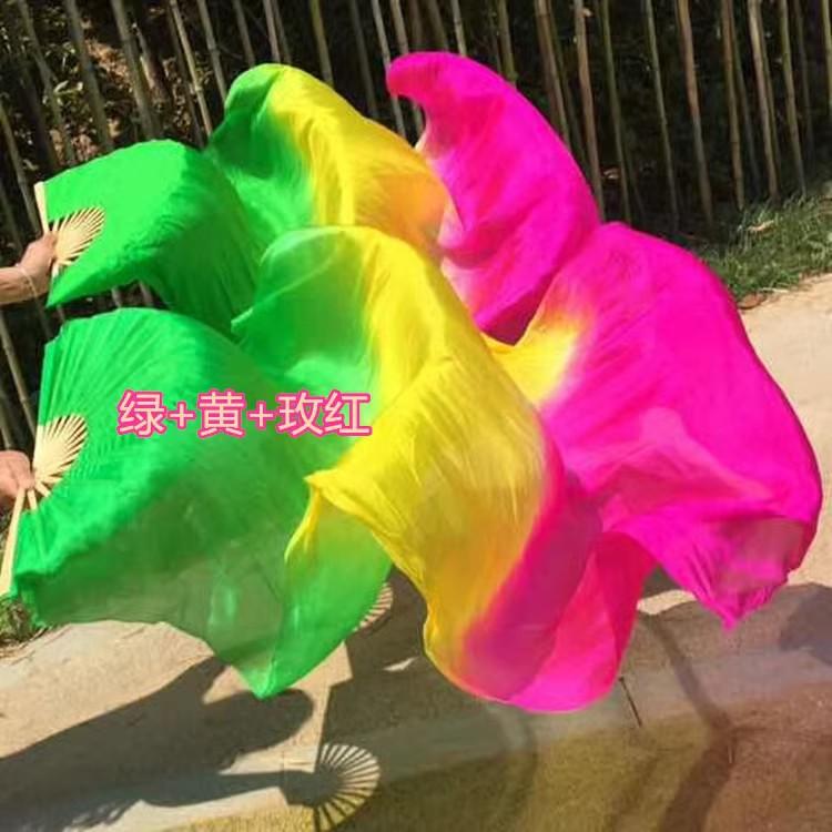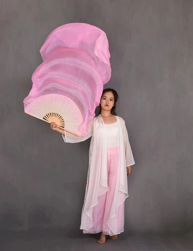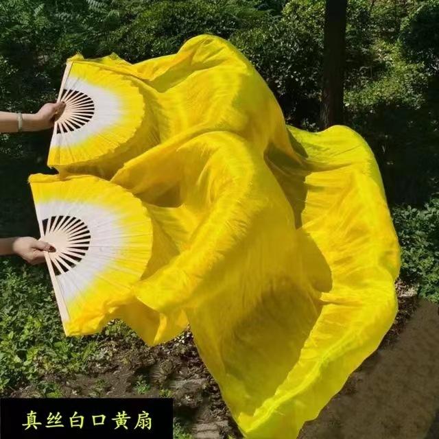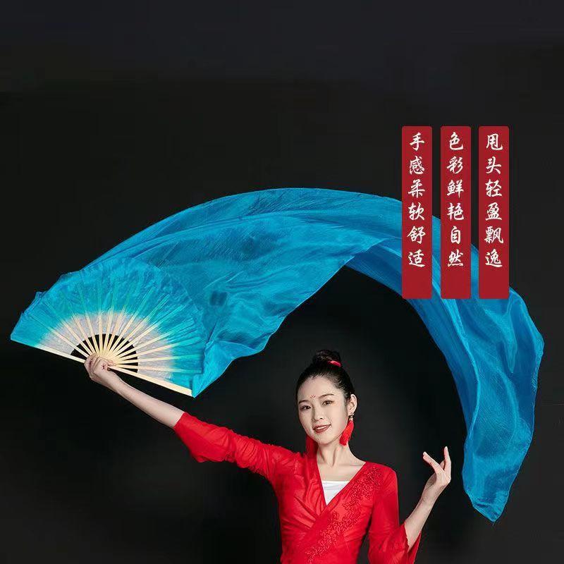 Abanico de Danza Extendido Rojo Grande Boca Blanca Danza Yangko Torcida del Noreste Abanico de Danza de Baile en Cuadrilla Abanico de Seda Larga Monocromático