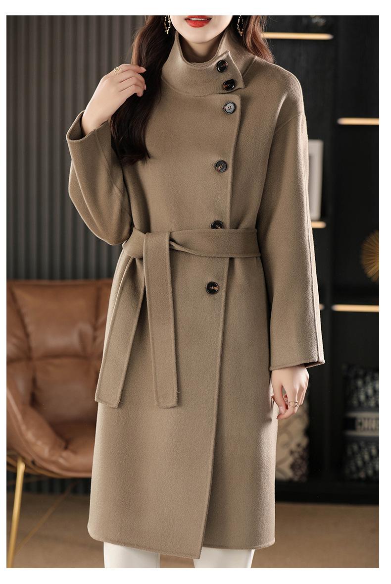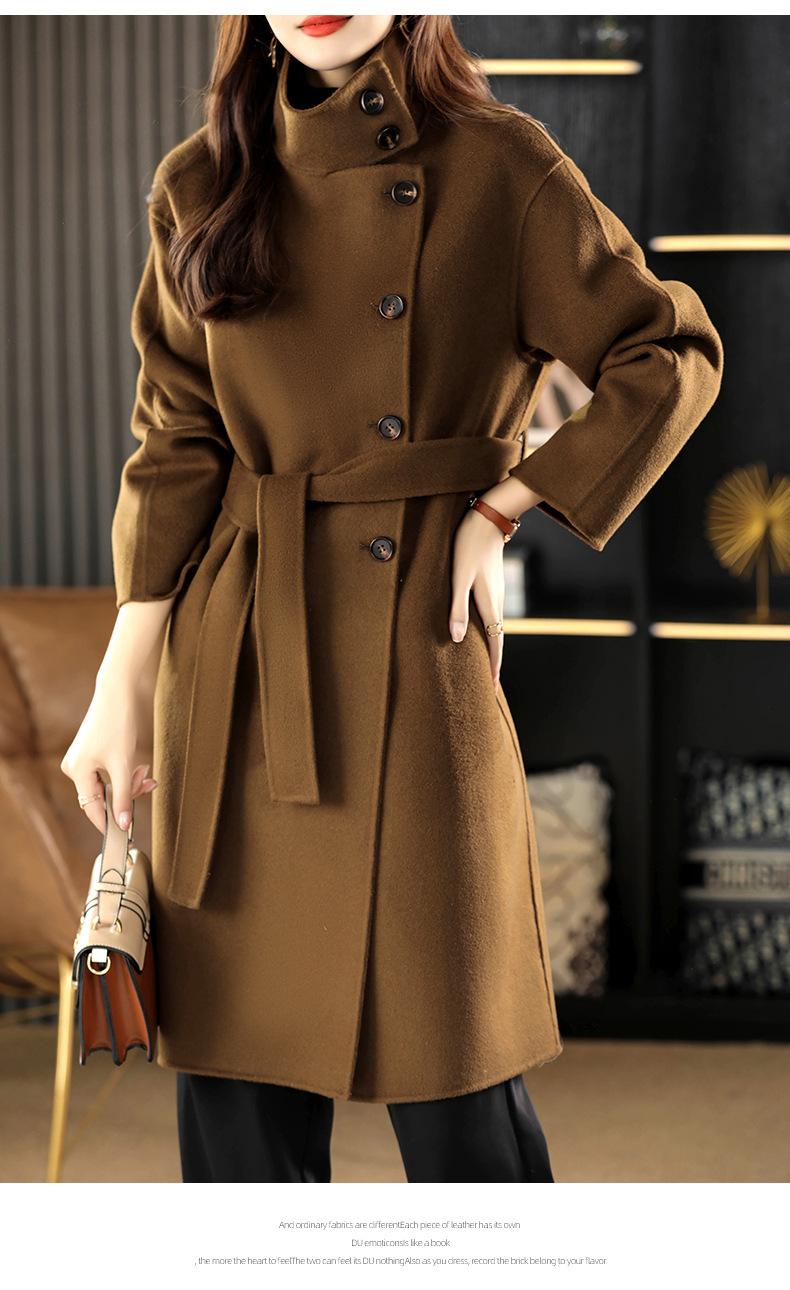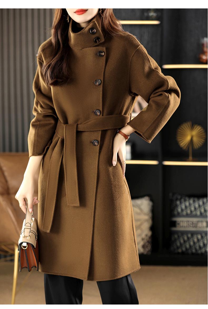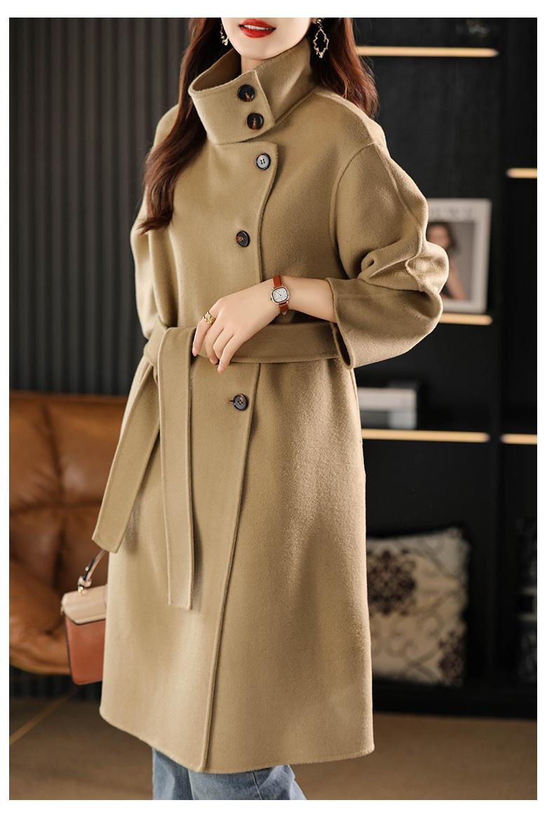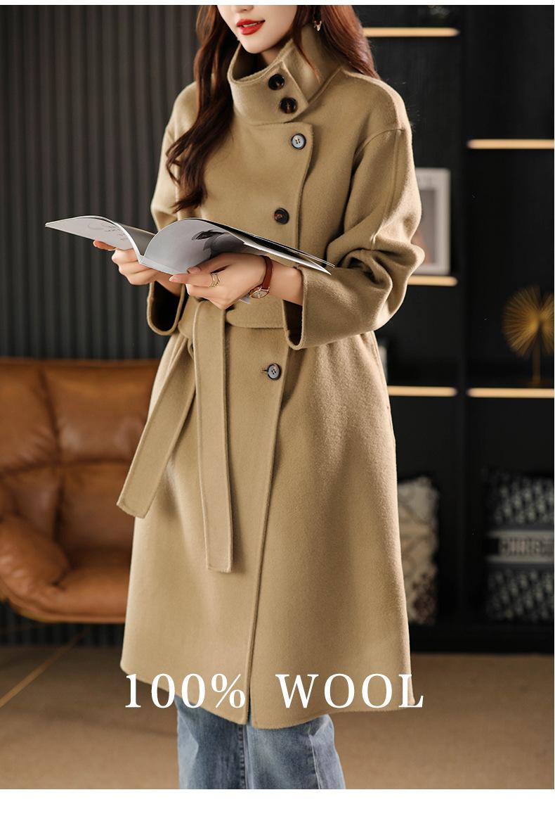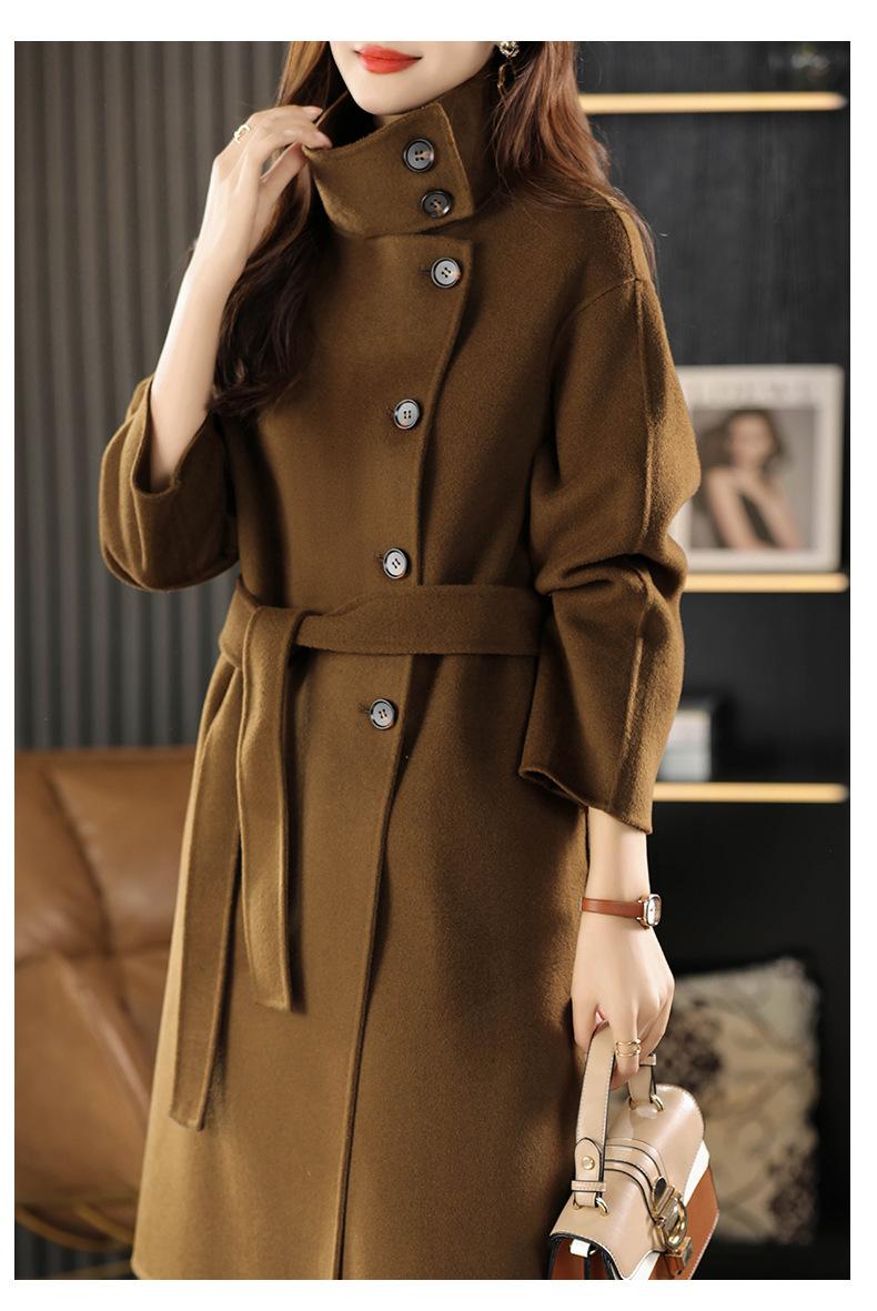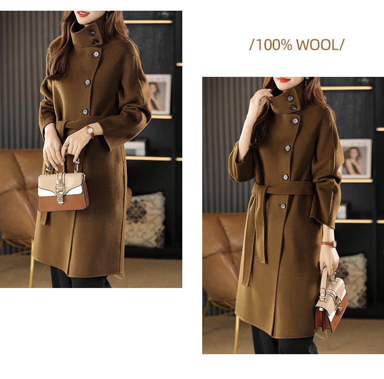 Abrigo de Lana de Doble Vista para Mujer con Cuello Alto Estilo Coreano con Cordones Holgado Nueva Moda Otoño e Invierno 2025 Abrigo de Lana de Alta Gama