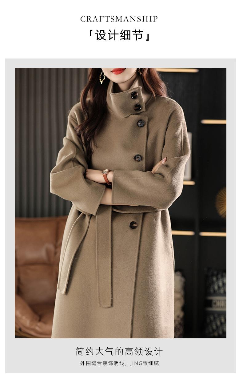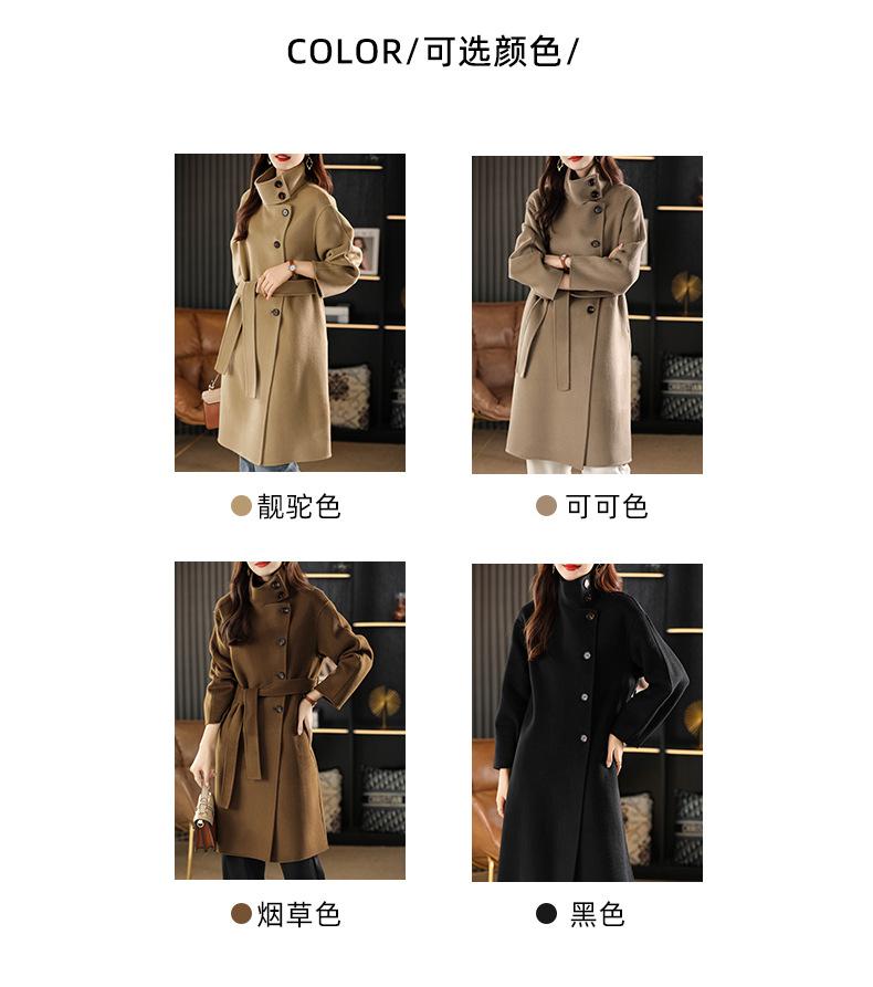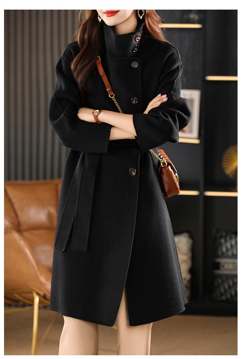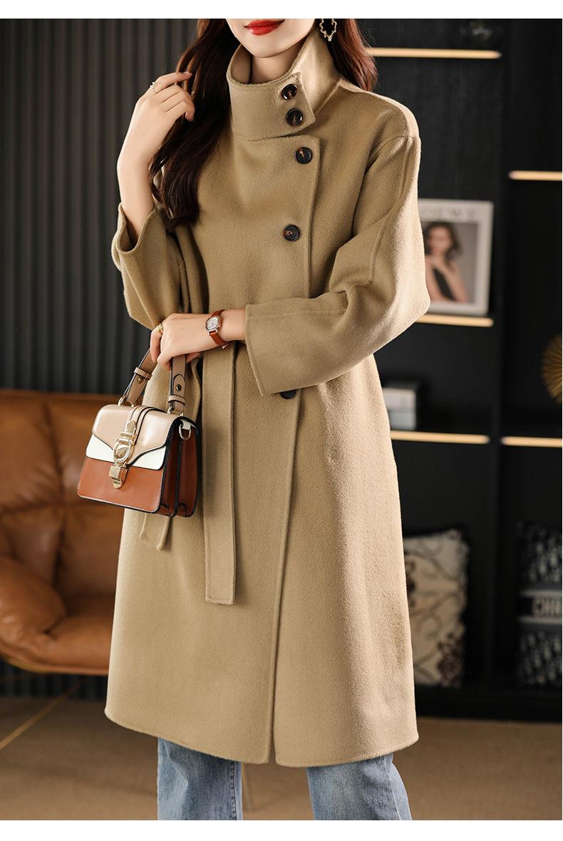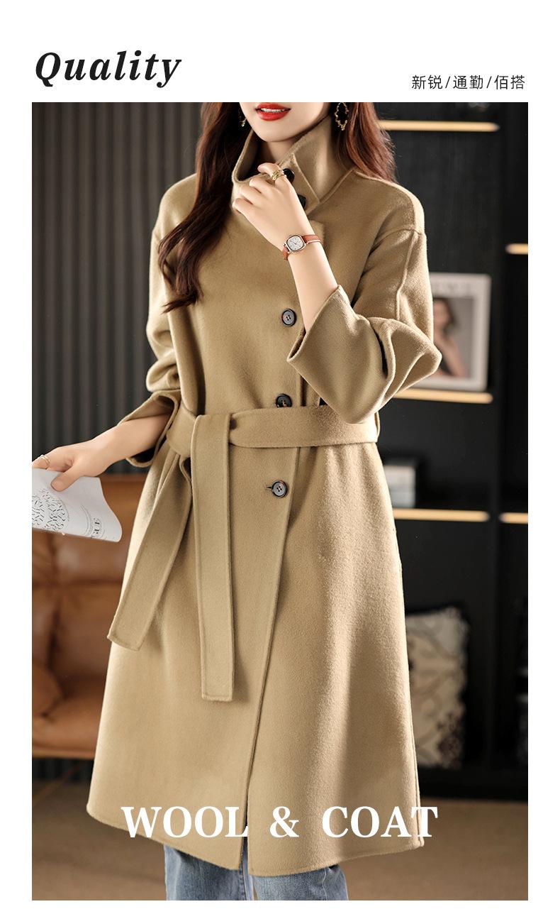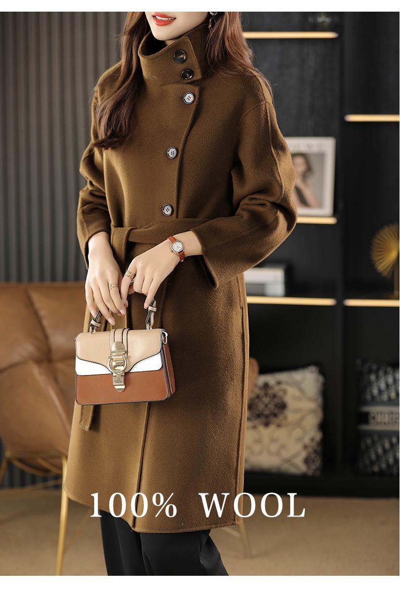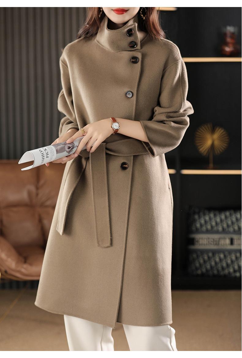 Abrigo de Lana de Doble Vista para Mujer con Cuello Alto Estilo Coreano con Cordones Holgado Nueva Moda Otoño e Invierno 2025 Abrigo de Lana de Alta Gama