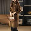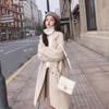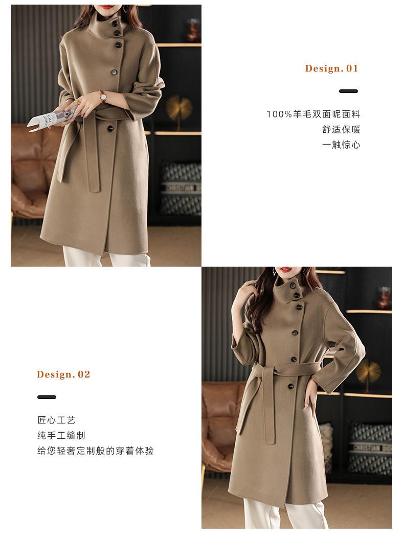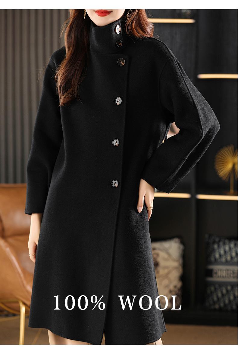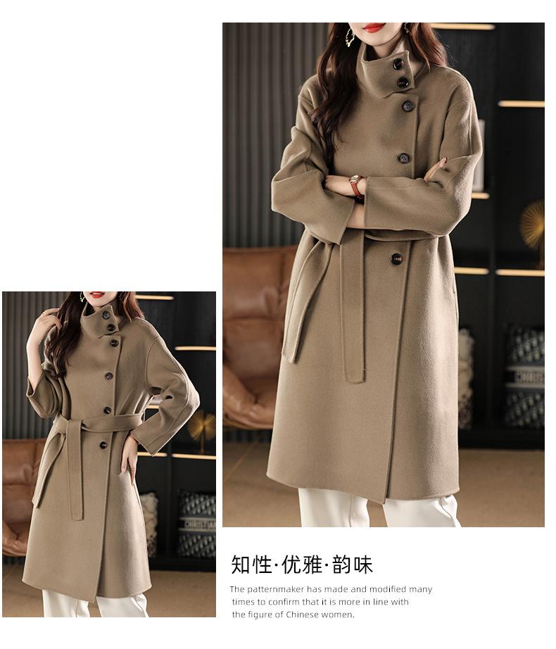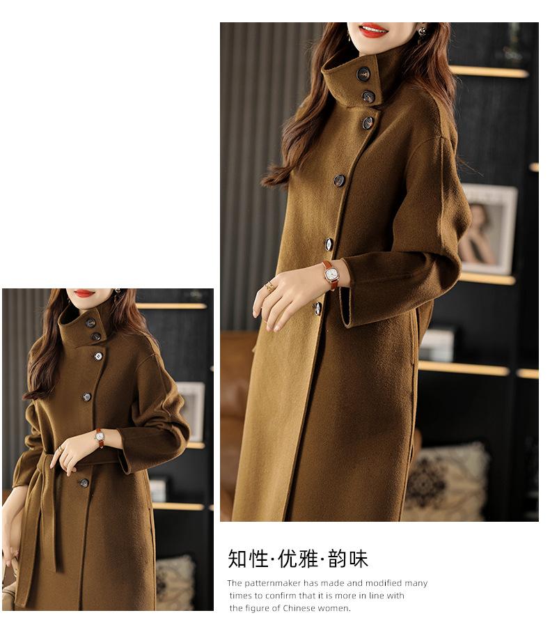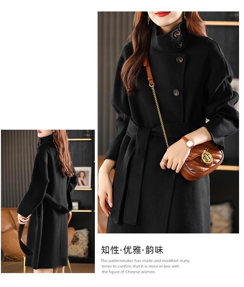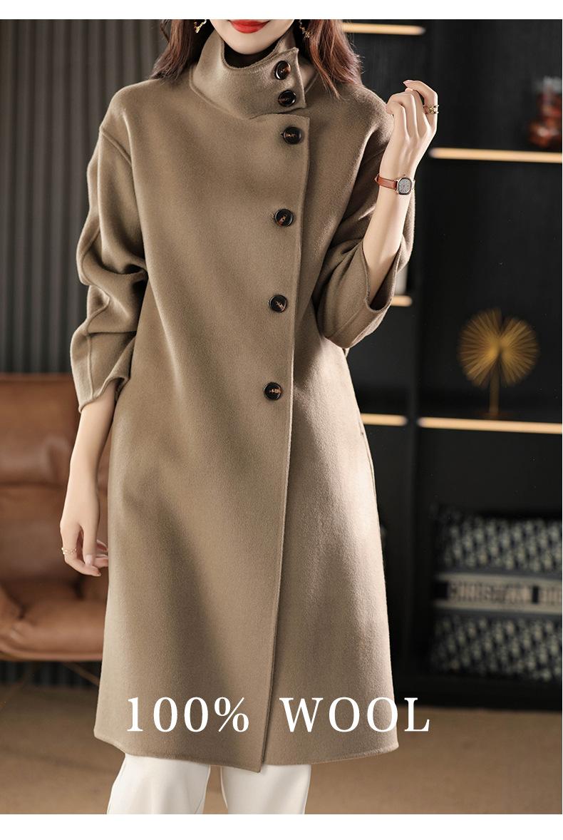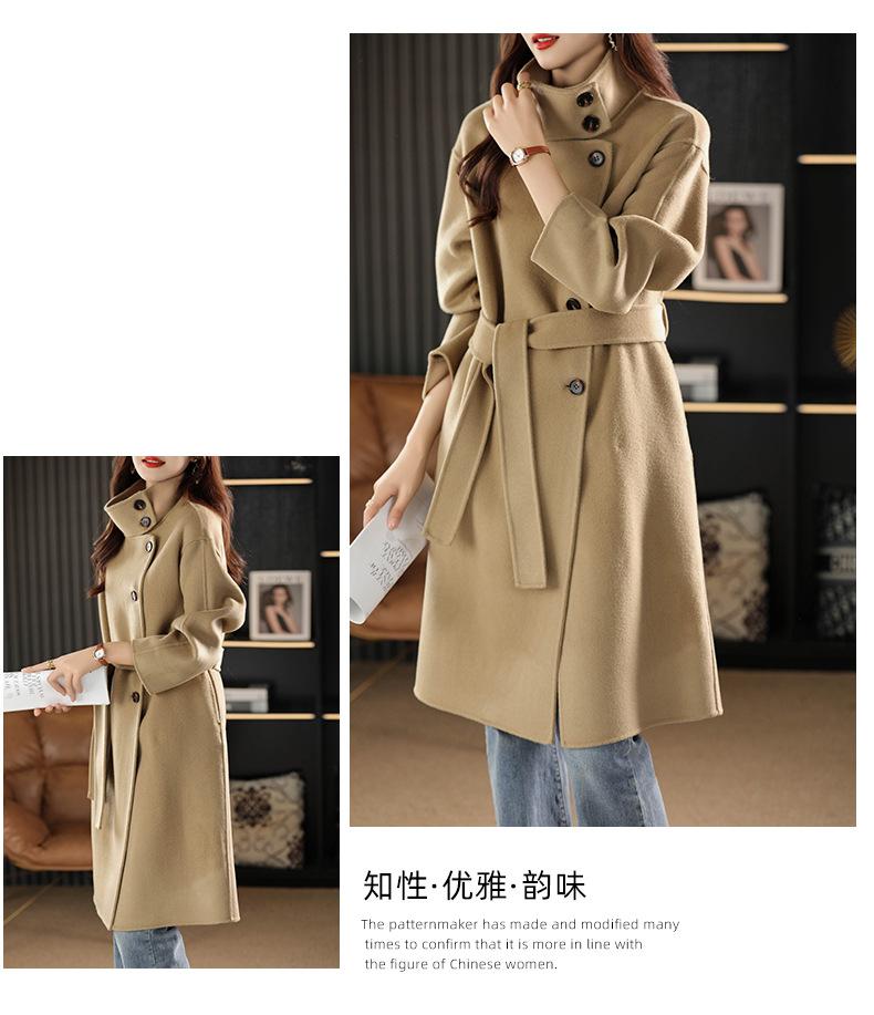 Abrigo de Lana de Doble Vista para Mujer con Cuello Alto Estilo Coreano con Cordones Holgado Nueva Moda Otoño e Invierno 2025 Abrigo de Lana de Alta Gama