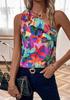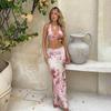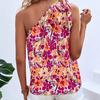 En stock, top de un solo hombro con tirantes finos y estampado de flores sexy para mujer, primavera y verano 2024, transfronterizo europeo y americano, Amazon