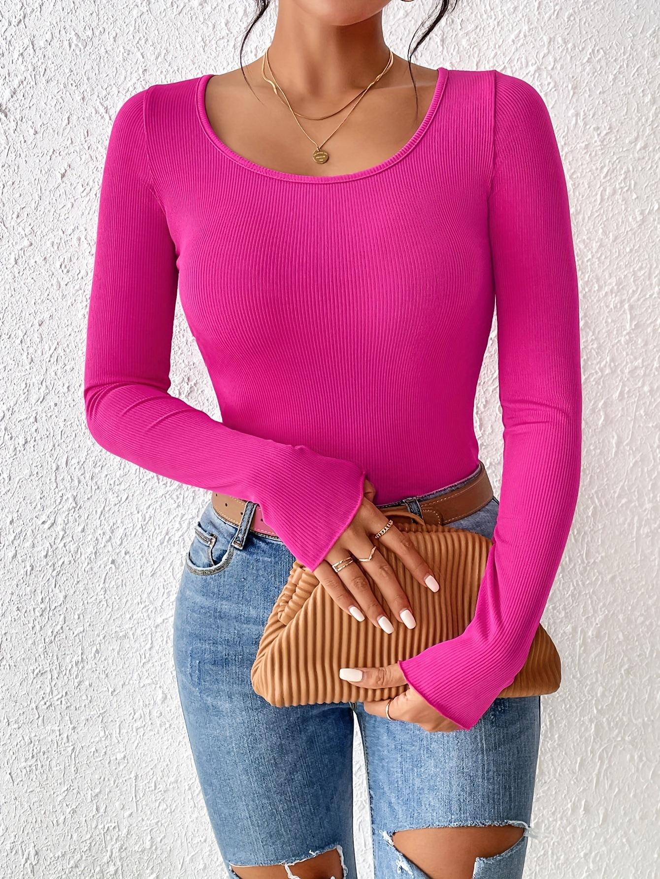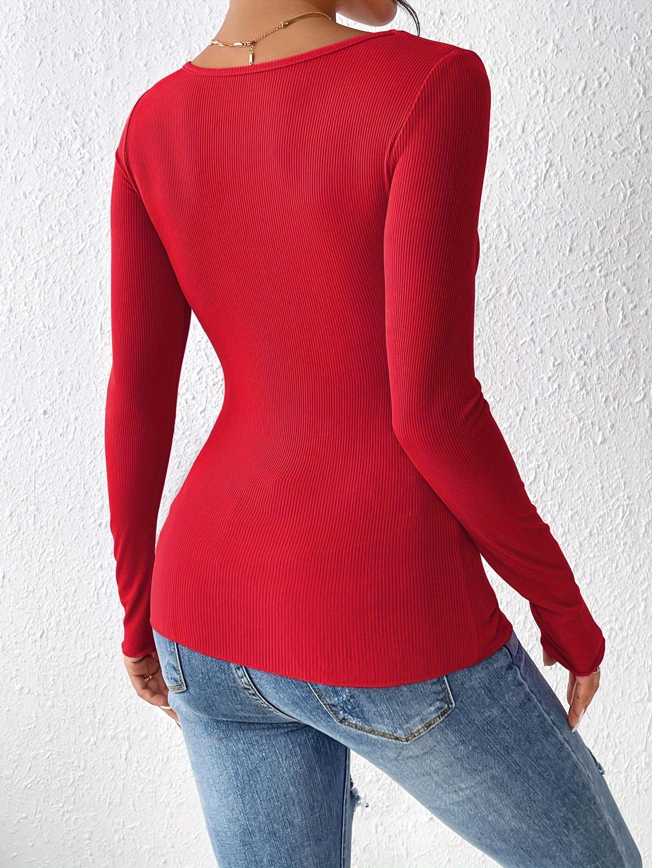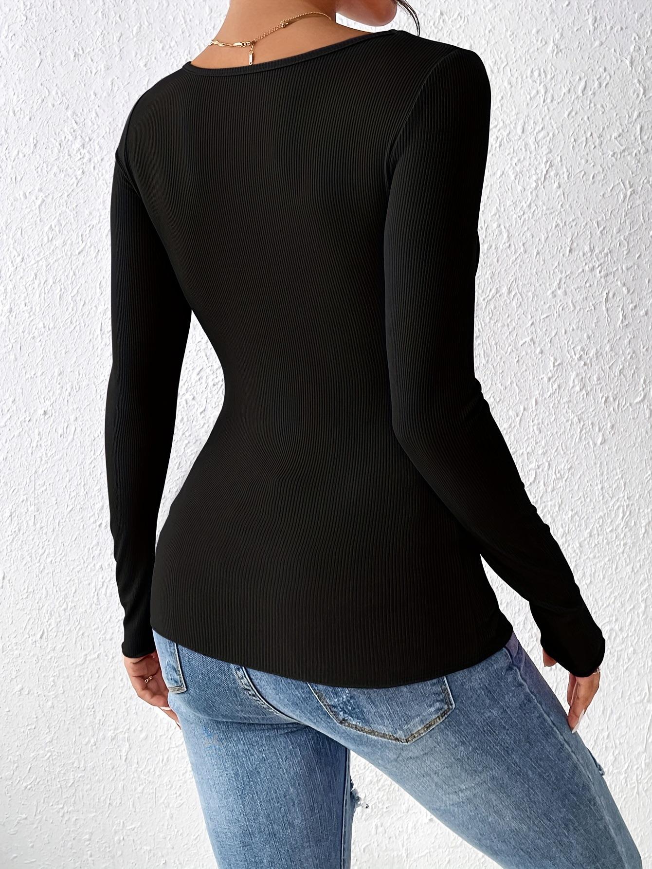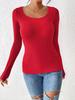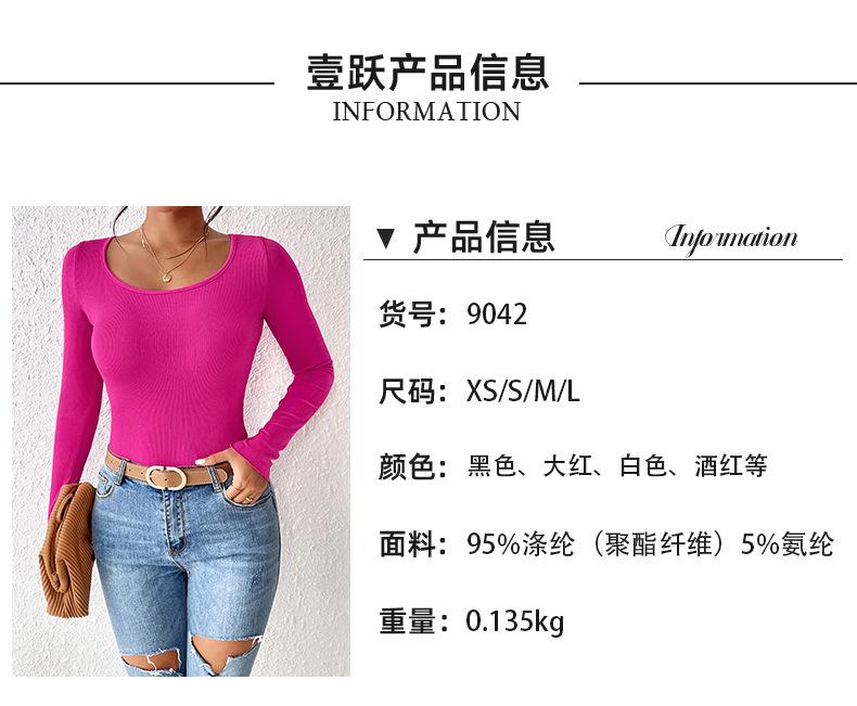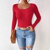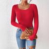 2025 Europeo y Americano Sexy Punto de Manga Larga Camiseta Ajustada para Fondo Wish Transfronterizo Otoño e Invierno Top para Mujer con Aberturas