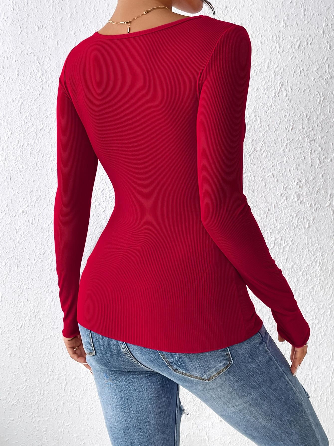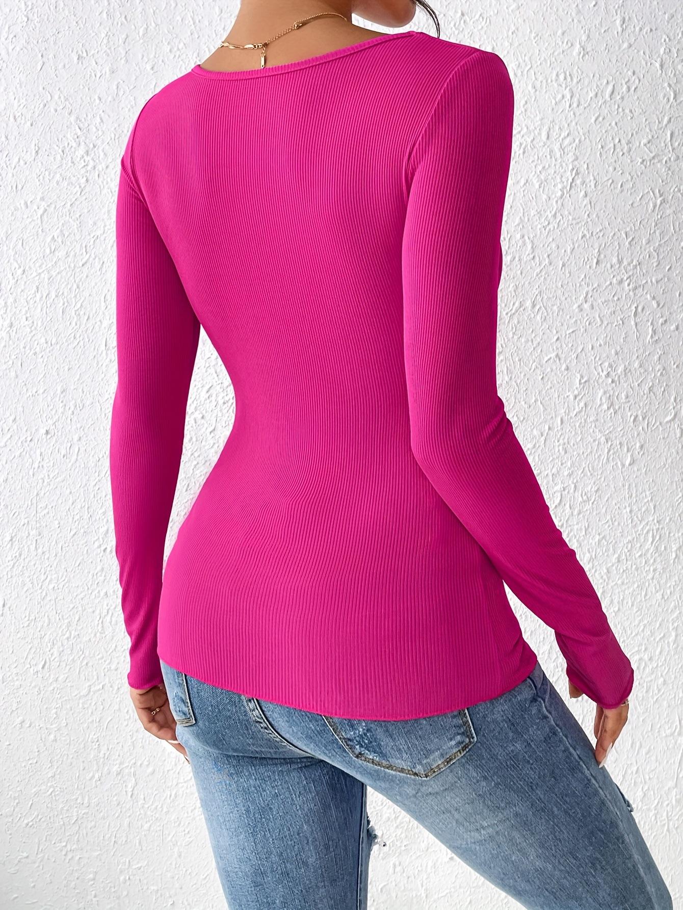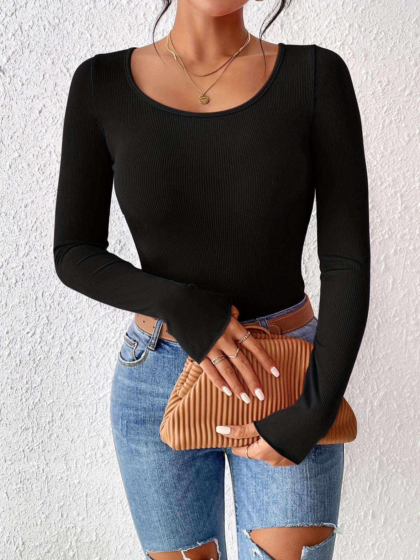 2025 Europeo y Americano Sexy Punto de Manga Larga Camiseta Ajustada para Fondo Wish Transfronterizo Otoño e Invierno Top para Mujer con Aberturas