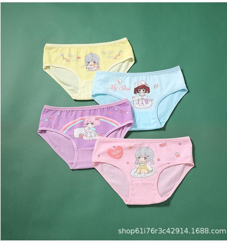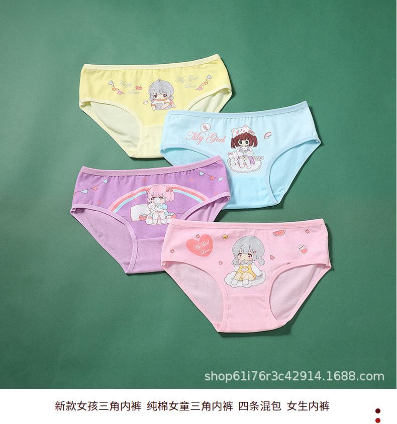 Ropa interior nueva para niños ropa interior de algodón para mujer ropa interior de algodón para niñas algodón de cuatro esquinas caricatura triángulo ropa interior de niña pequeña Triángulo Mujer