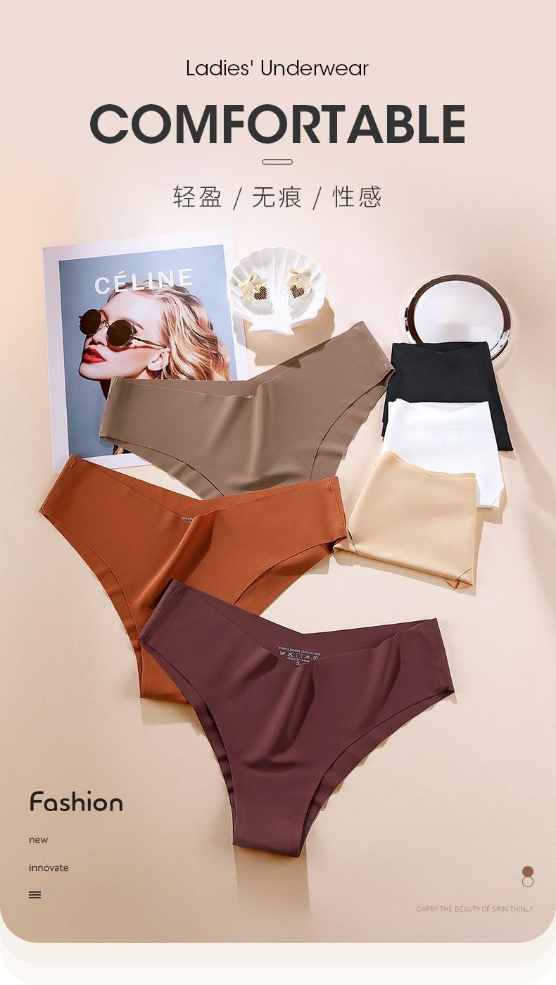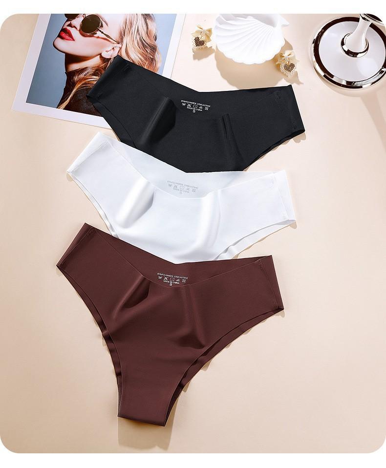 Ropa Interior Europea y Americana Sin Costuras de Seda de Hielo para Mujer Cintura en V de Una Pieza Entrepierna de Algodón Transpirable Calzones para Mujer al Mayoreo