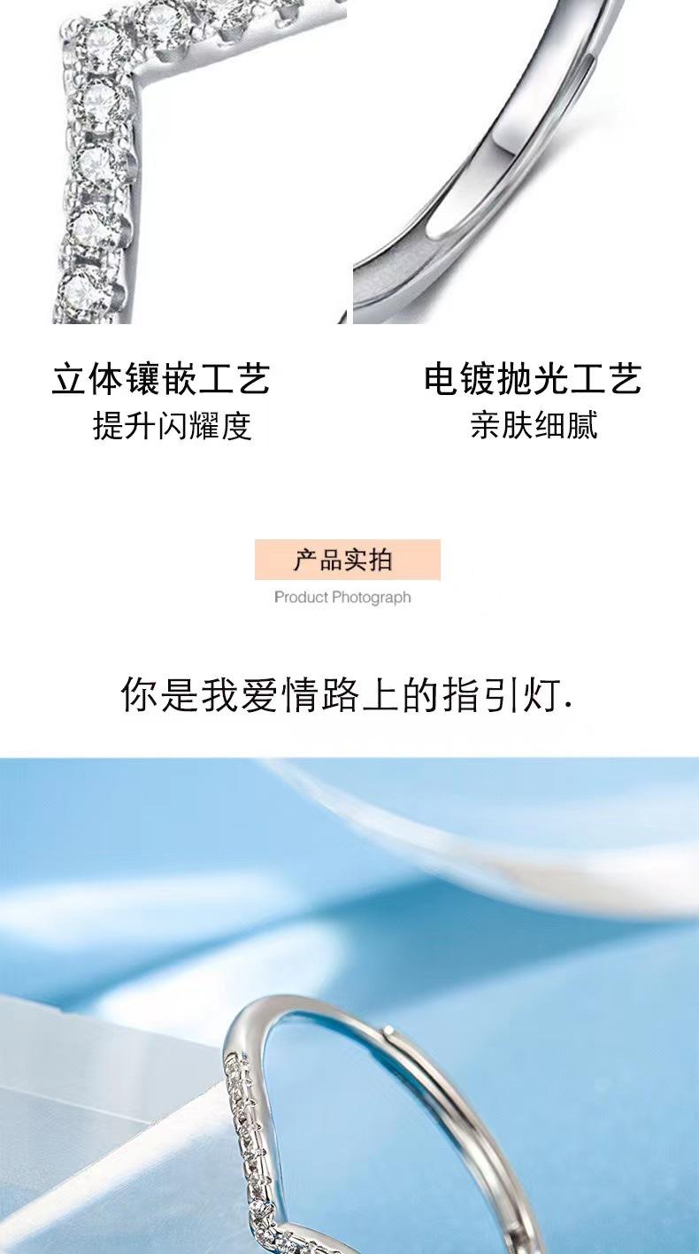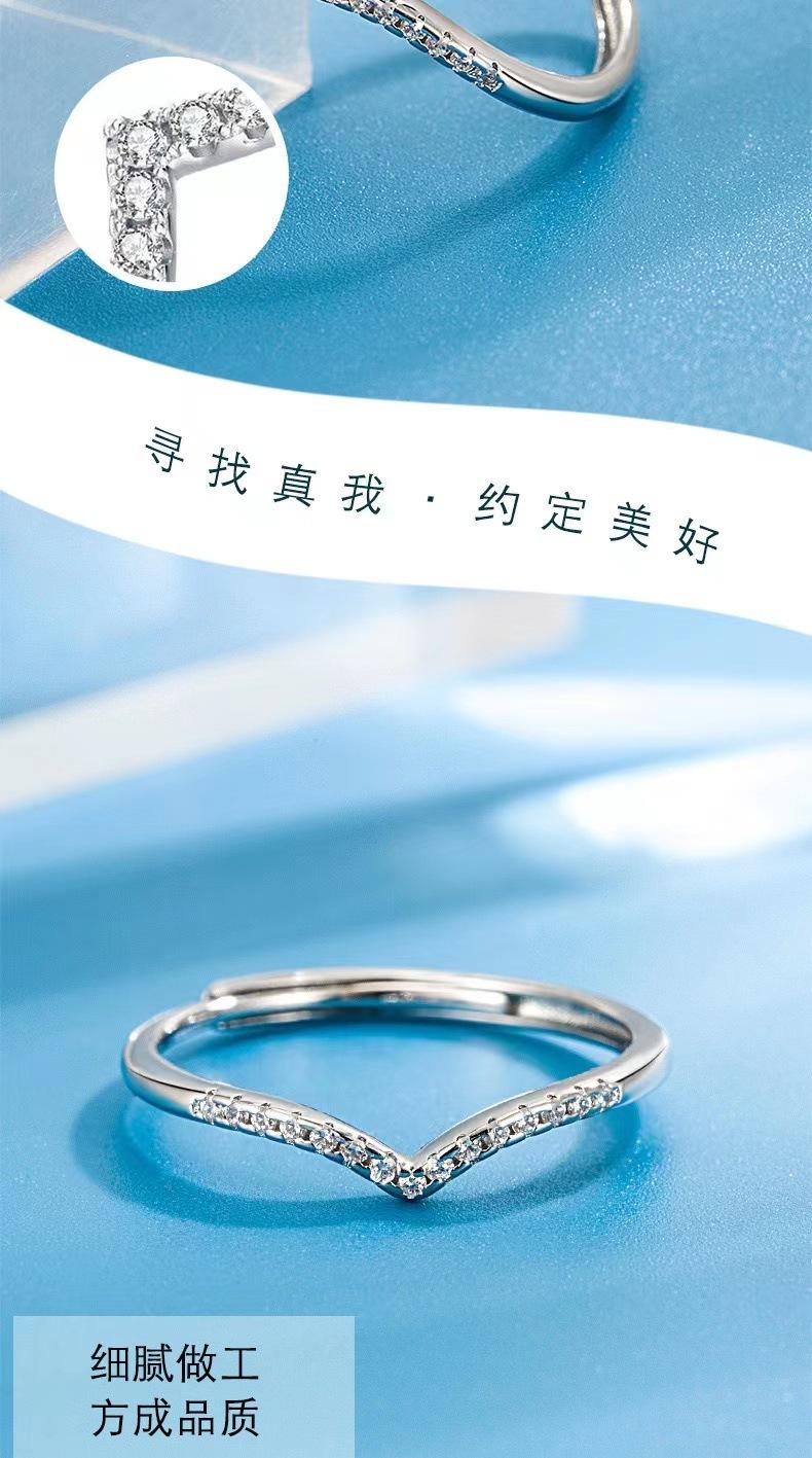 2023 Nueva Moda Anillo en Forma de V Abertura Ajustable Diseño de Diamante Elegante Fresco Regalo Venta al por Mayor de Fábrica