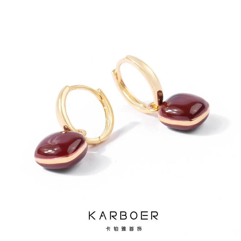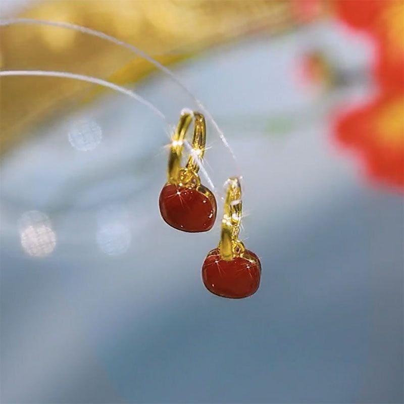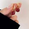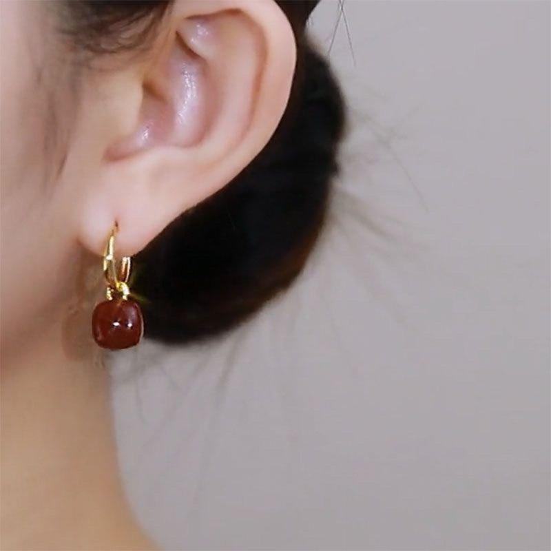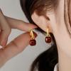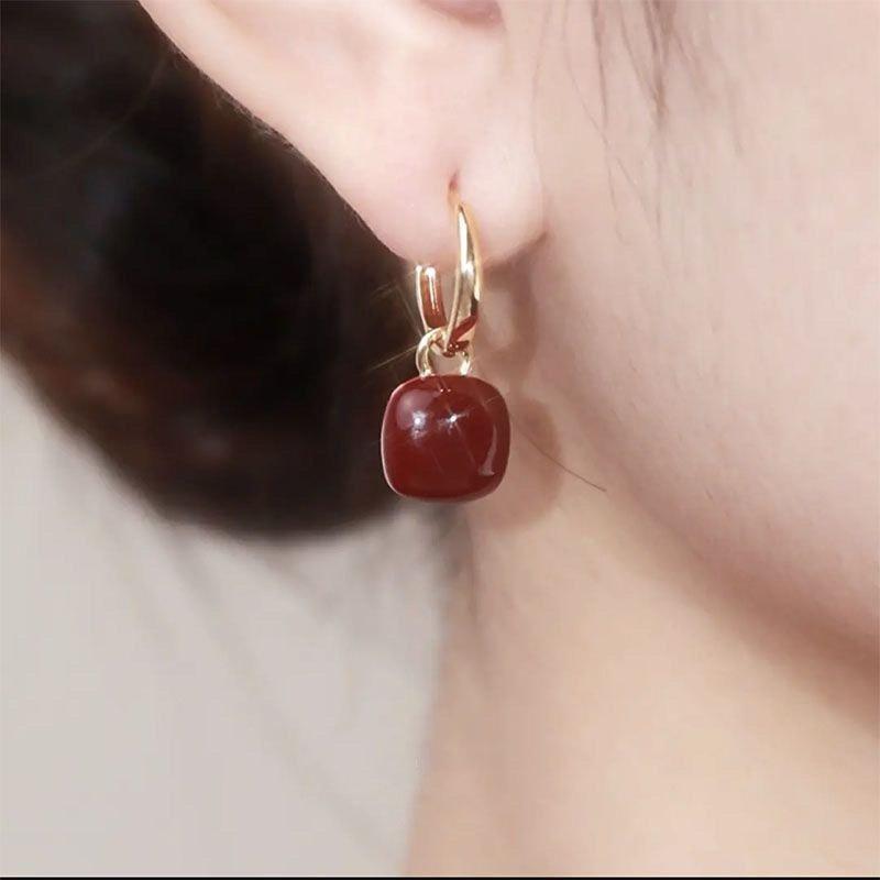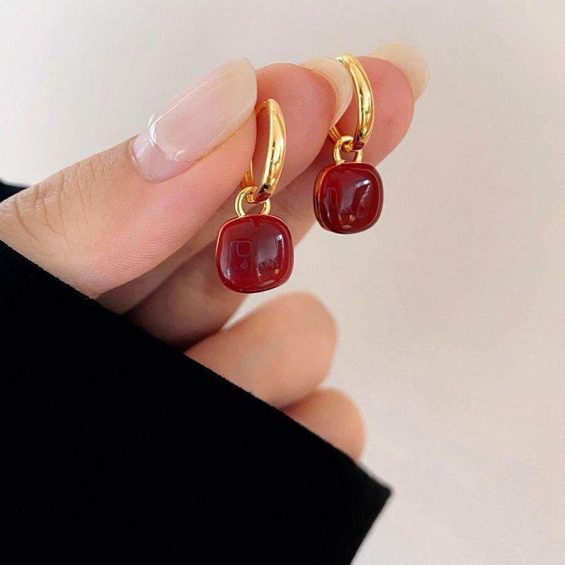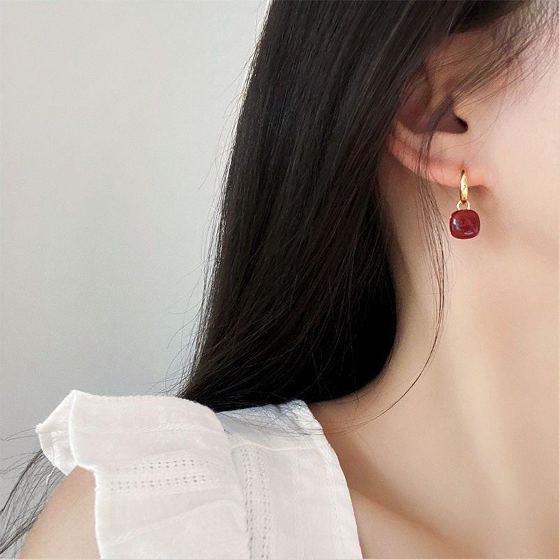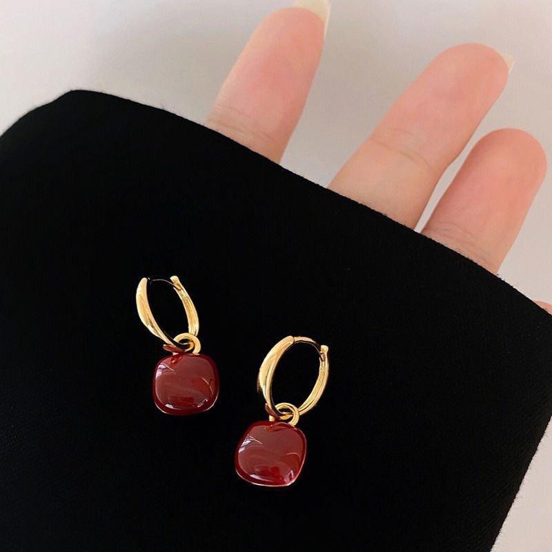 Pendientes de terciopelo rojo estilo retro de Hong Kong, dos piezas, hebilla para la oreja, elegantes pendientes de color rojo vino versátiles para mujer.