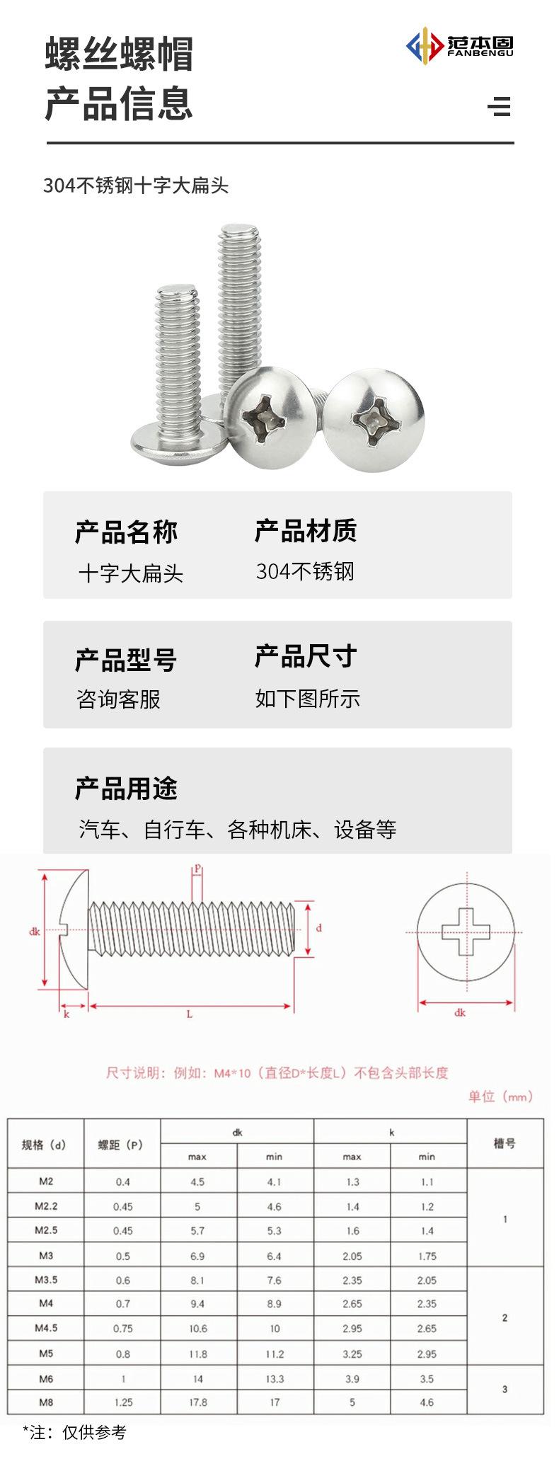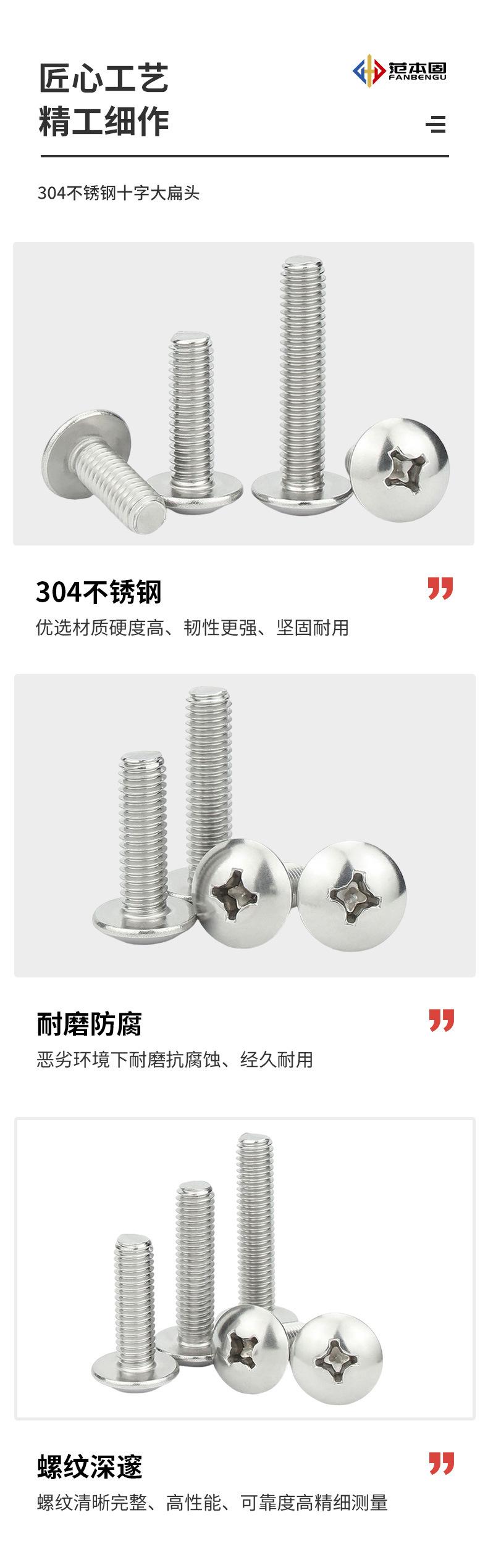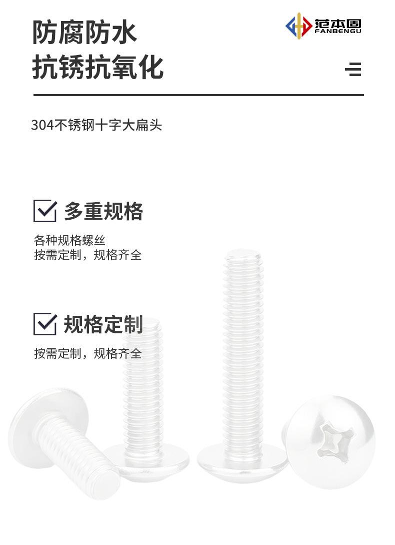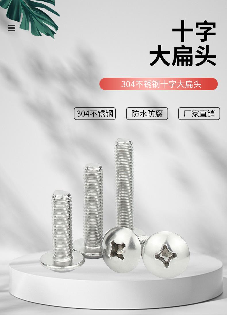 Tornillo de cabeza plana grande de acero inoxidable 304, tornillo de cabeza redonda grande, tornillo de cabeza plana grande M2M2.5M3M4M5