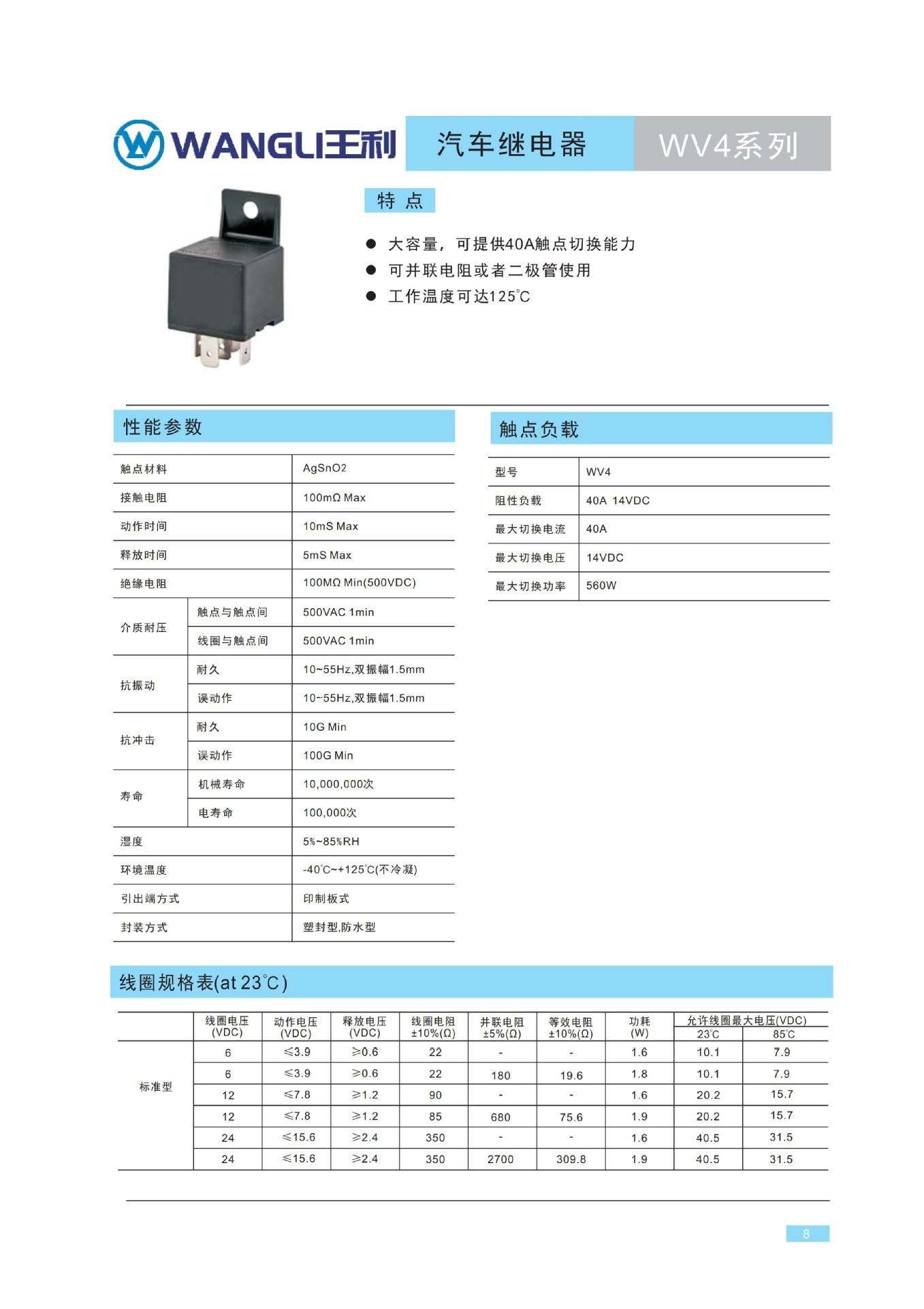 Relé Wang Li WV4 40A 5 pines 12V 24V 36V 48V 60V relé automotriz de alta potencia
