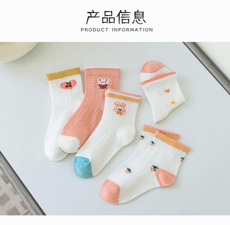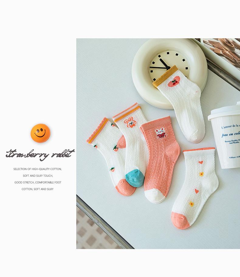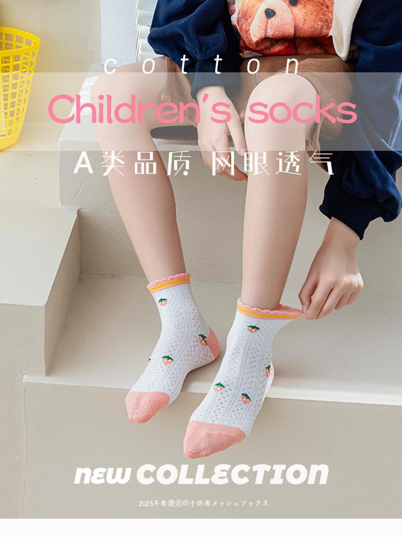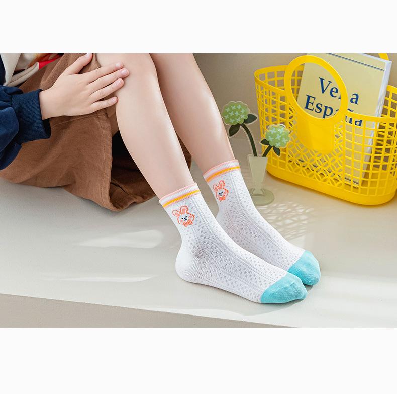 Calcetines de malla delgados para primavera y verano, calcetines finos para niños, calcetines de algodón con conejo de boca de burbuja, calcetines sueltos de encaje para niñas, una generación de cabello