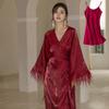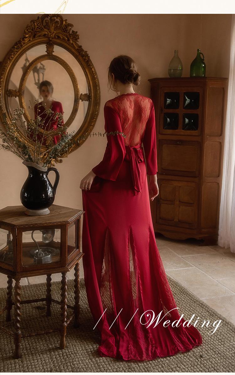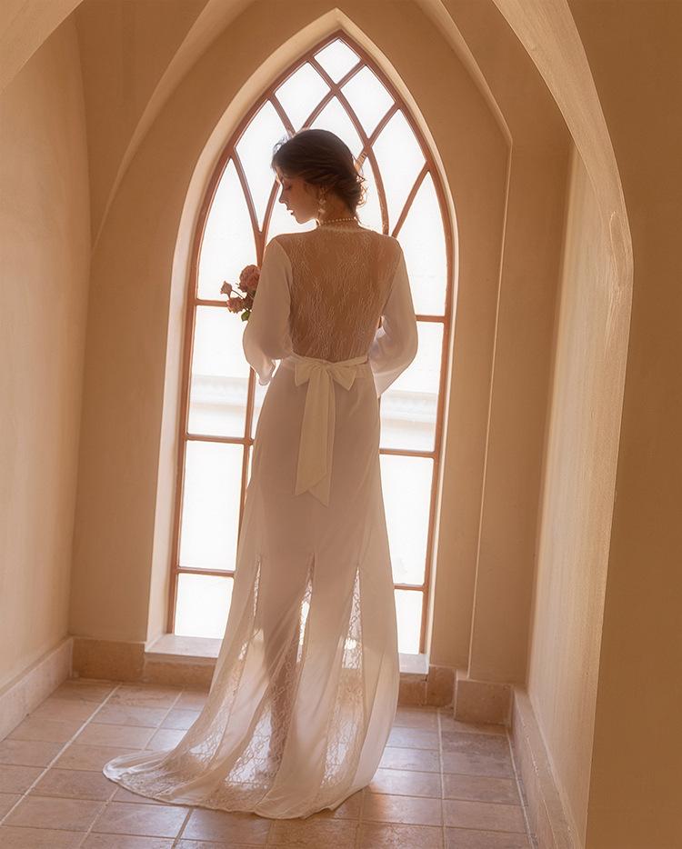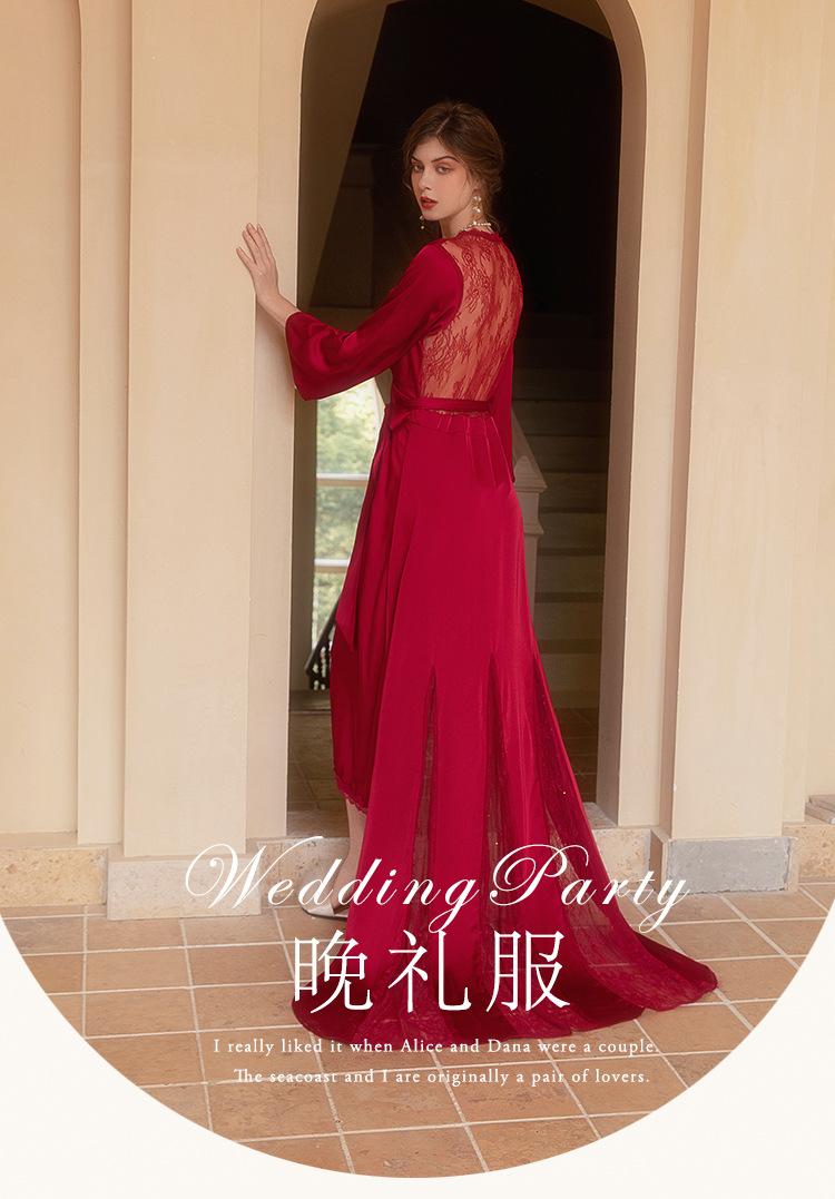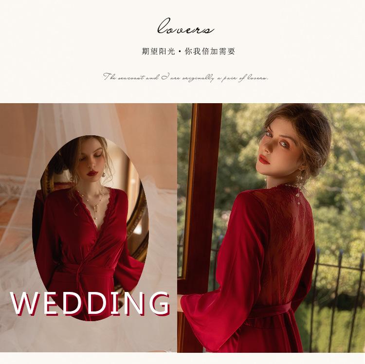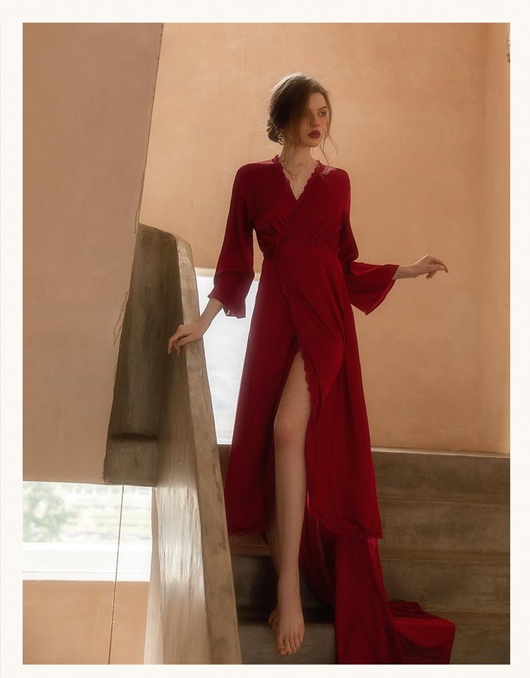 Vestido de novia de mañana, camisón largo de cola para mujer, maquillaje de boda, dama de honor, grupo, nicho, kimono, satén, alargamiento, bata de baño