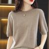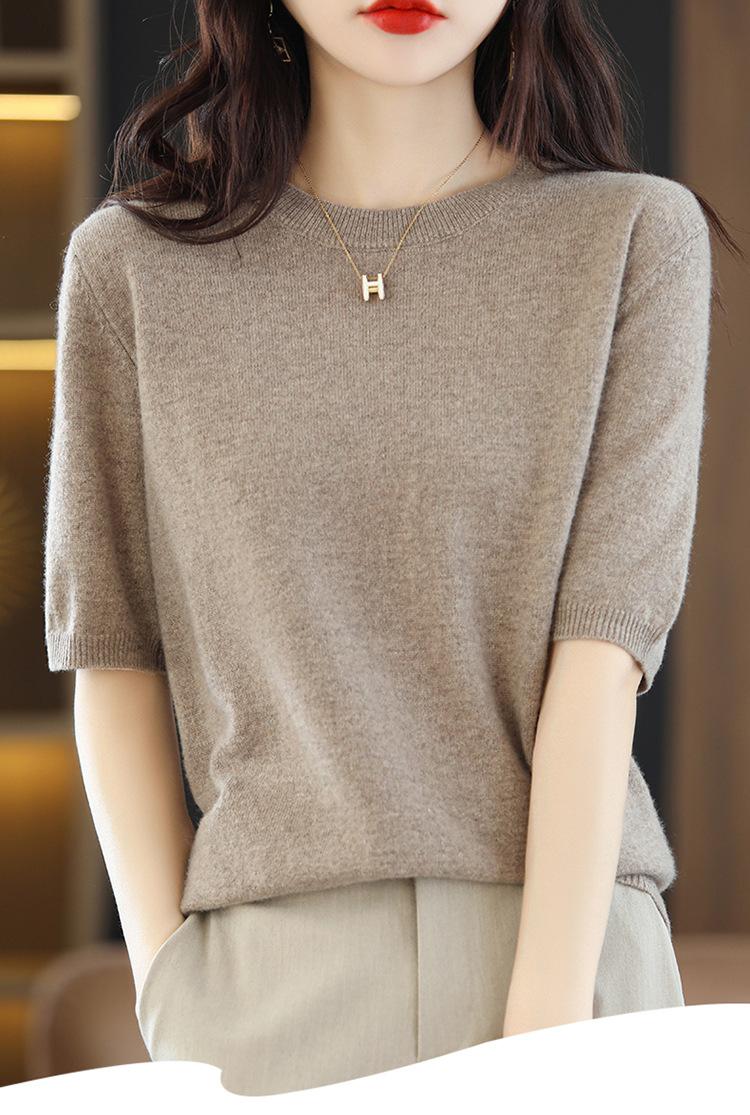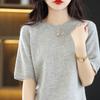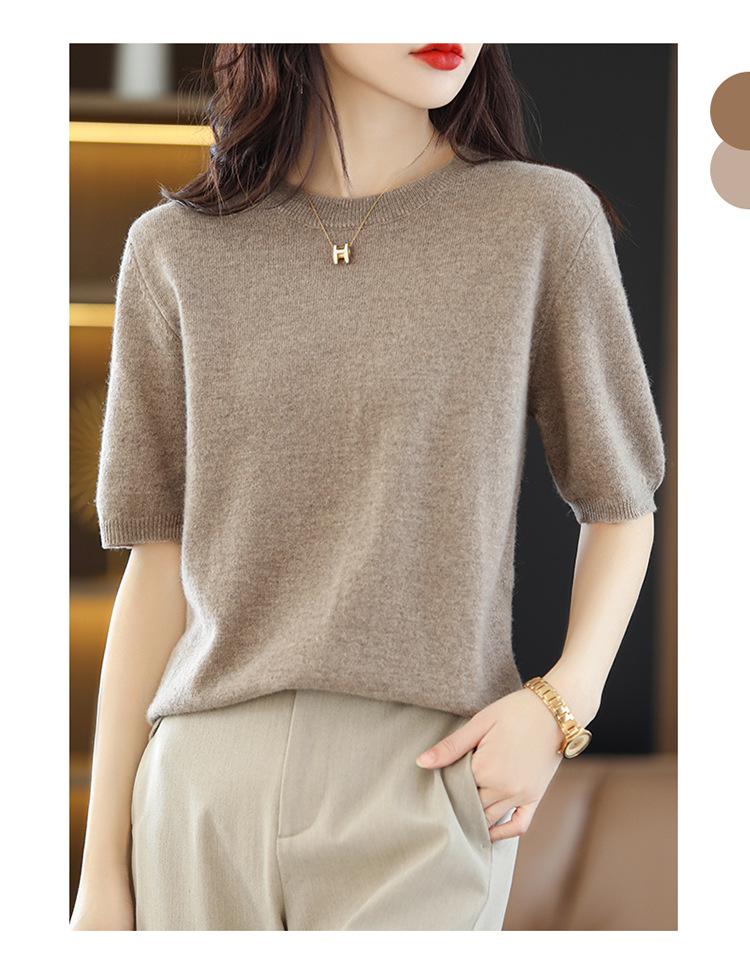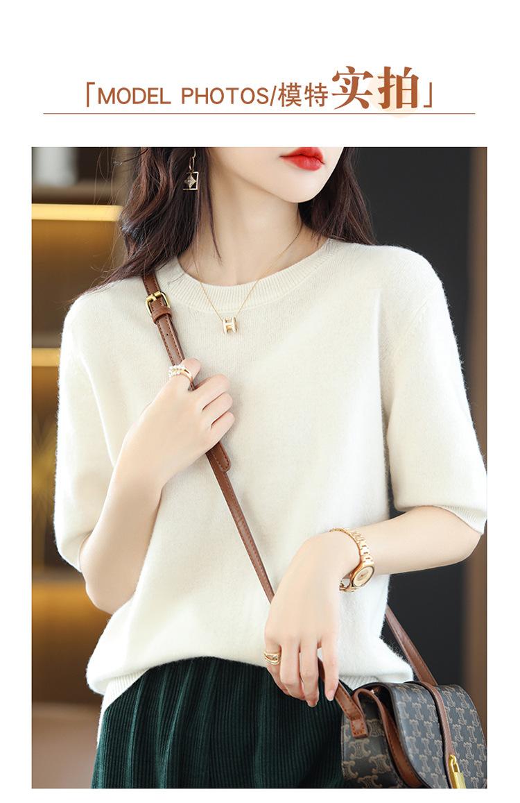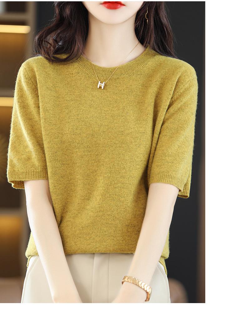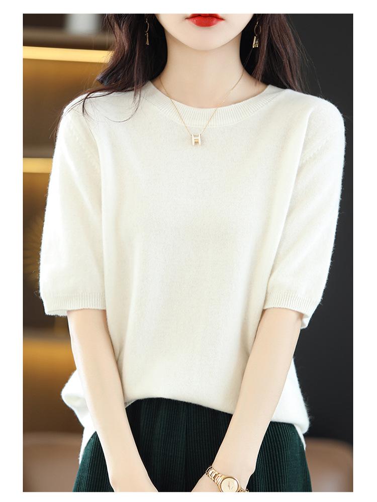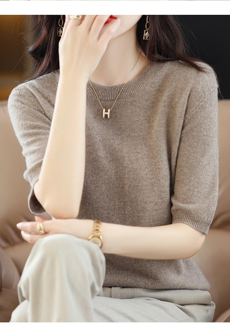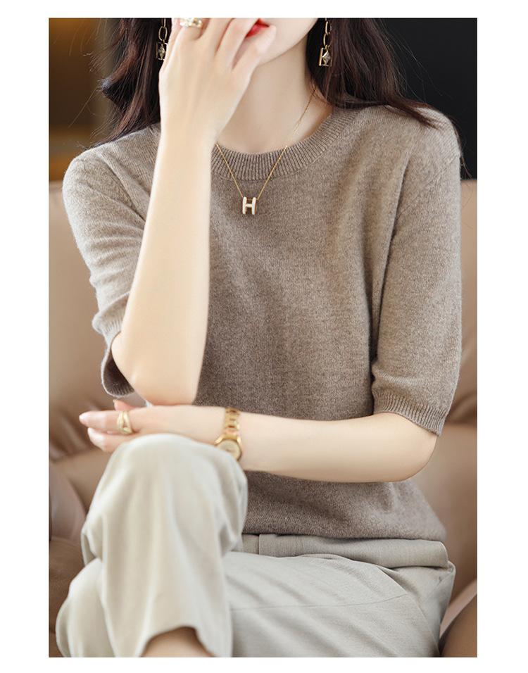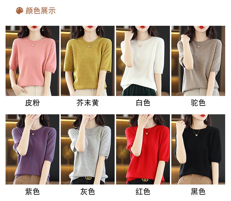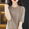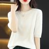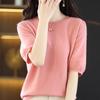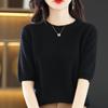 Suéter de primavera para mujer 100% lana pura cuello redondo manga media color sólido manga corta top de cachemira de punto para fondo
