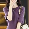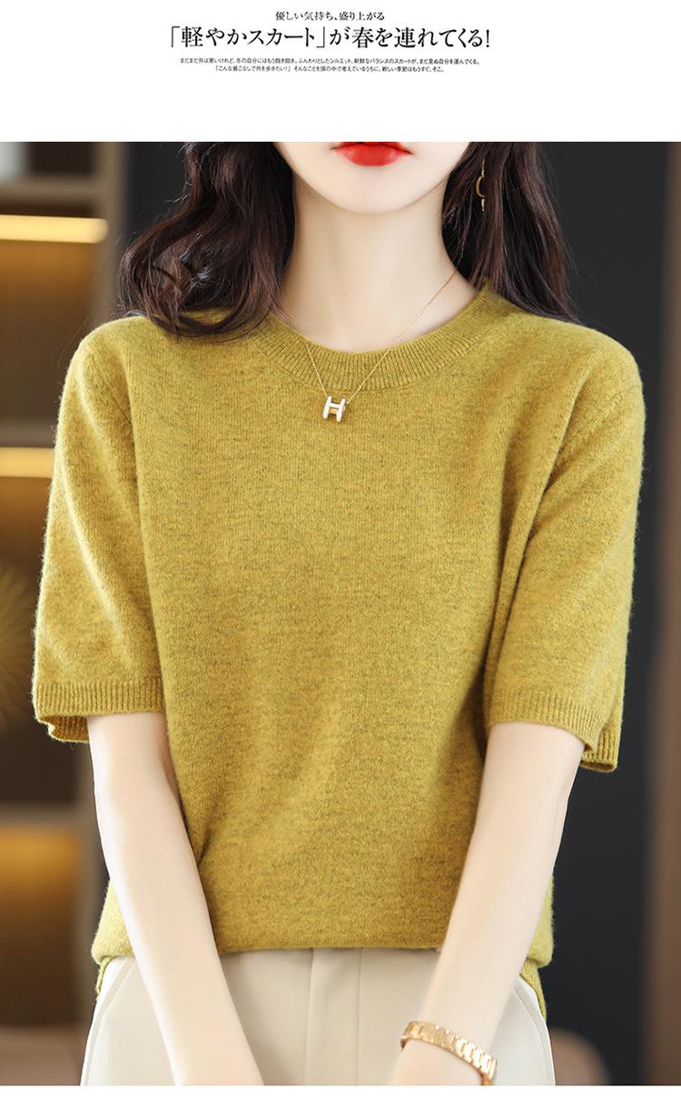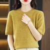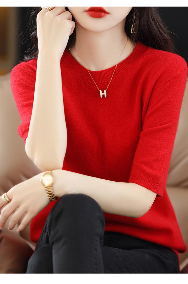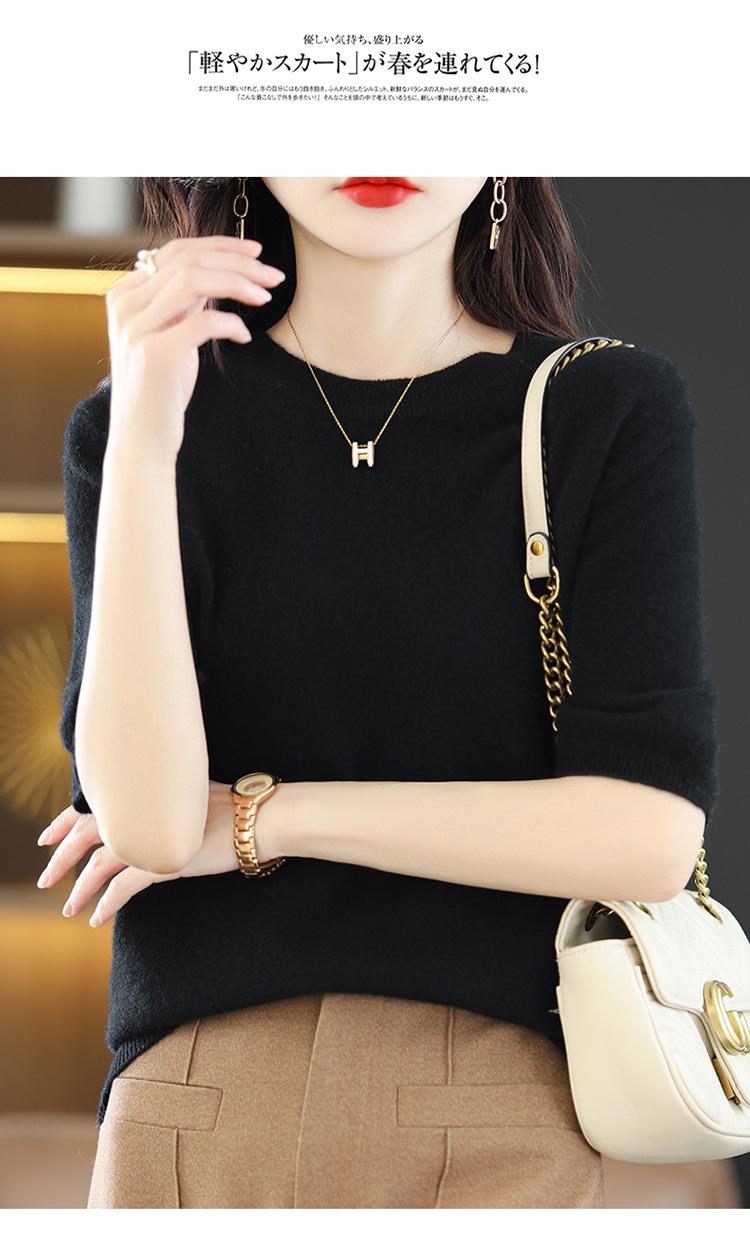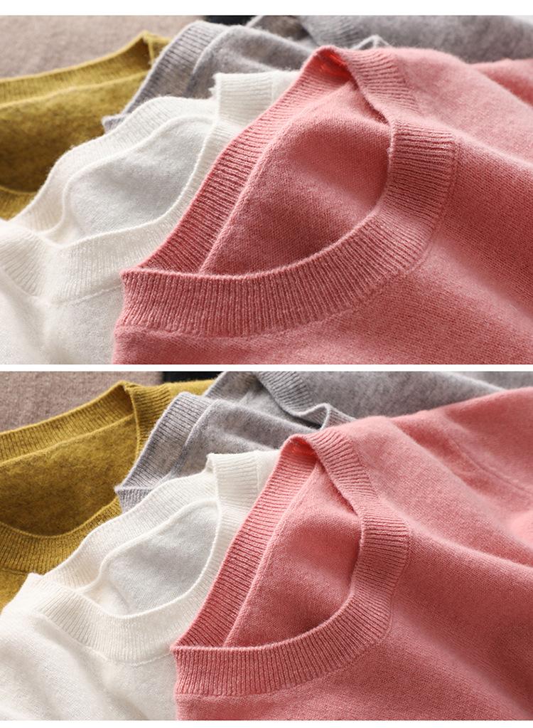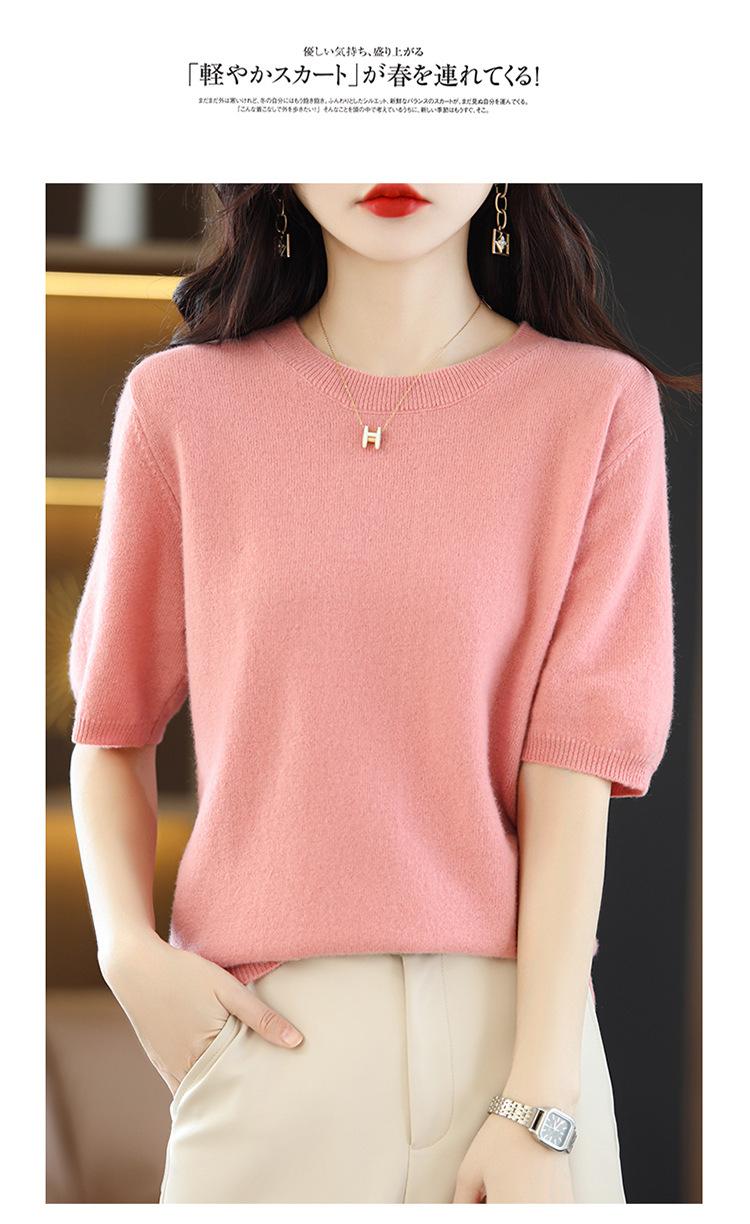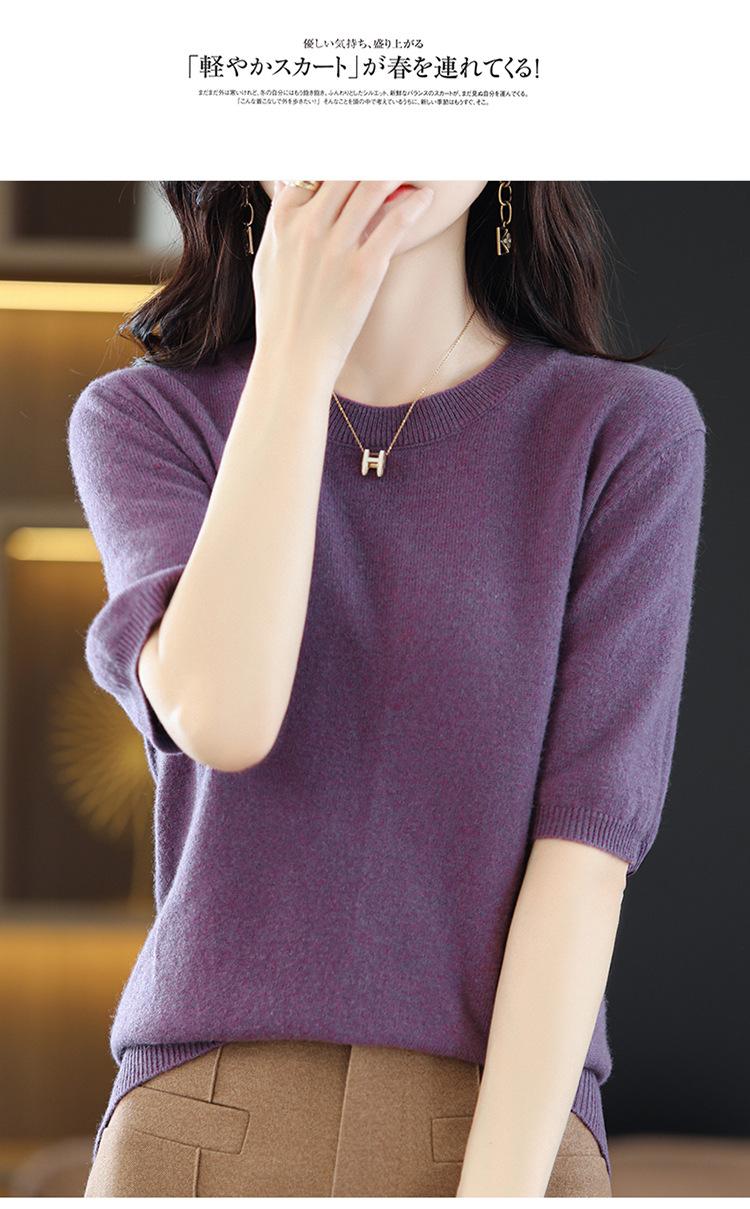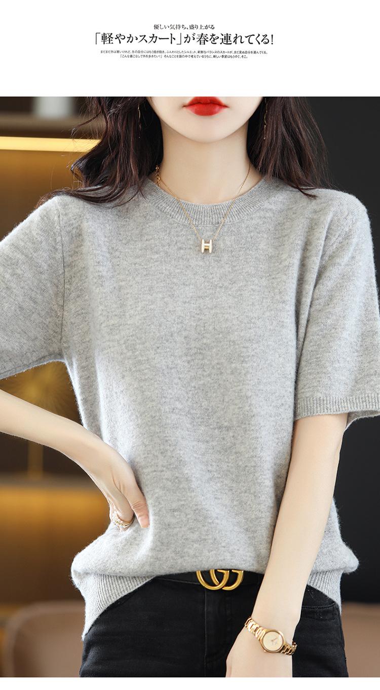 Suéter de primavera para mujer 100% lana pura cuello redondo manga media color sólido manga corta top de cachemira de punto para fondo