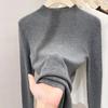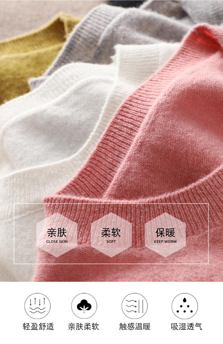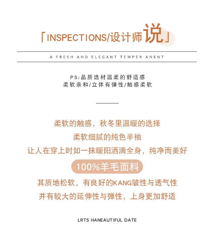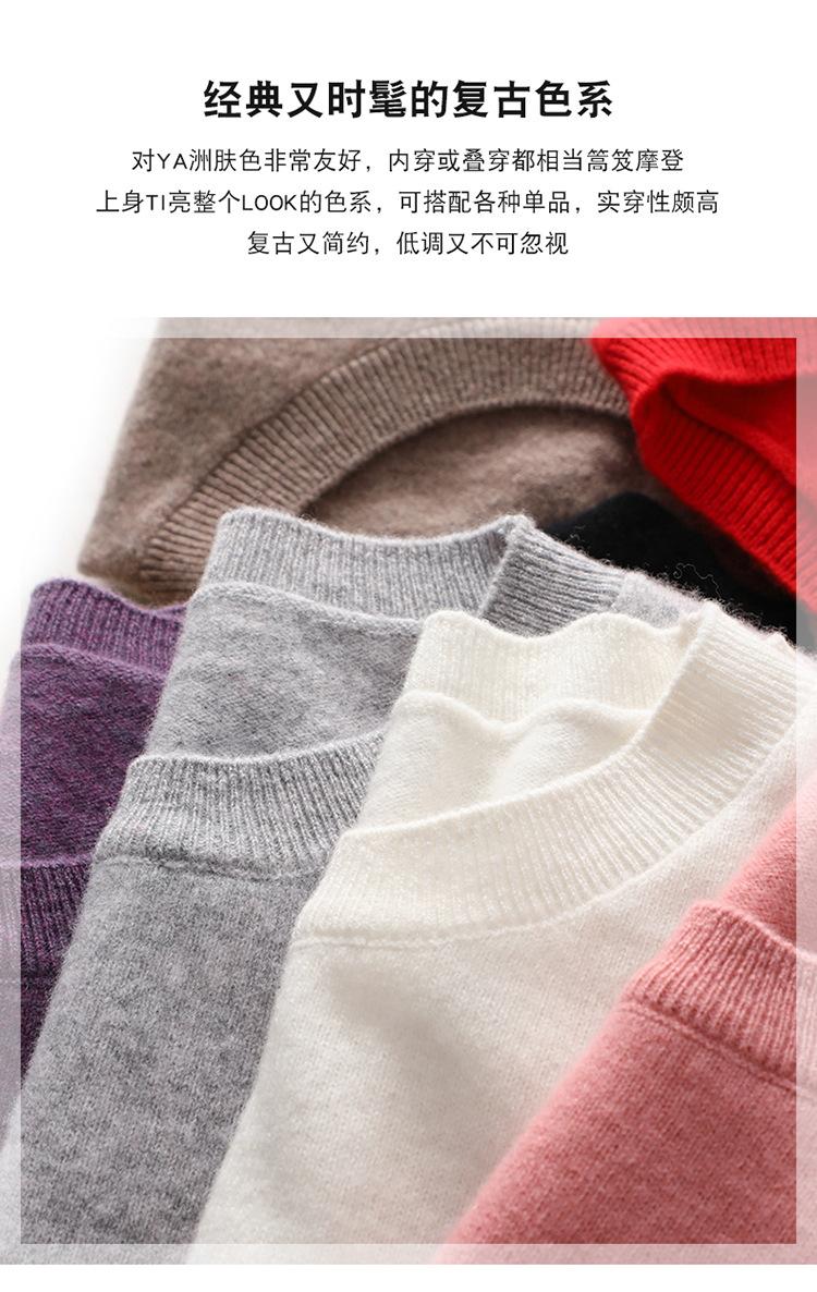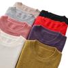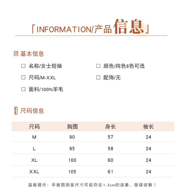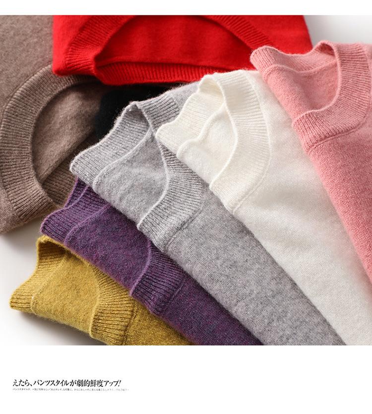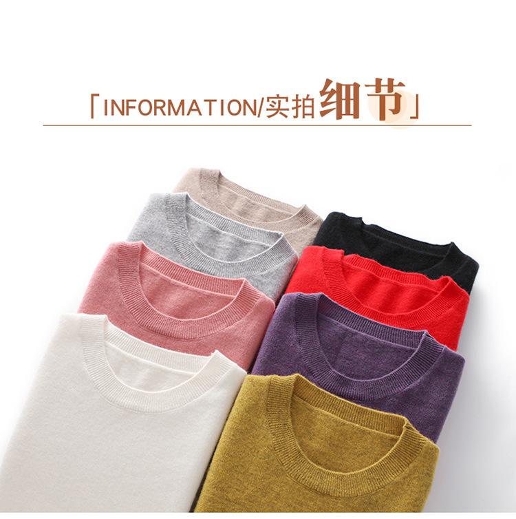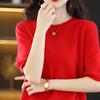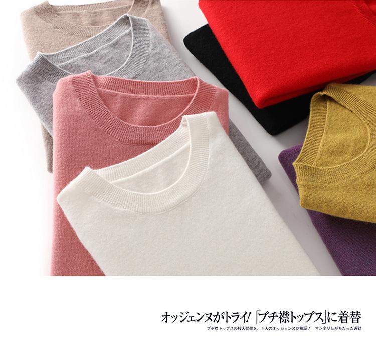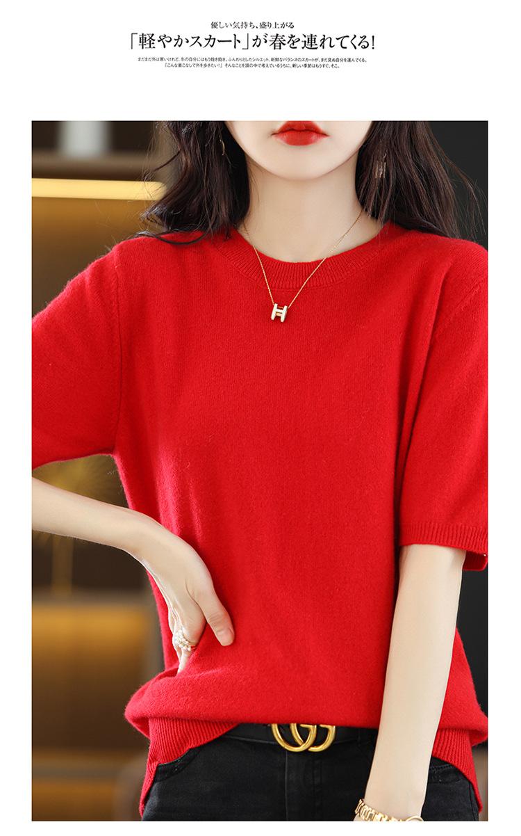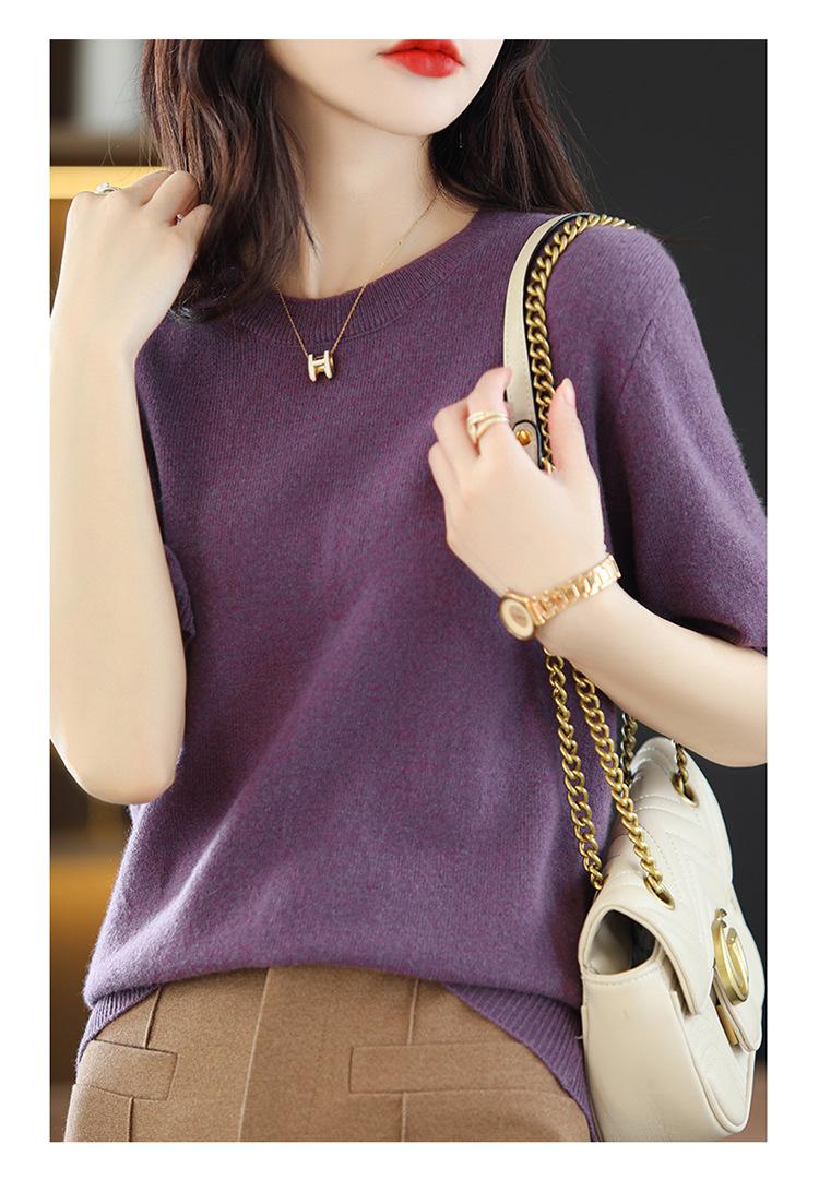 Suéter de primavera para mujer 100% lana pura cuello redondo manga media color sólido manga corta top de cachemira de punto para fondo