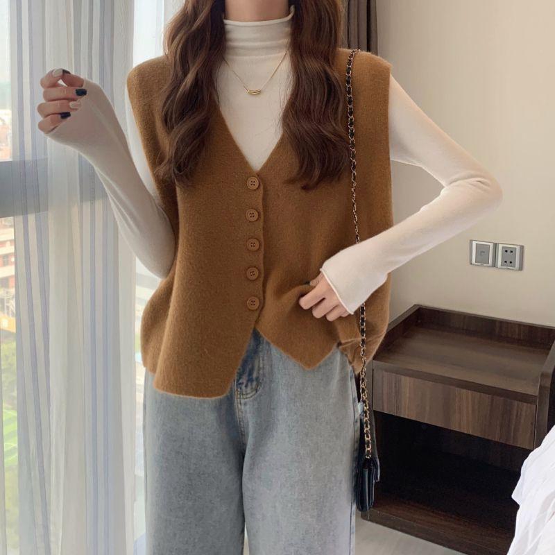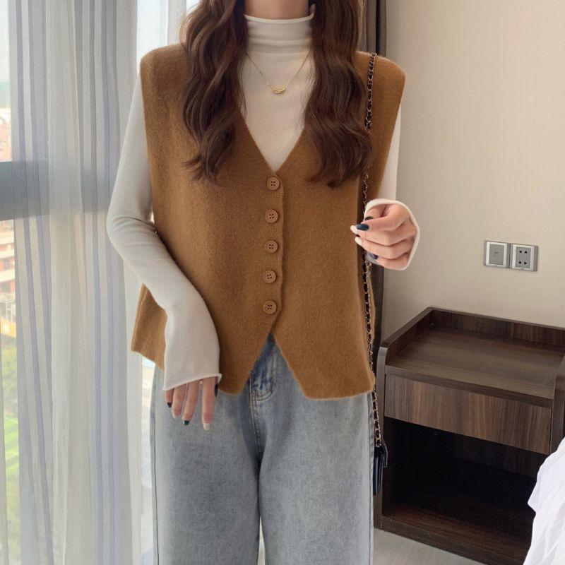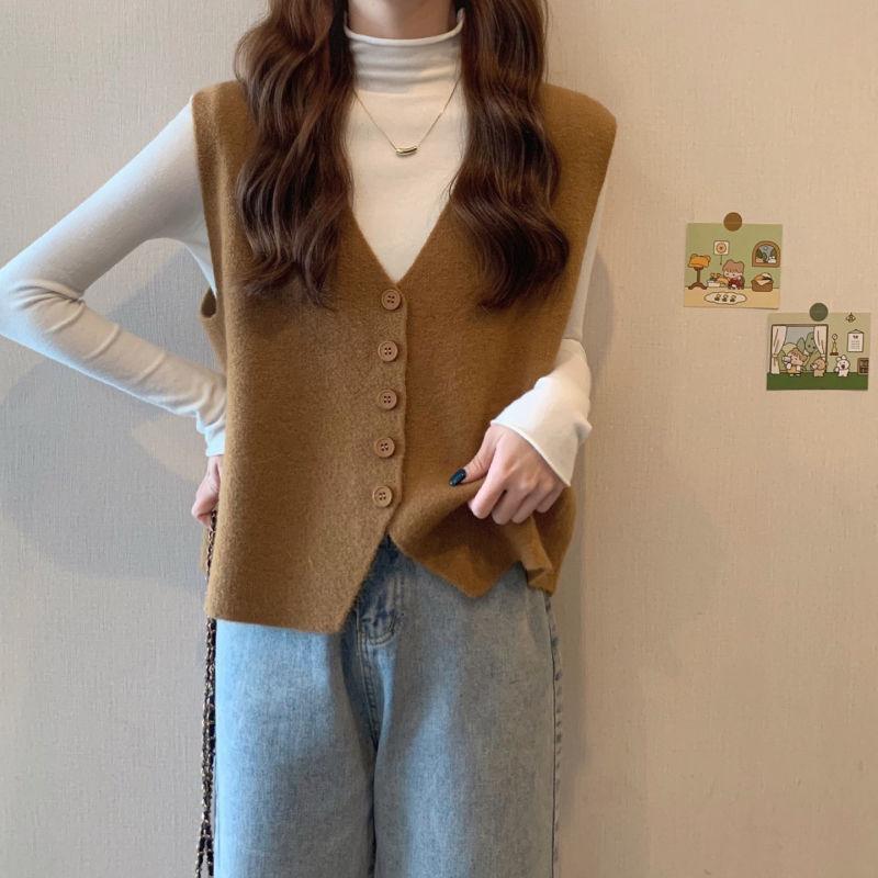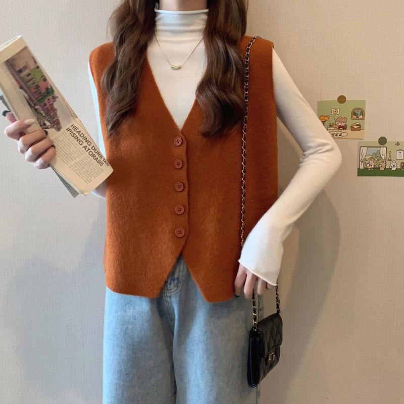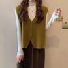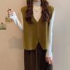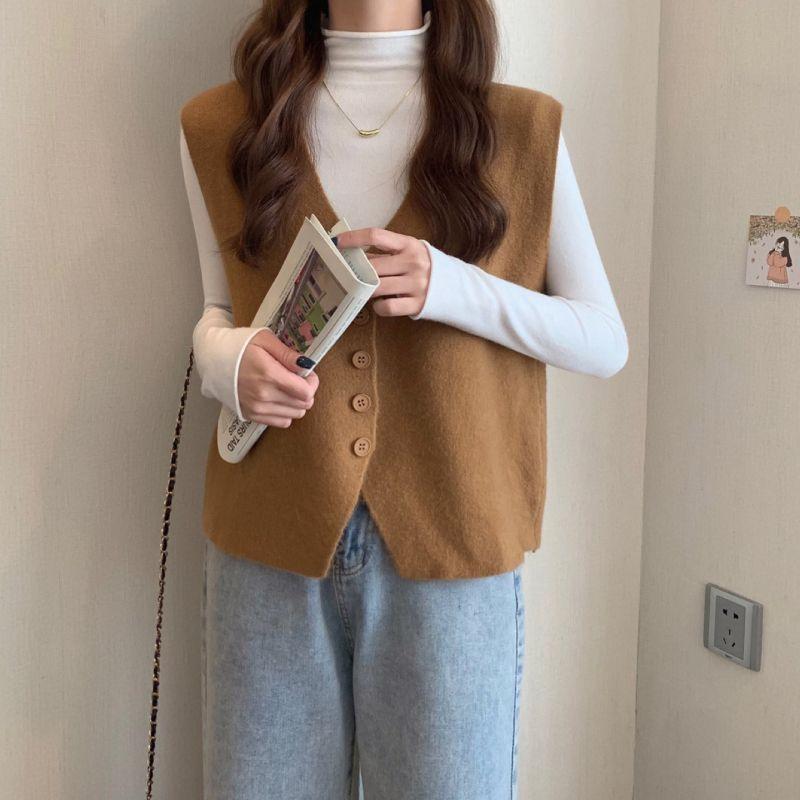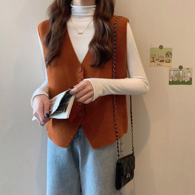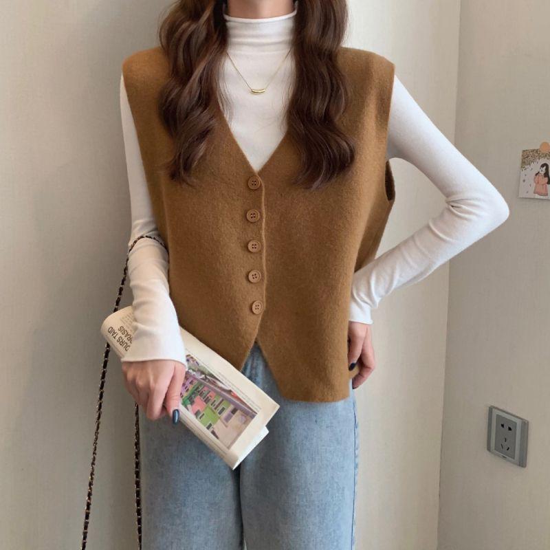 Chaleco de Diseño Retro con Cuello en V para Mujer Otoño e Invierno Tejido Exterior Cárdigan Chaleco Color Sólido Chaleco Apilado Top Ropa de Mujer