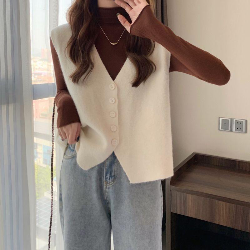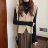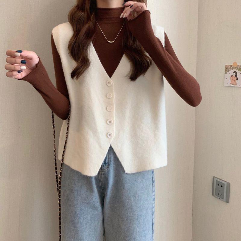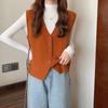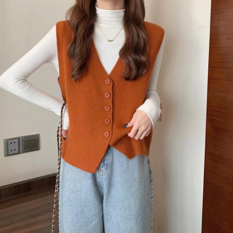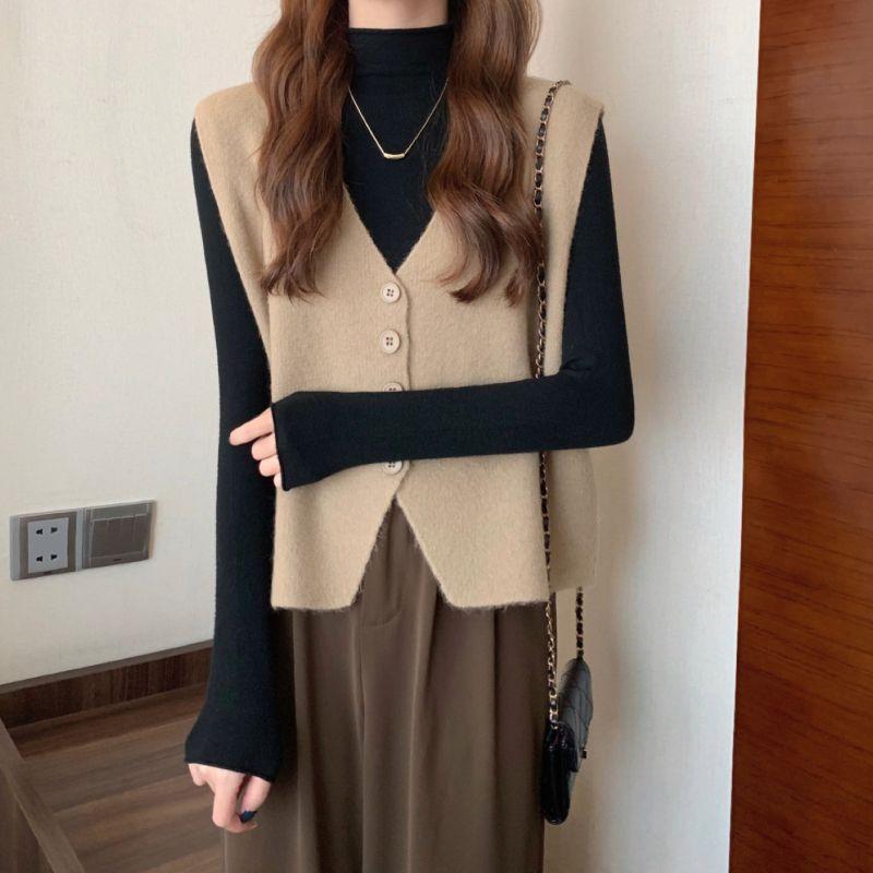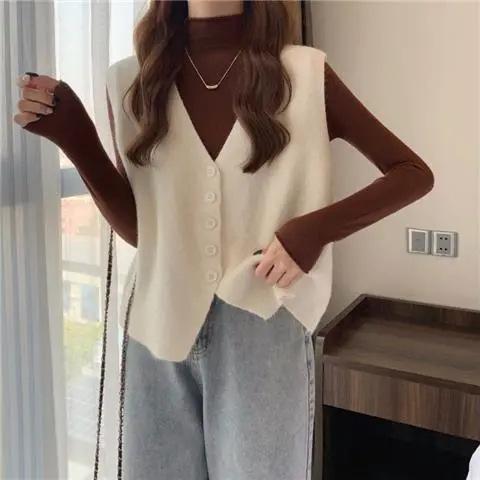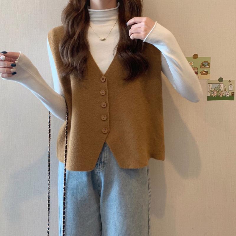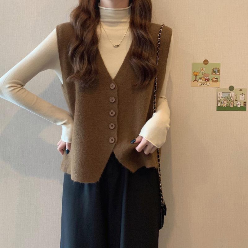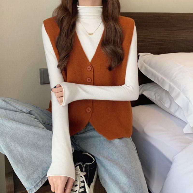 Chaleco de Diseño Retro con Cuello en V para Mujer Otoño e Invierno Tejido Exterior Cárdigan Chaleco Color Sólido Chaleco Apilado Top Ropa de Mujer