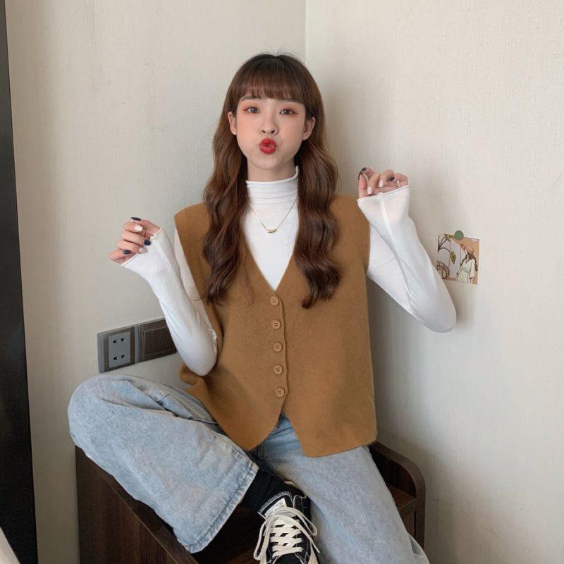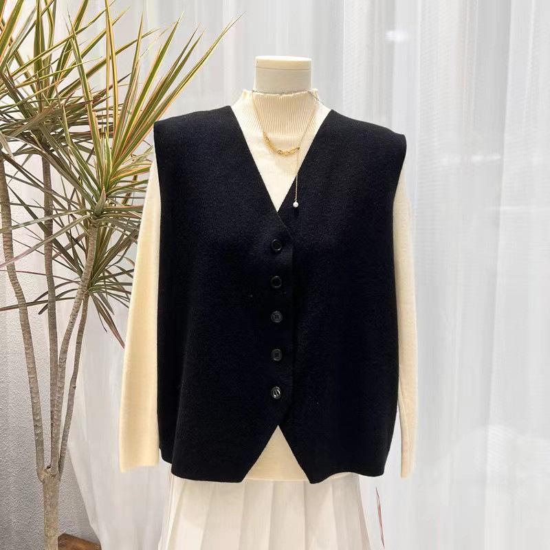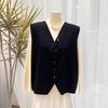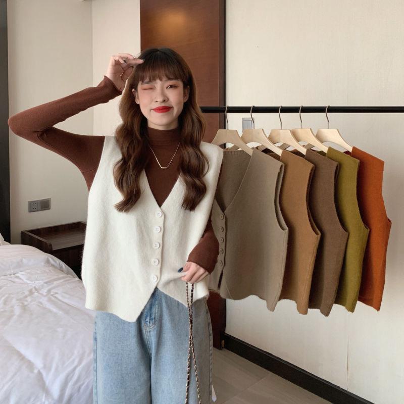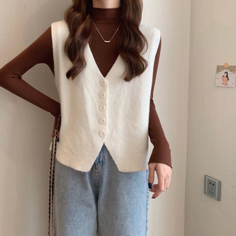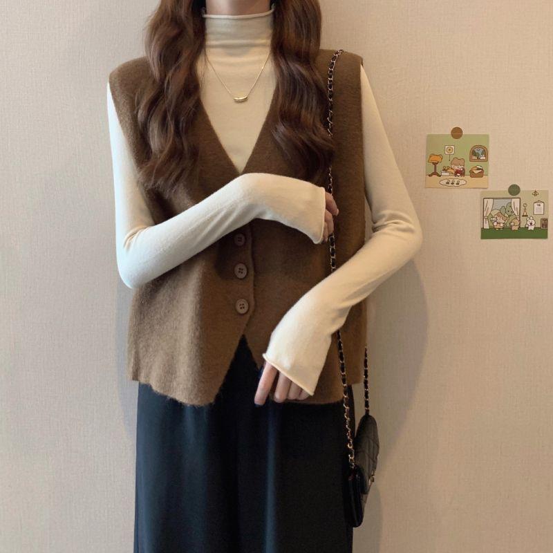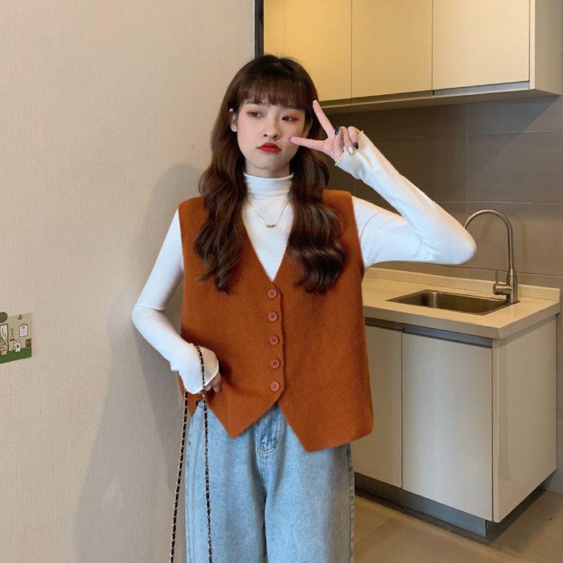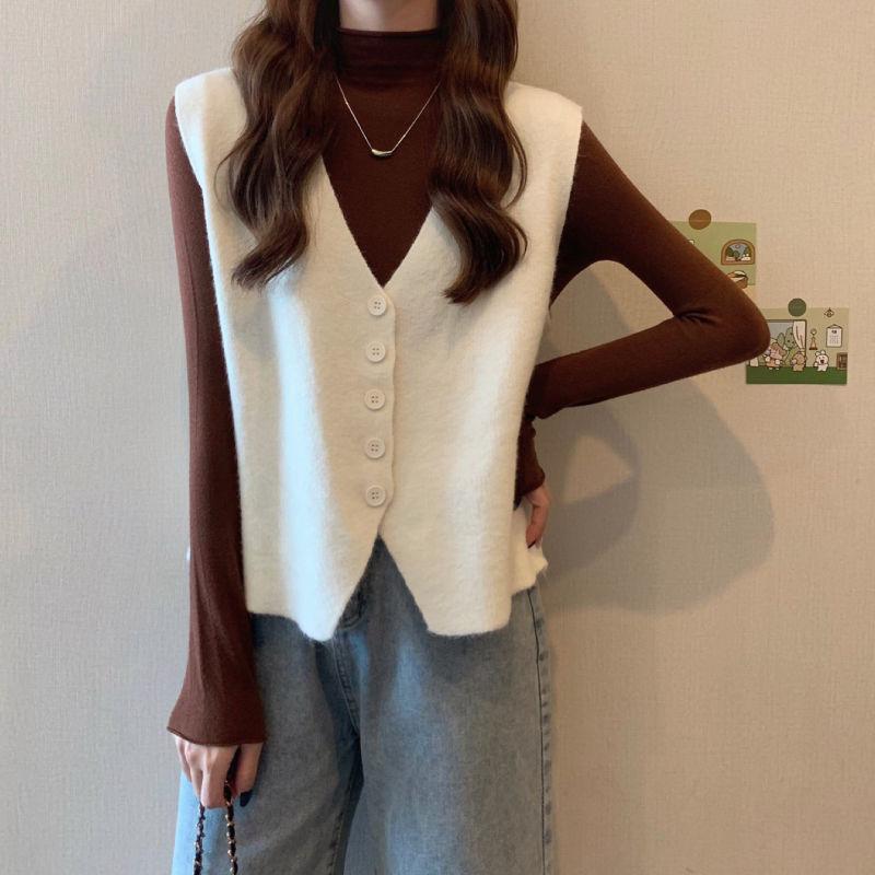 Chaleco de Diseño Retro con Cuello en V para Mujer Otoño e Invierno Tejido Exterior Cárdigan Chaleco Color Sólido Chaleco Apilado Top Ropa de Mujer