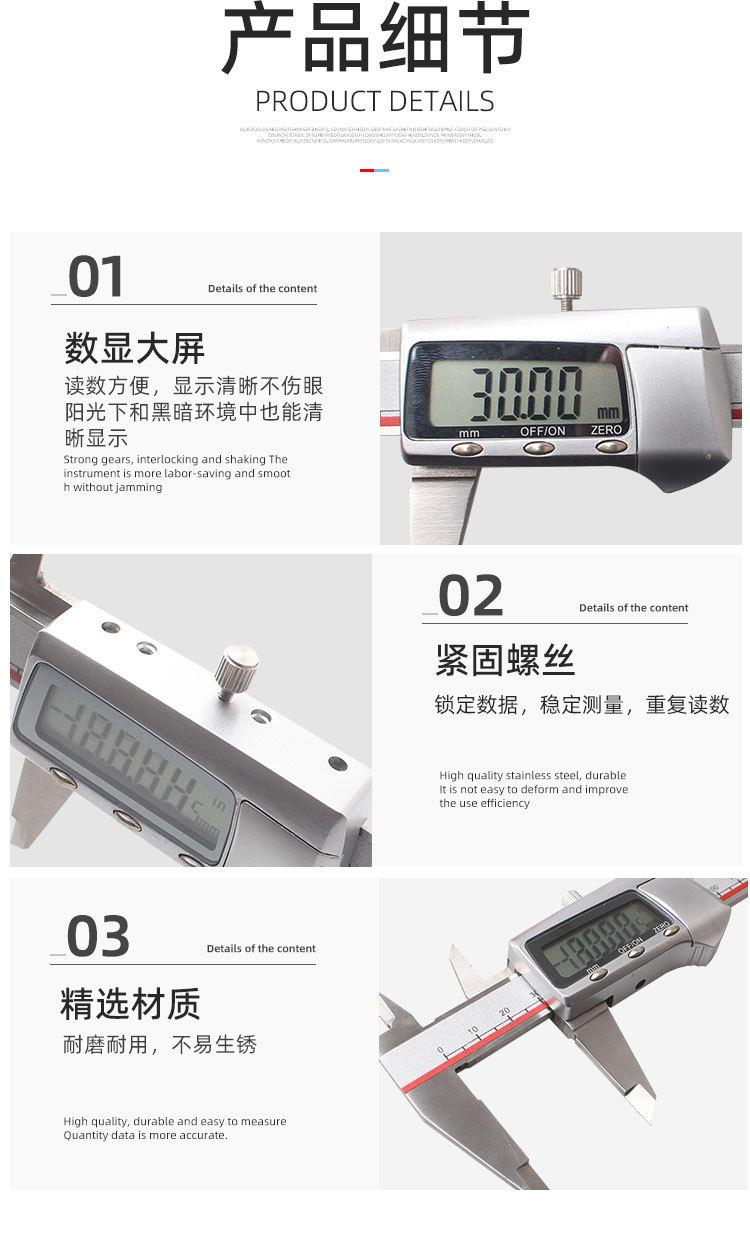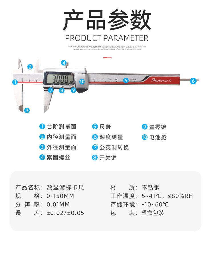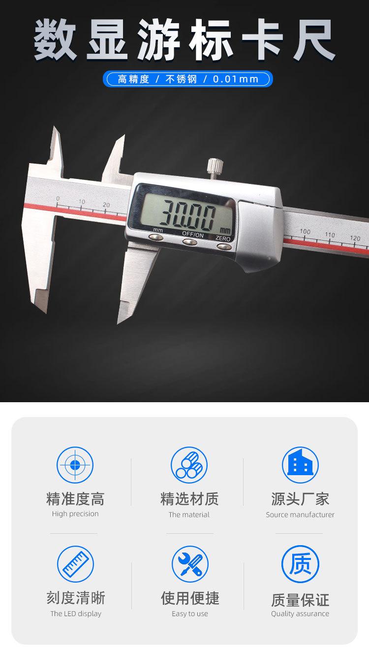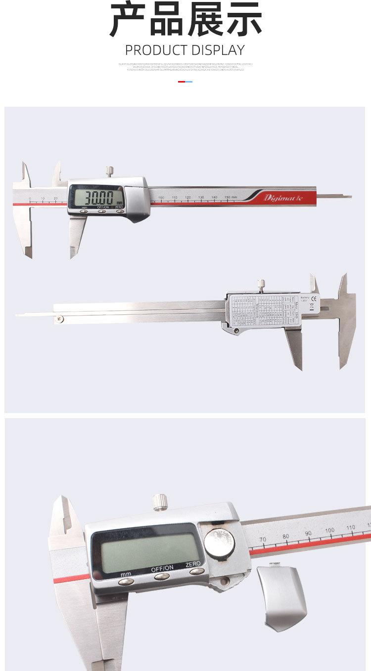 Calibrador Vernier de acero inoxidable con cabezal metálico de 150 mm y pantalla digital de alta precisión de fábrica