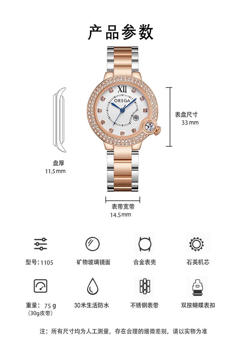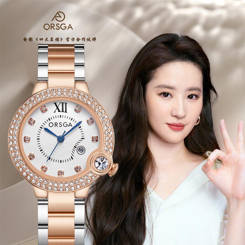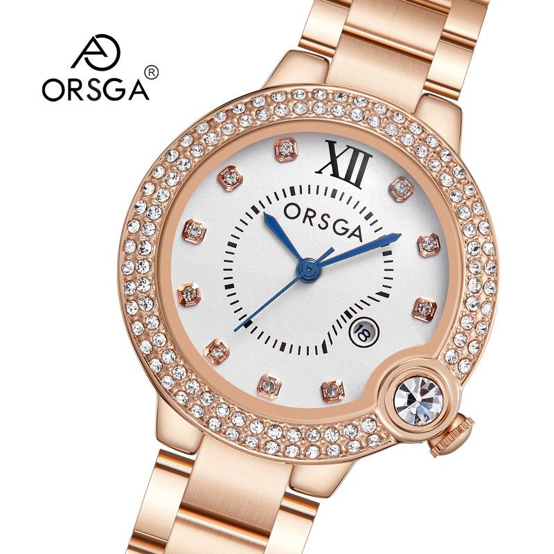 Reloj de lujo ORSGA para mujer, con luz romana y incrustaciones de diamantes, calendario globo, resistente al agua, de fábrica, reloj de cuarzo transfronterizo en vivo para mujer