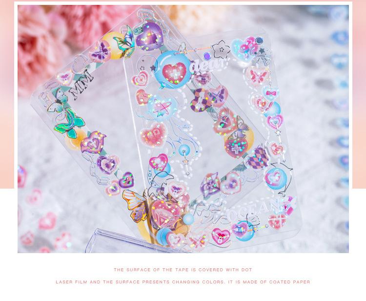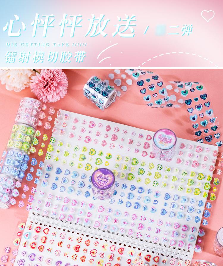 Cinta troquelada láser de idioma inactivo, corazón palpitante, lanzamiento 2, serie de bombas, material básico de cuenta manual, pegatinas de decoración 8