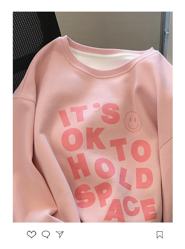 Suéter compuesto de algodón Hua de 300g para mujer, nuevo, casual de longitud media versátil, dulce, con estampado de letras, top dopamínico