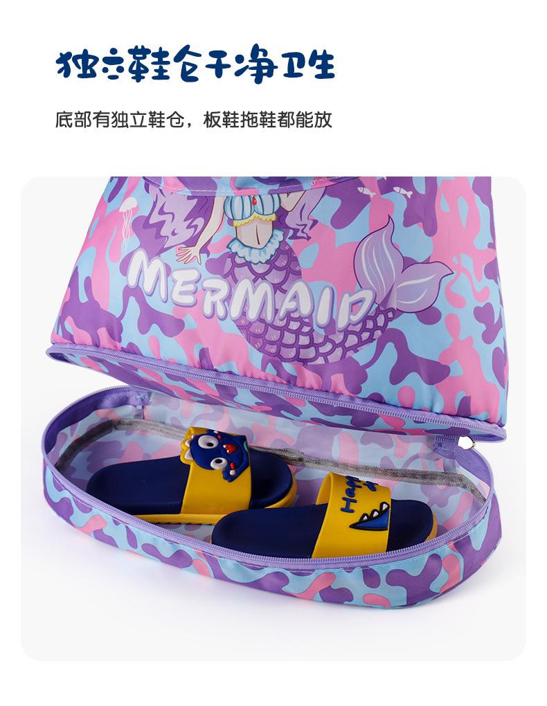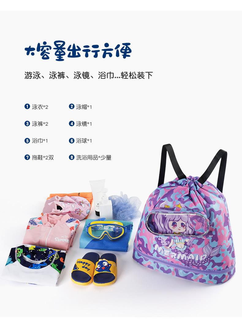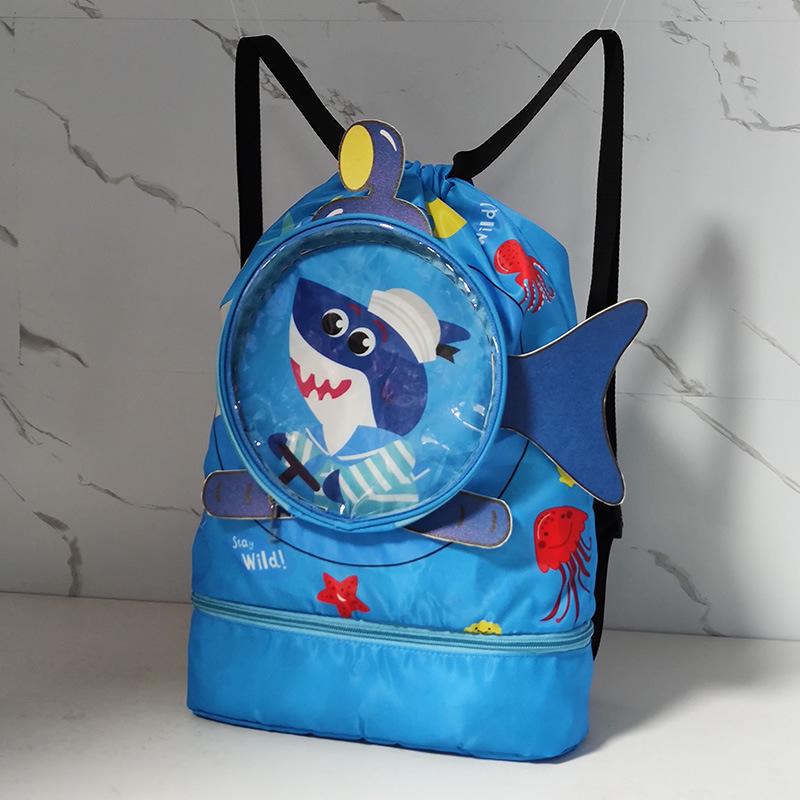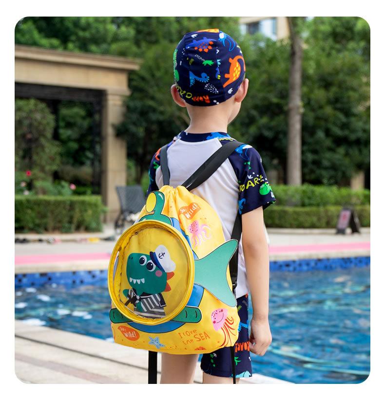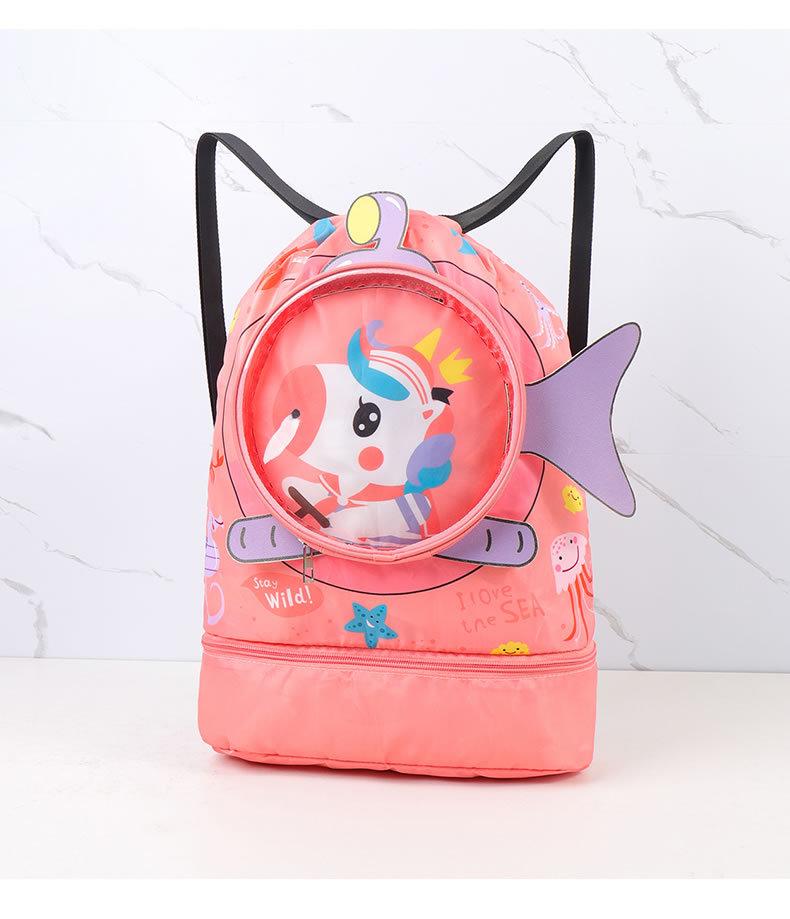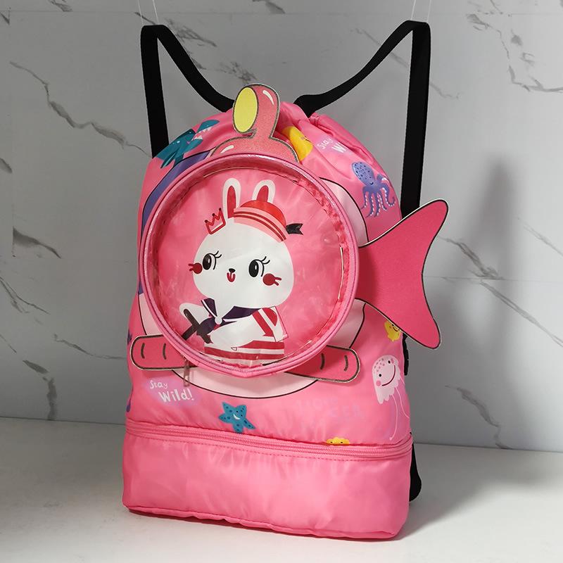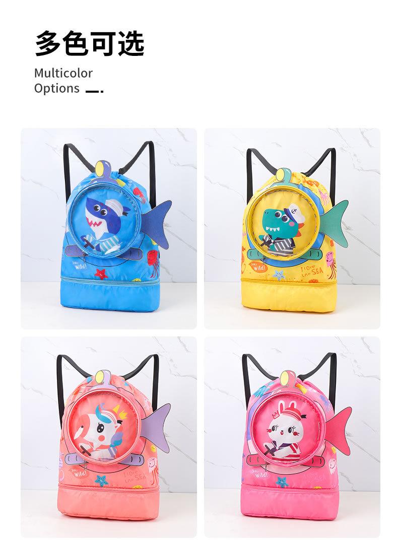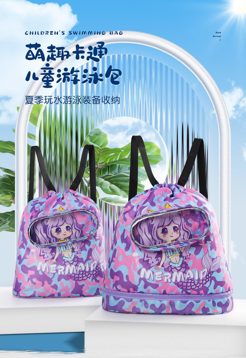 Bolsa de natación para niños, bolsa de almacenamiento impermeable, separada, seca y húmeda, mochila de playa portátil con dibujos animados para niños y niñas