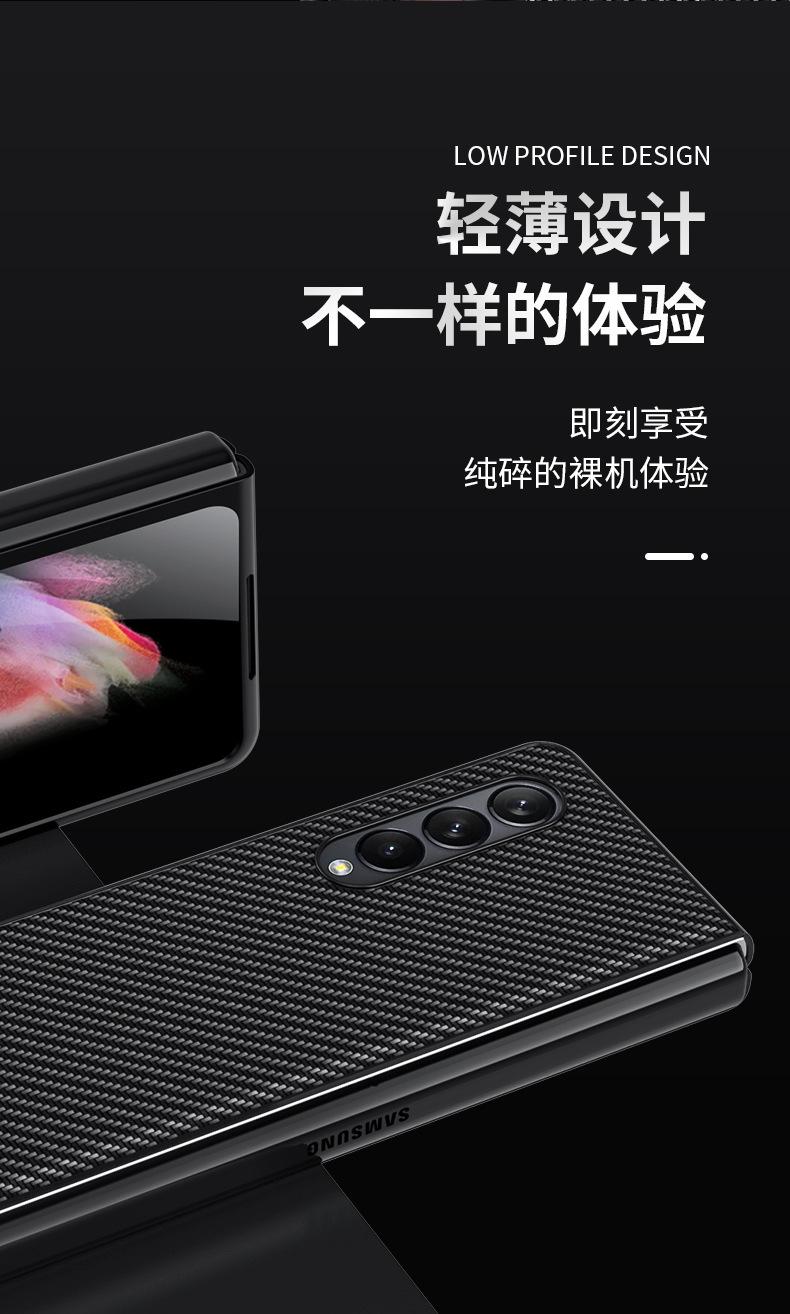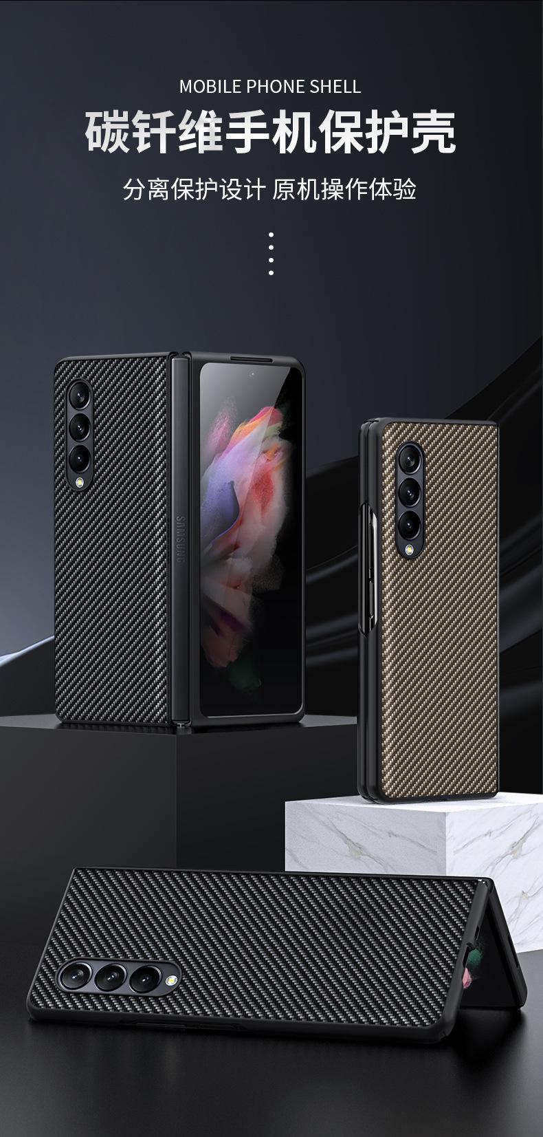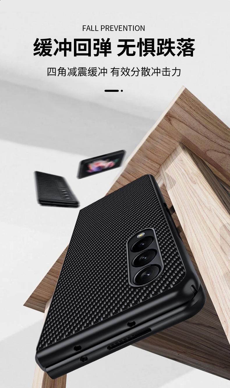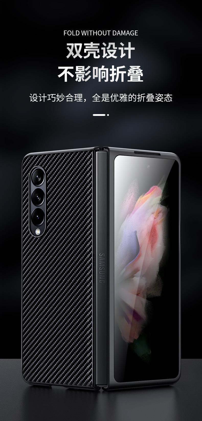 Soporte con patrón de fibra de carbono Estuche protector Adecuado para estuche de teléfono móvil Samsung Fold3 Samsung W22 Estuche protector Business Fold2