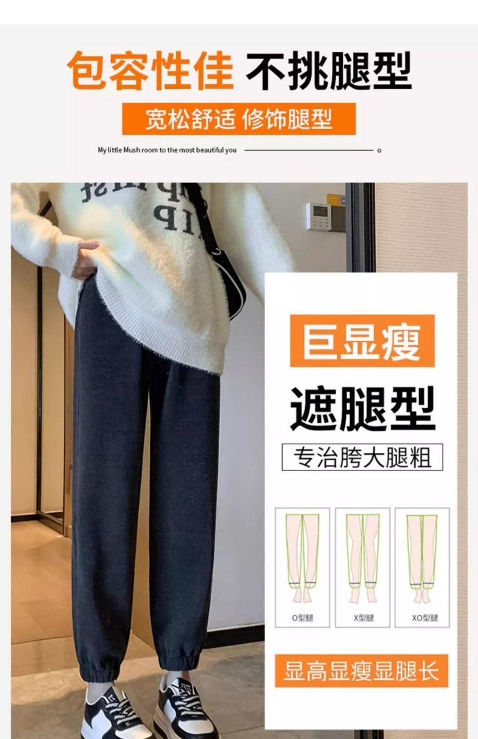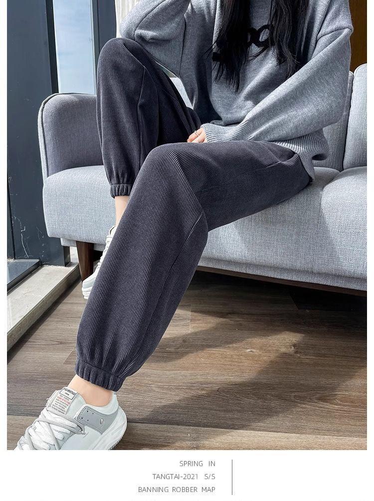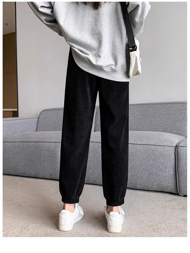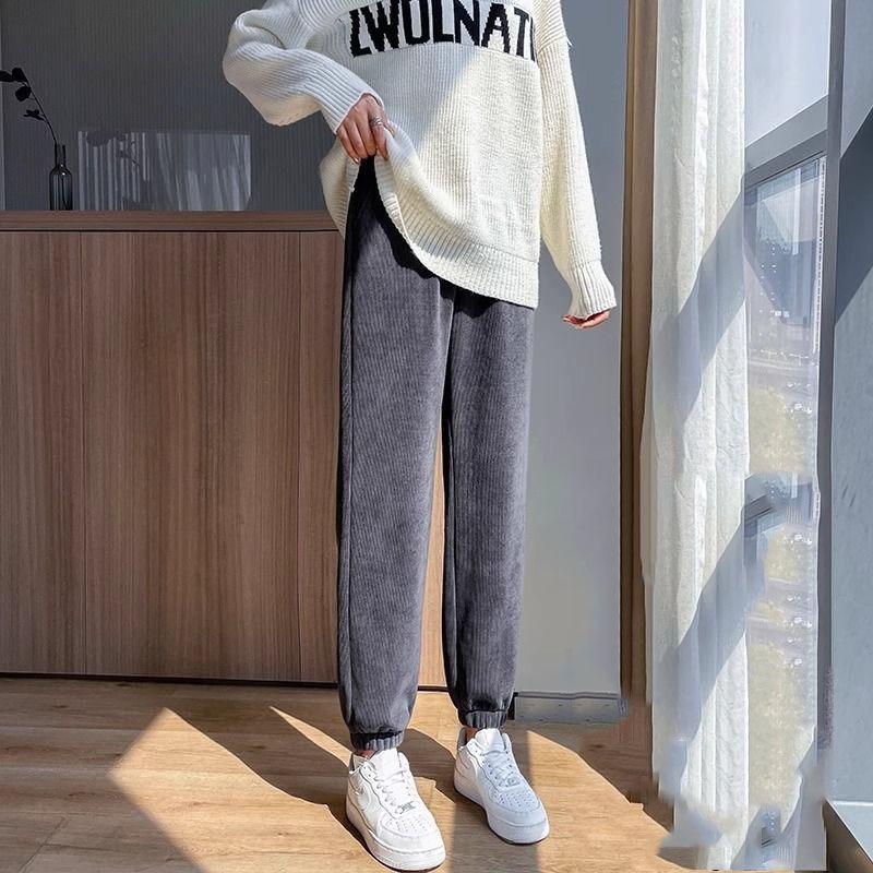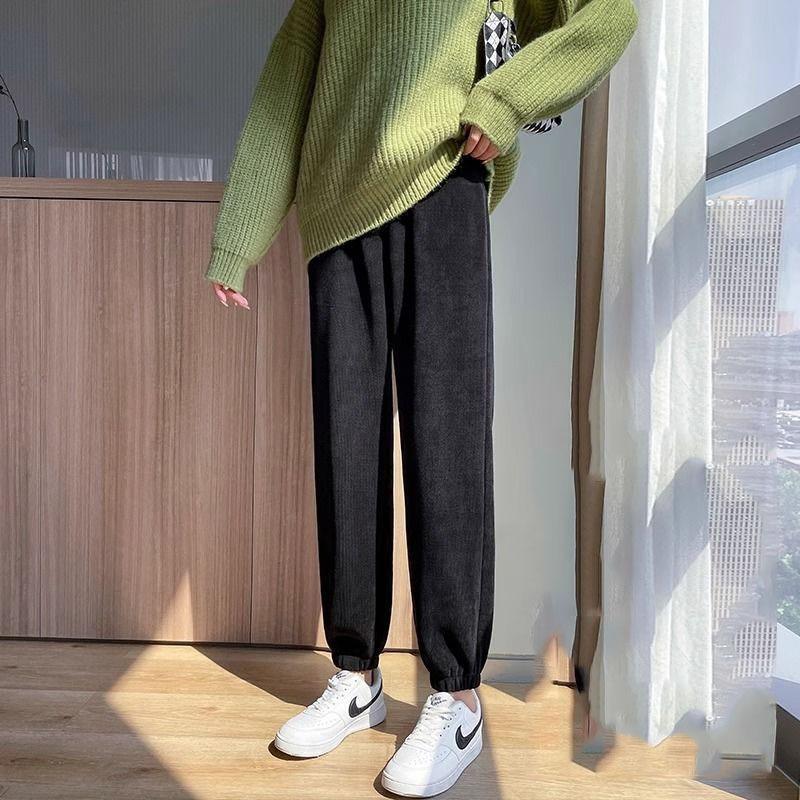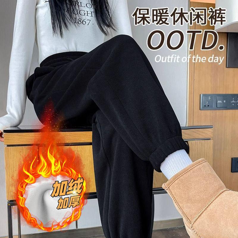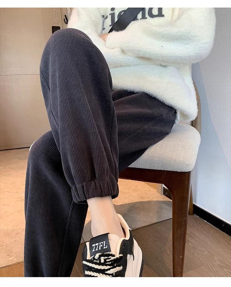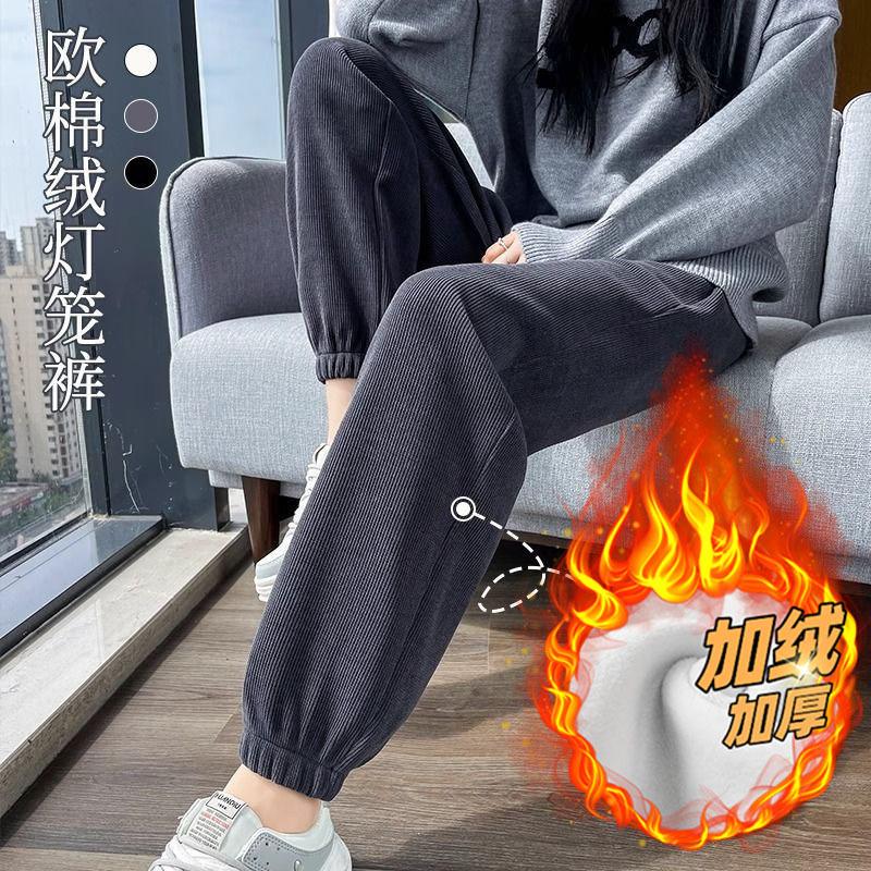 Pantalones deportivos de pana para mujer, forrados con vellón grueso, otoño e invierno 2024, cintura alta, con tobillos atados, pantalones adelgazantes sueltos, pantalones casuales