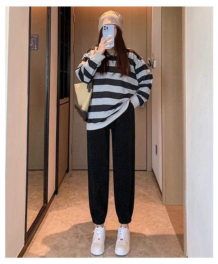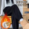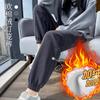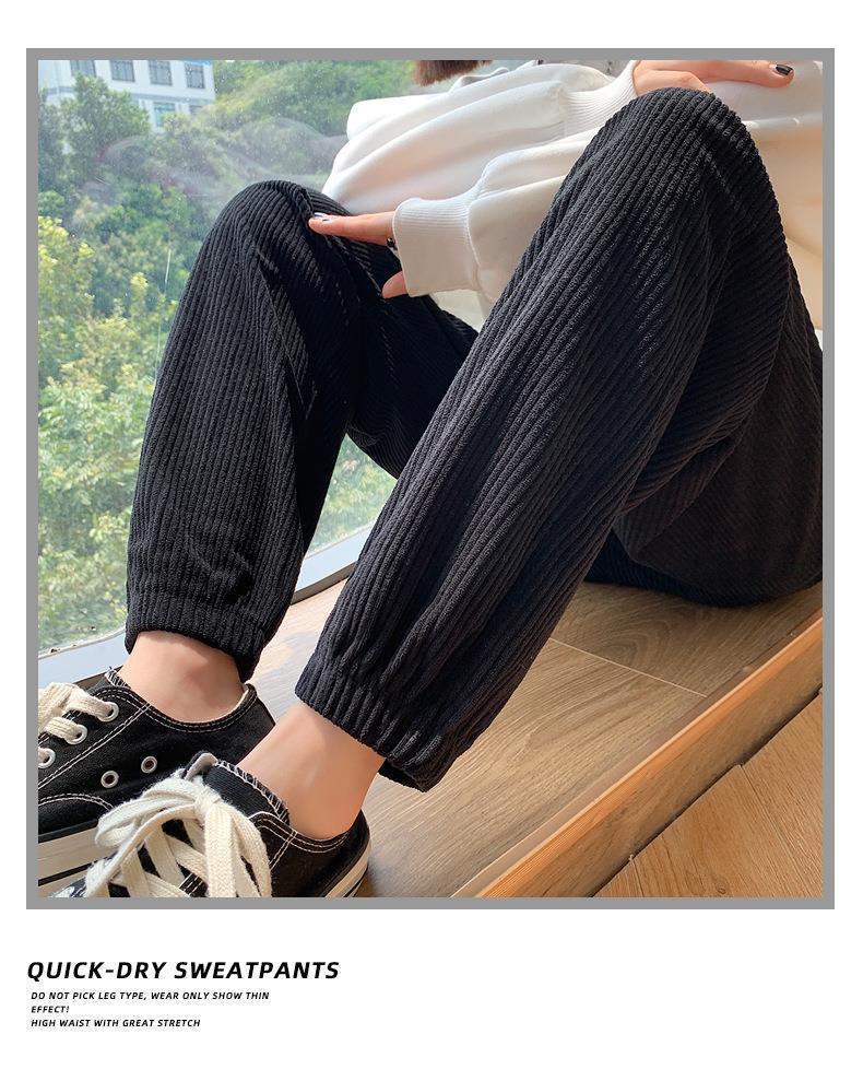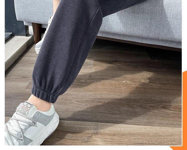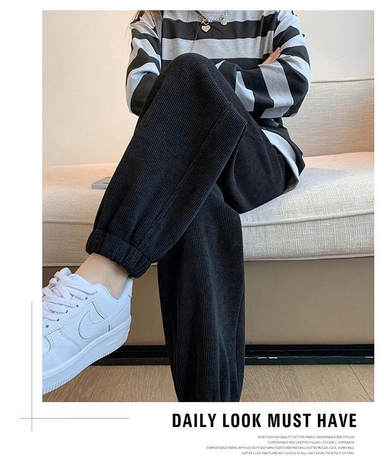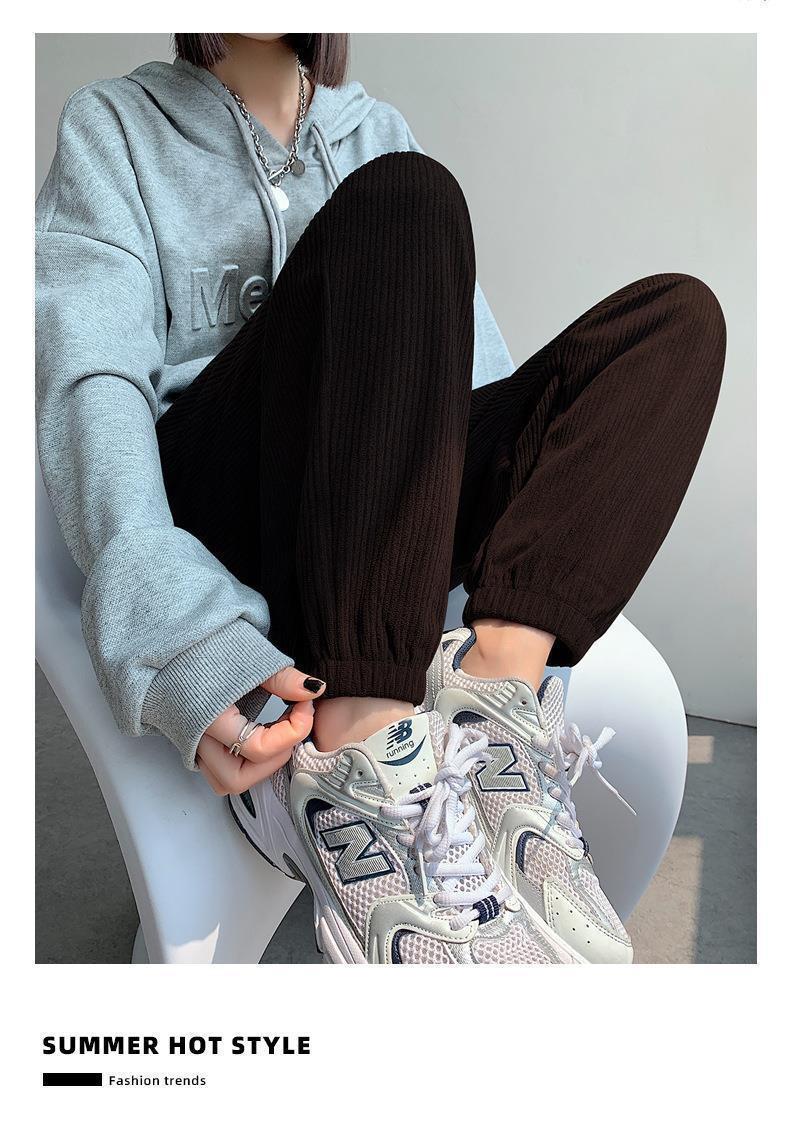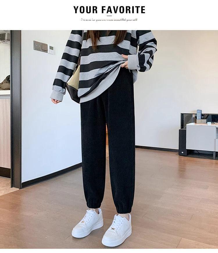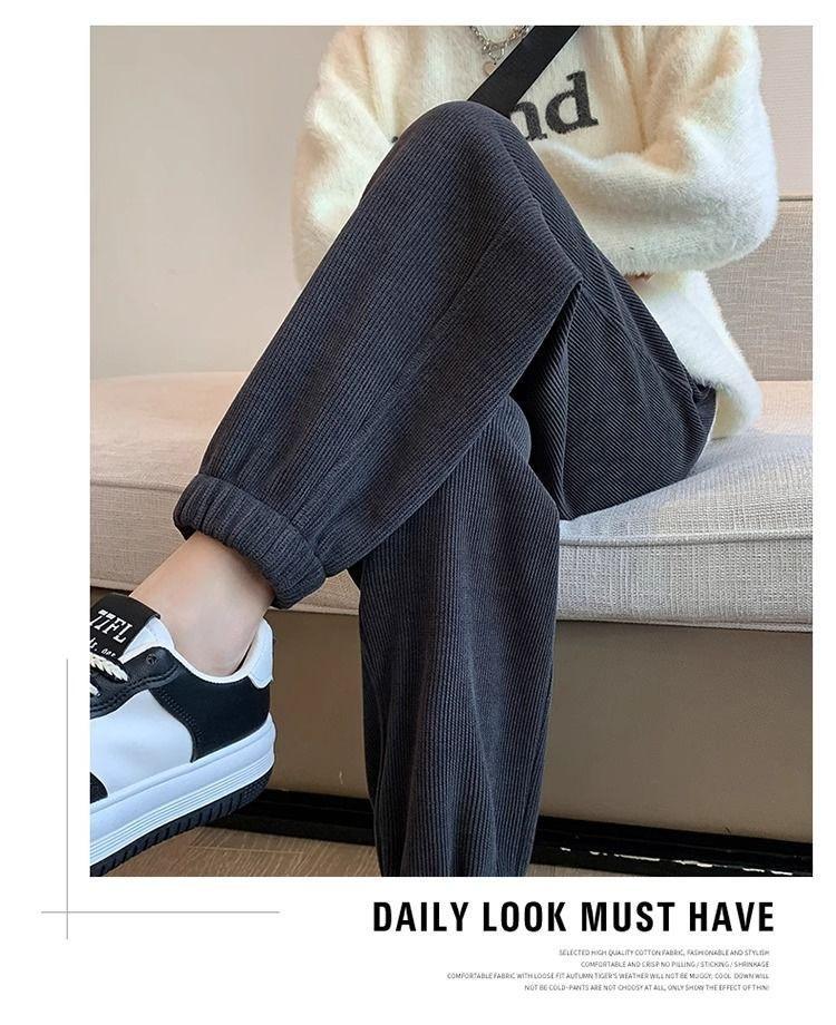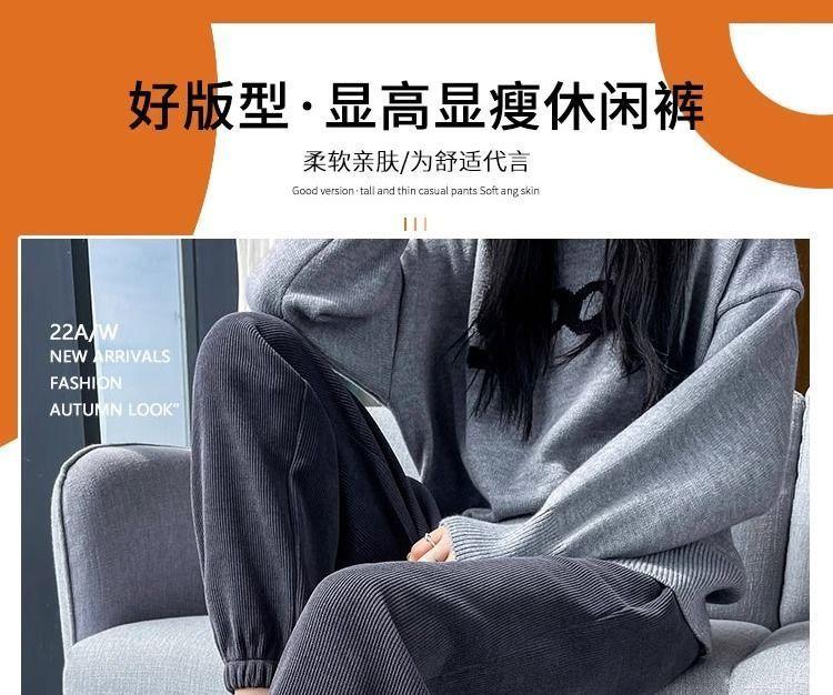 Pantalones deportivos de pana para mujer, forrados con vellón grueso, otoño e invierno 2024, cintura alta, con tobillos atados, pantalones adelgazantes sueltos, pantalones casuales