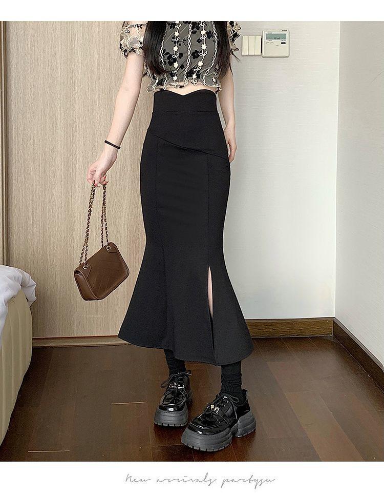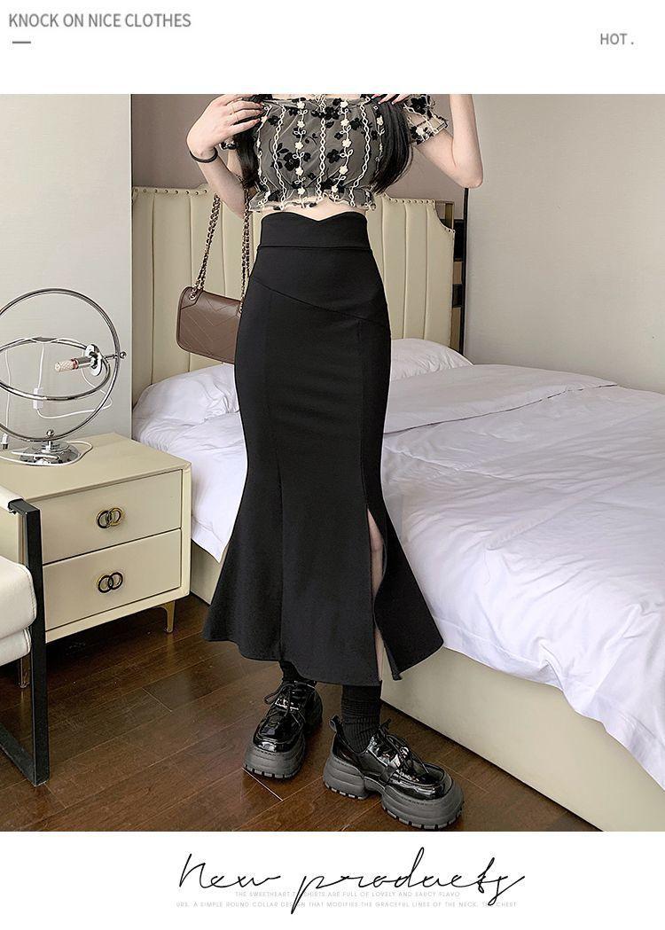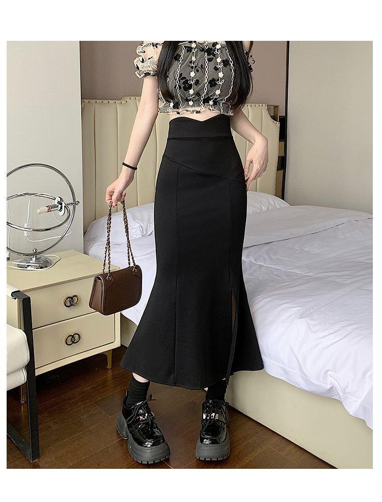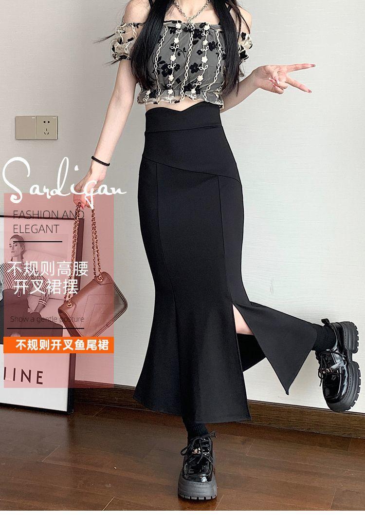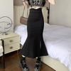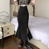 Falda de cola de pez de cintura alta falda mujer primavera verano 2024 otoño nuevo slim larga corta negra abertura falda de cadera
