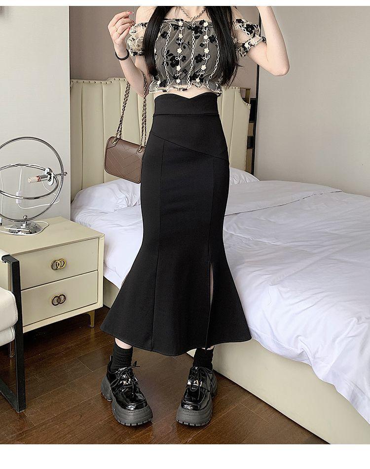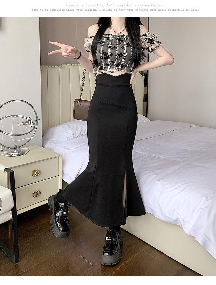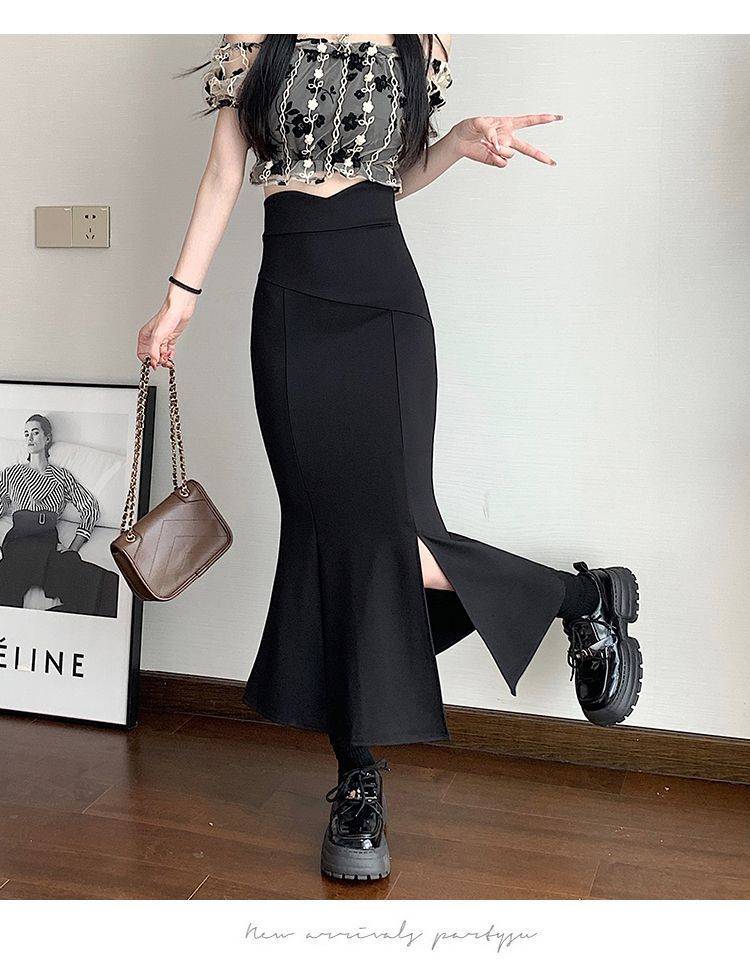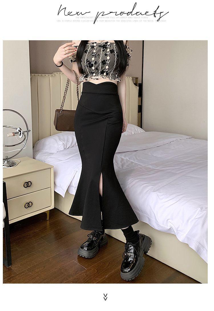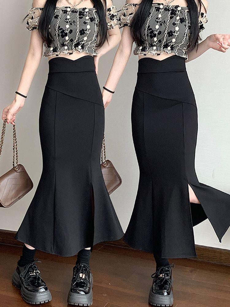 Falda de cola de pez de cintura alta falda mujer primavera verano 2024 otoño nuevo slim larga corta negra abertura falda de cadera