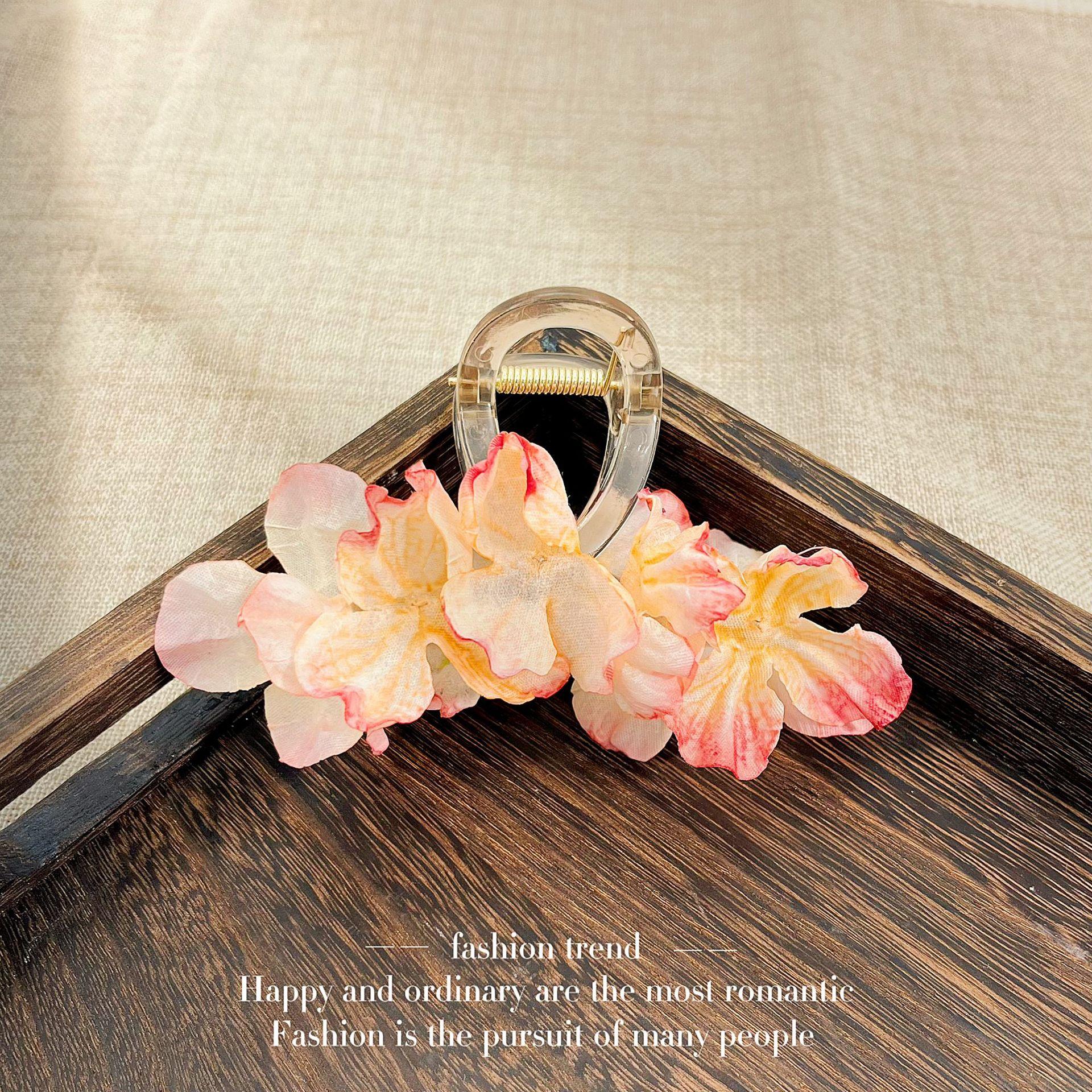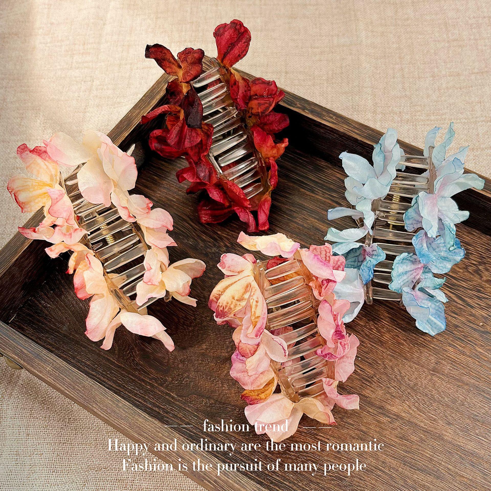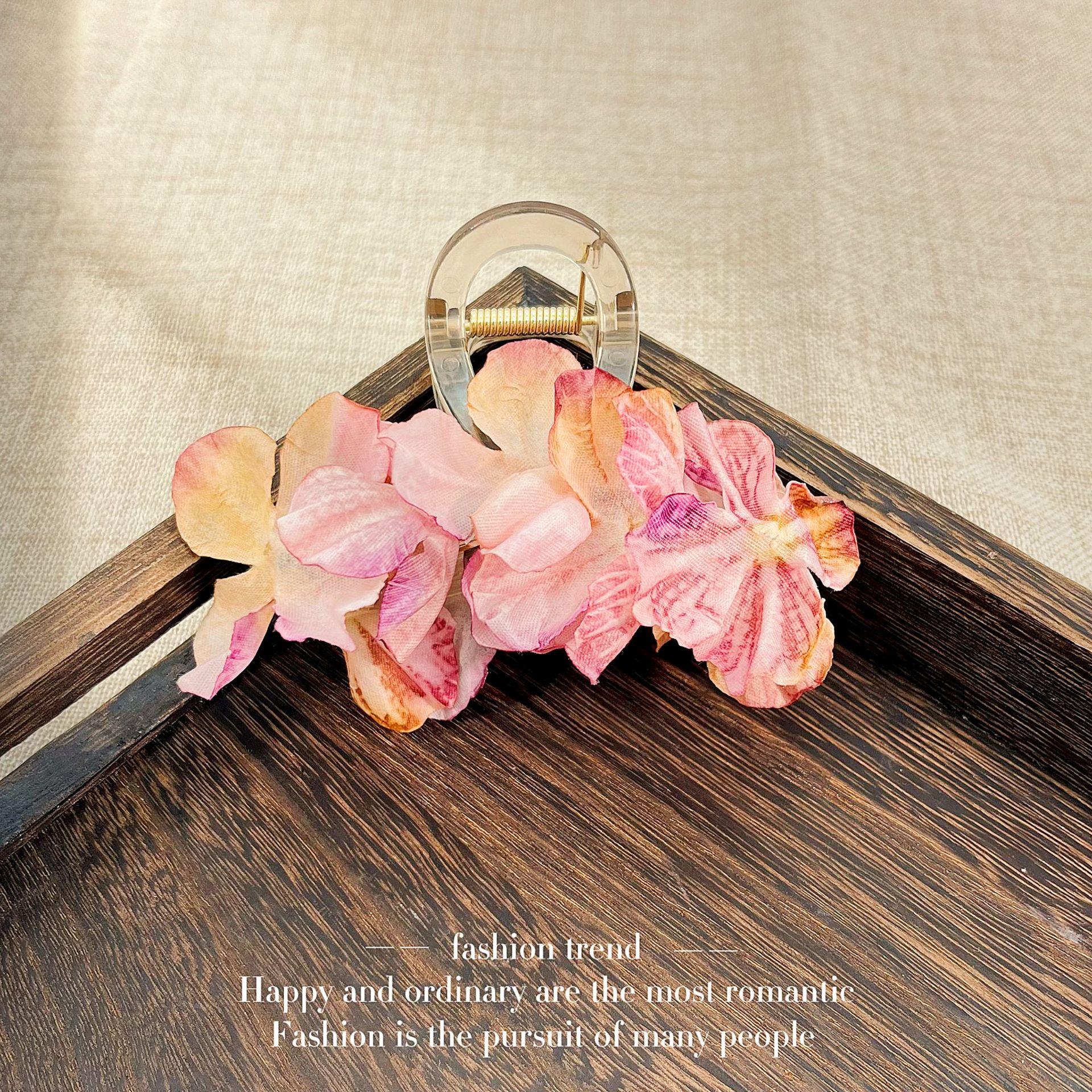 Clip de flor de pétalo tridimensional estilo bosque primaveral para mujer, superhada de alta gama para la parte posterior de la cabeza, horquilla para el cabello con rosa, tocado