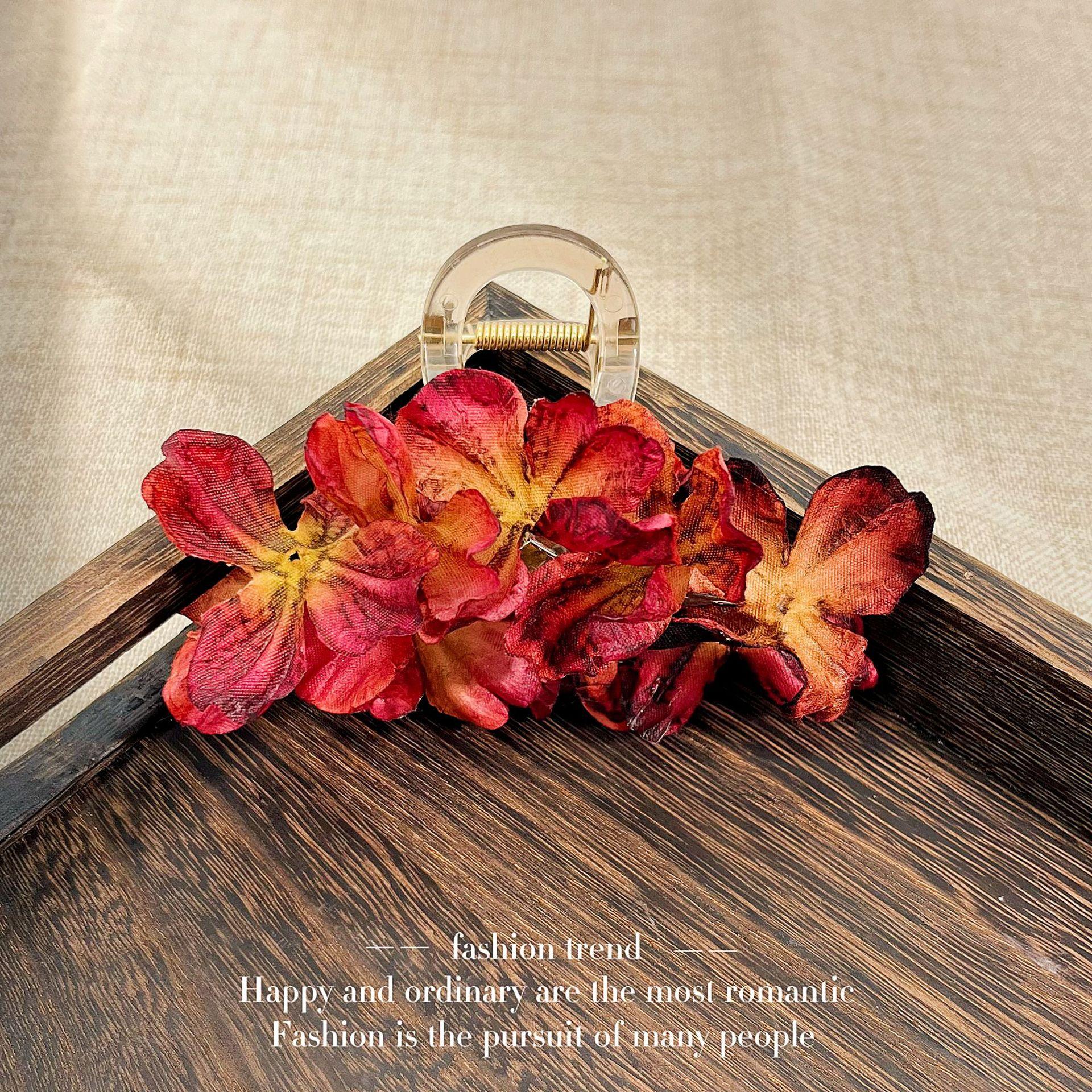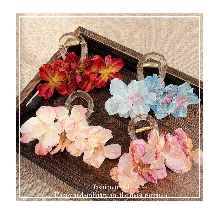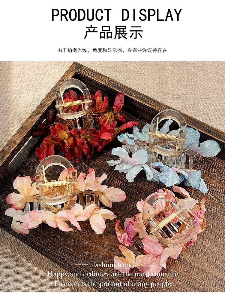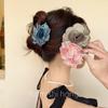 Delicado pasador de malla con flor de verano china para mujer con sensación de alta gama en la parte posterior de la cabeza, super hada rosa flor pinza de tiburón tocado