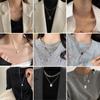 Collar largo con colgante de cadena y perlas de imitación de circonita con doble flor hueca, versión coreana de moda, venta al por mayor