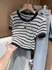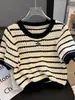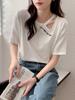 Camiseta de manga corta de seda helada de punto para mujer, estilo 2023, diseño superior, estilo nicho, holgada, de media manga
