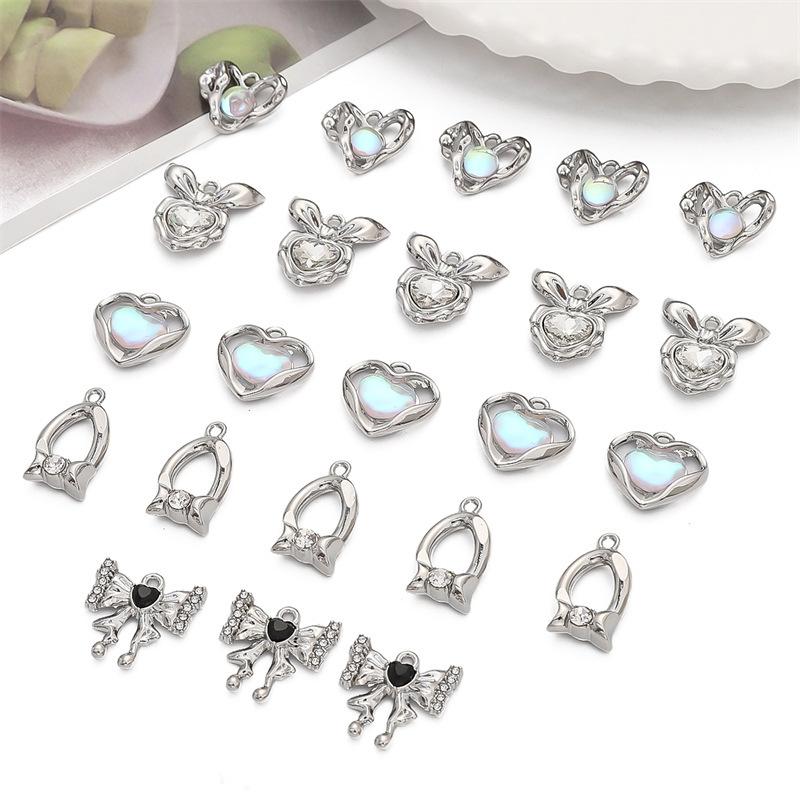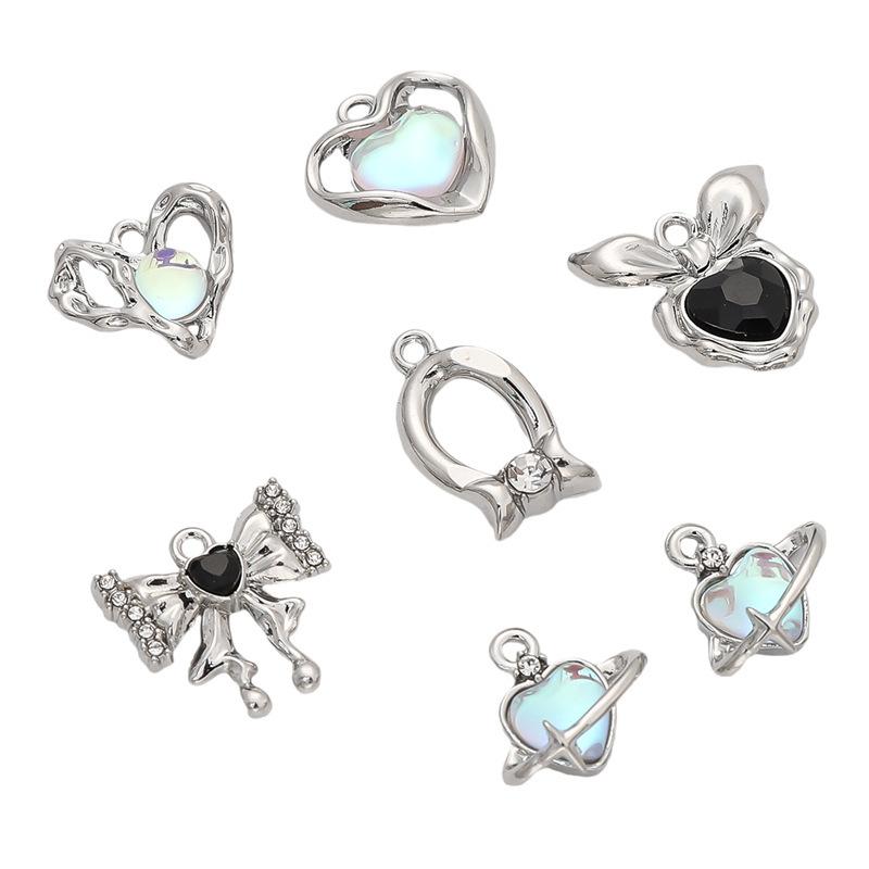 Exquisito colgante de lazo de diamante de aleación hecho a mano, accesorios de collar DIY, pulsera de moda, colgante pequeño al por mayor