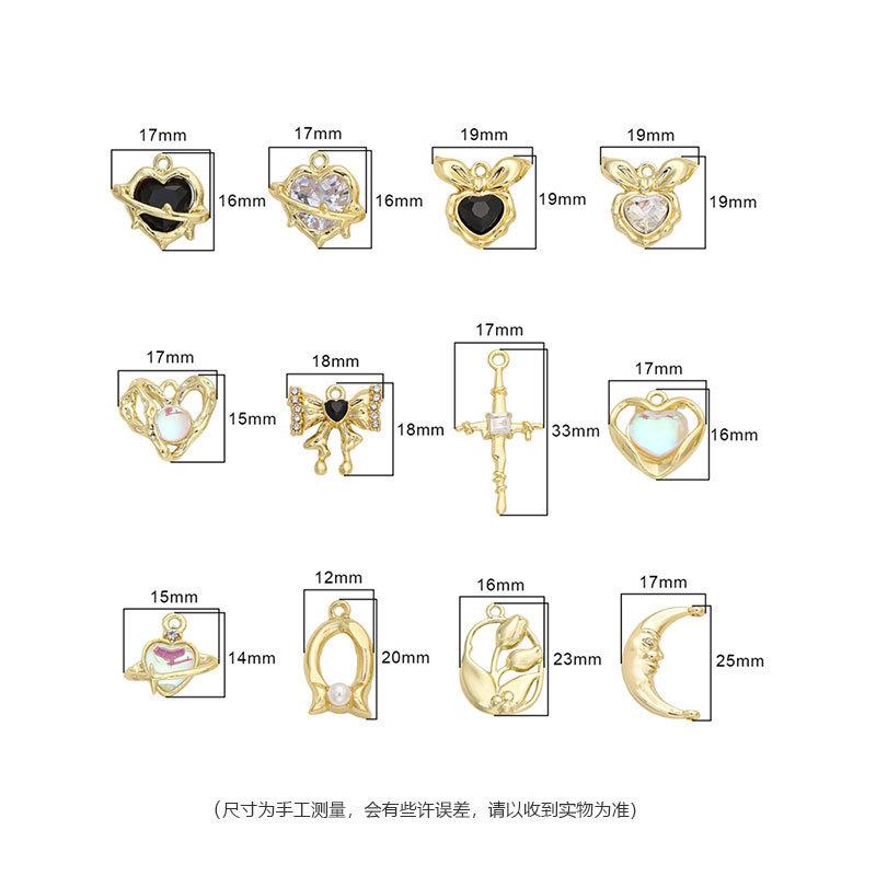 Love pendant 17x 16mm aperture about 1.5mm golden meter white diamond