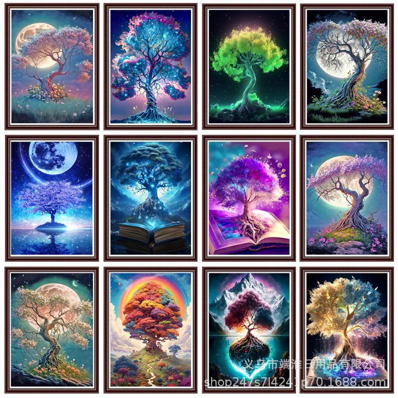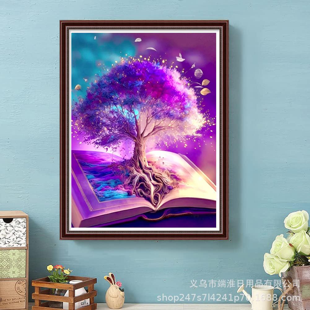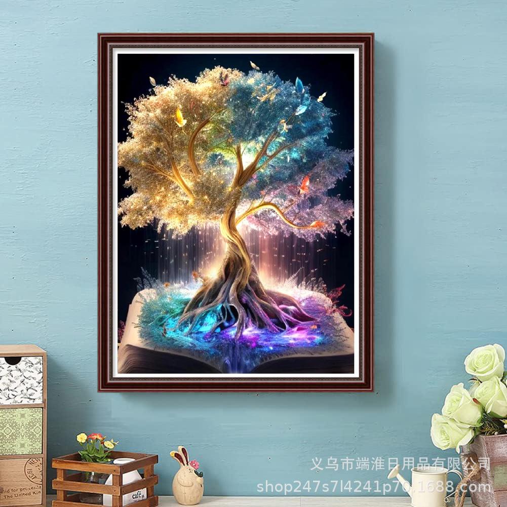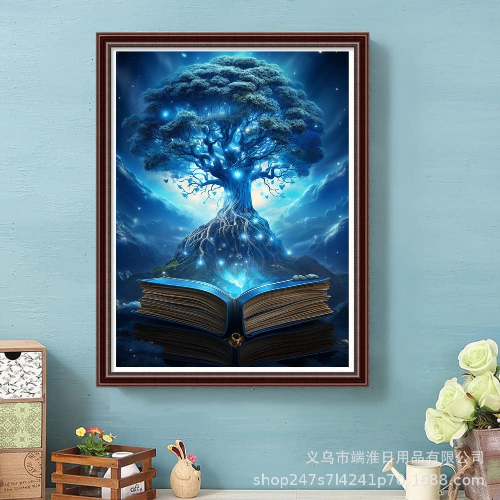 Amazon Nuevo Mosaico 5diy Pintura de Diamantes Libro Árbol de la Vida Diamante Redondo Completo Decoración Sala de Estar Pintura Colgante Directo de Fábrica