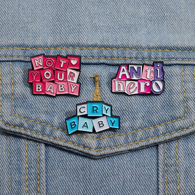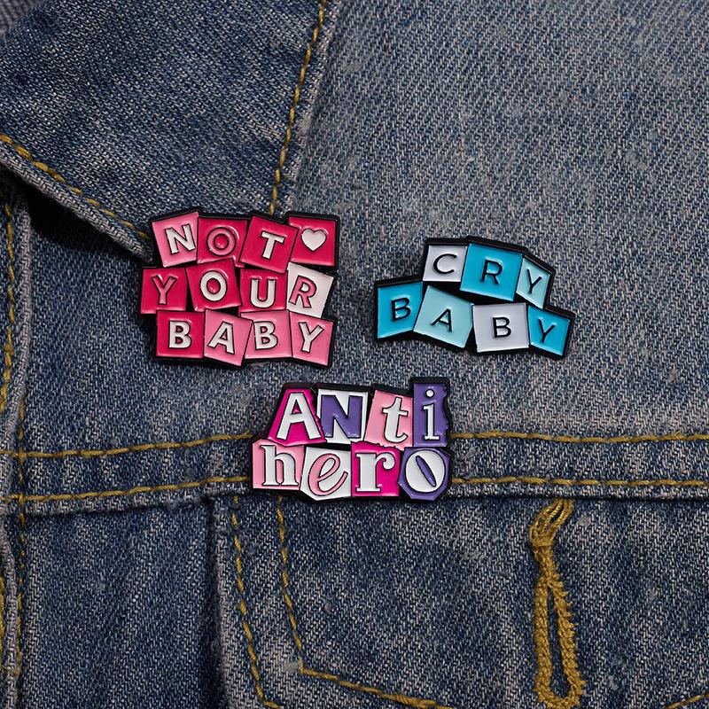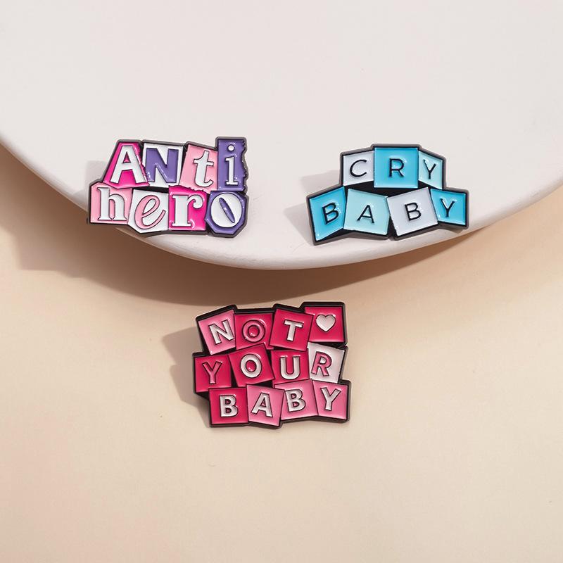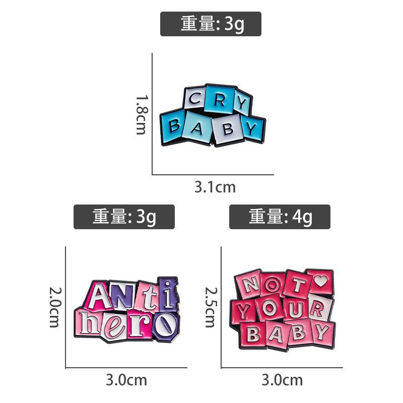 Insignias de Aleación de Letras Inglesas Creativas Europeas y Americanas Transfronterizas Broche Divertido Rosa Bebé Llorón Accesorios de Ropa
