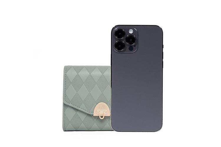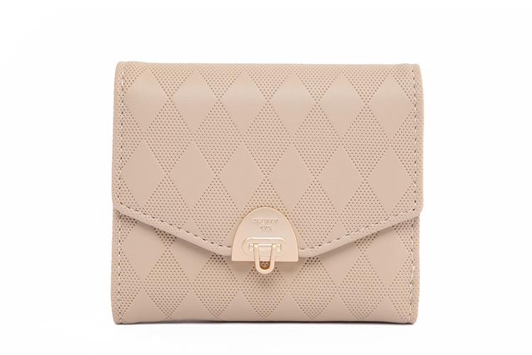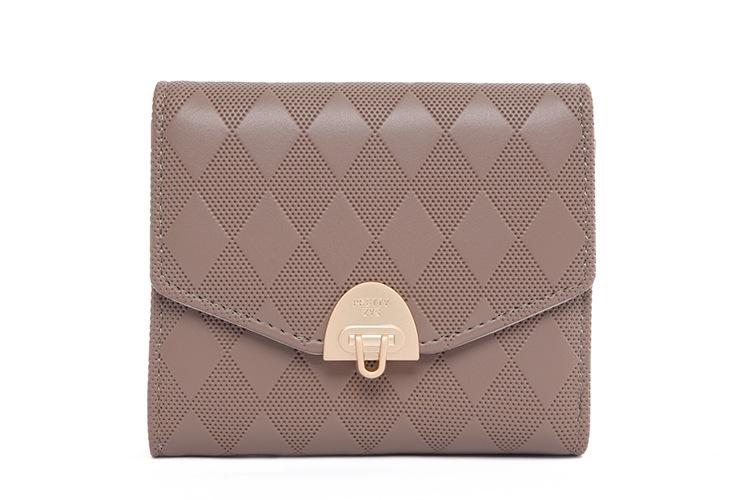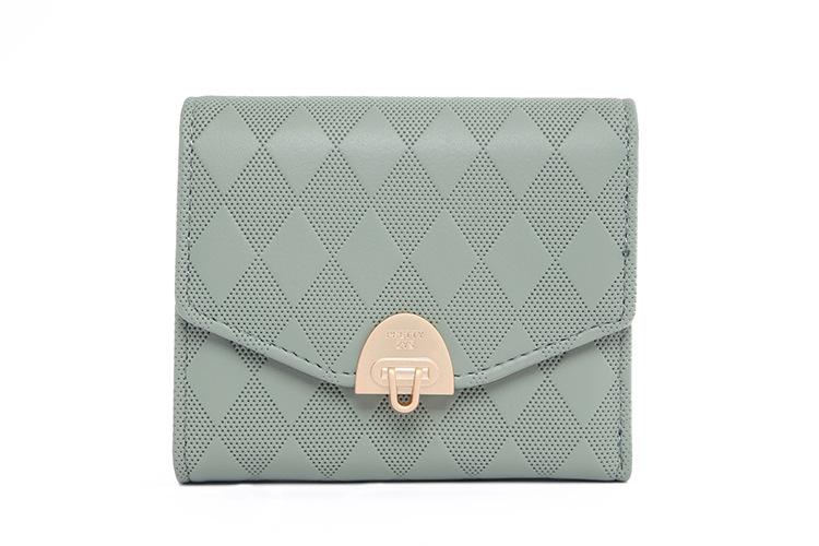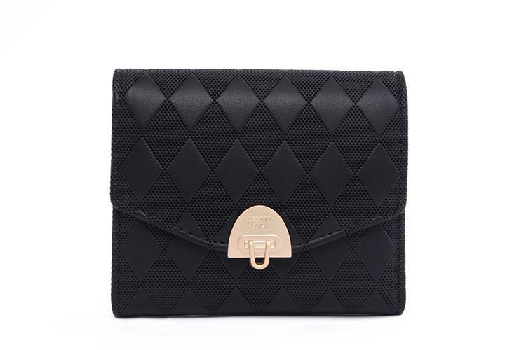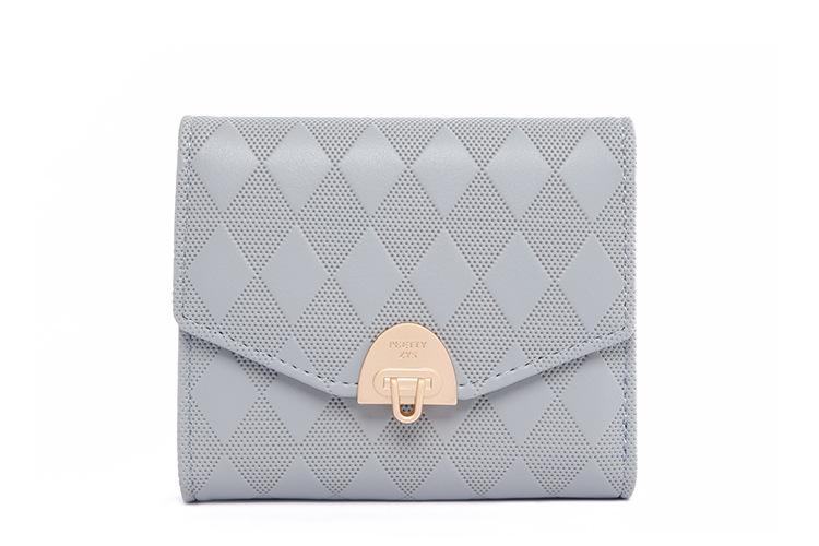 | Hopper nueva billetera para damas fabricante de origen colgante de hoja hebilla de herraje bolsa plegable triple PU larga a cuadros bolso de mano |