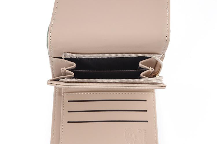 | Monedero corto con cremallera para mujer, estilo japonés, pequeño, fresco, de cuero sintético, con colgante de hoja y tres pliegues, para comercio exterior transfronterizo |