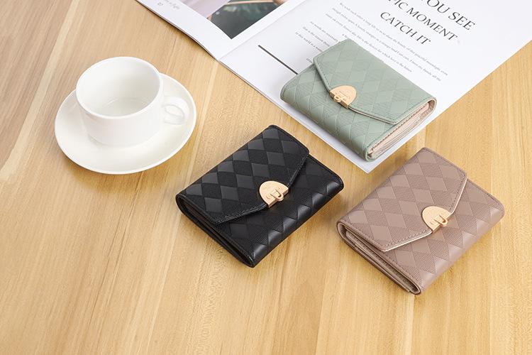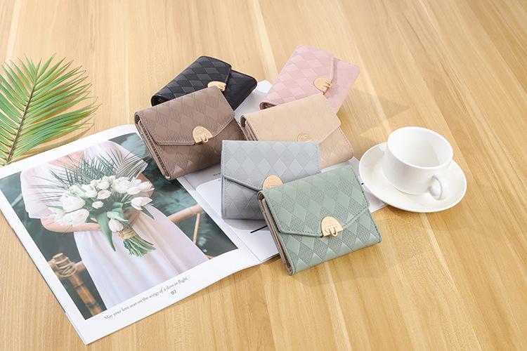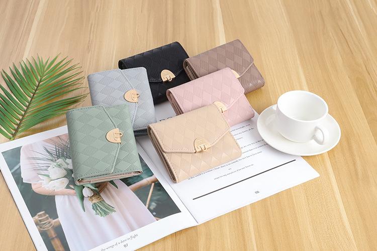| Cartera para comercio exterior transfronterizo de Amazon para mujer, corta, estilo japonés y coreano, fresca, de piel sintética, triple, con múltiples ranuras para tarjetas, cartera de nicho para mujer |