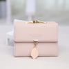 | Cartera de mujer corta japonesa y coreana, pequeña, fresca, de PU, simple, de color sólido, con personalidad, con colgante de hoja, bolso de mano de tres pliegues para mujer |